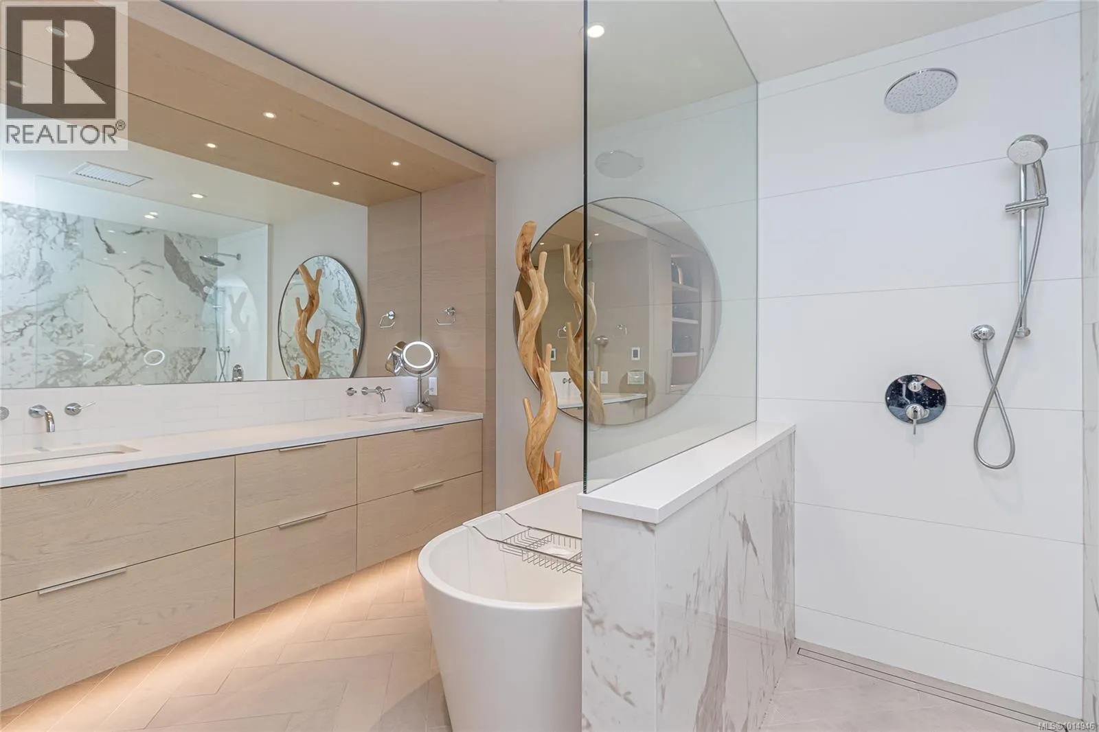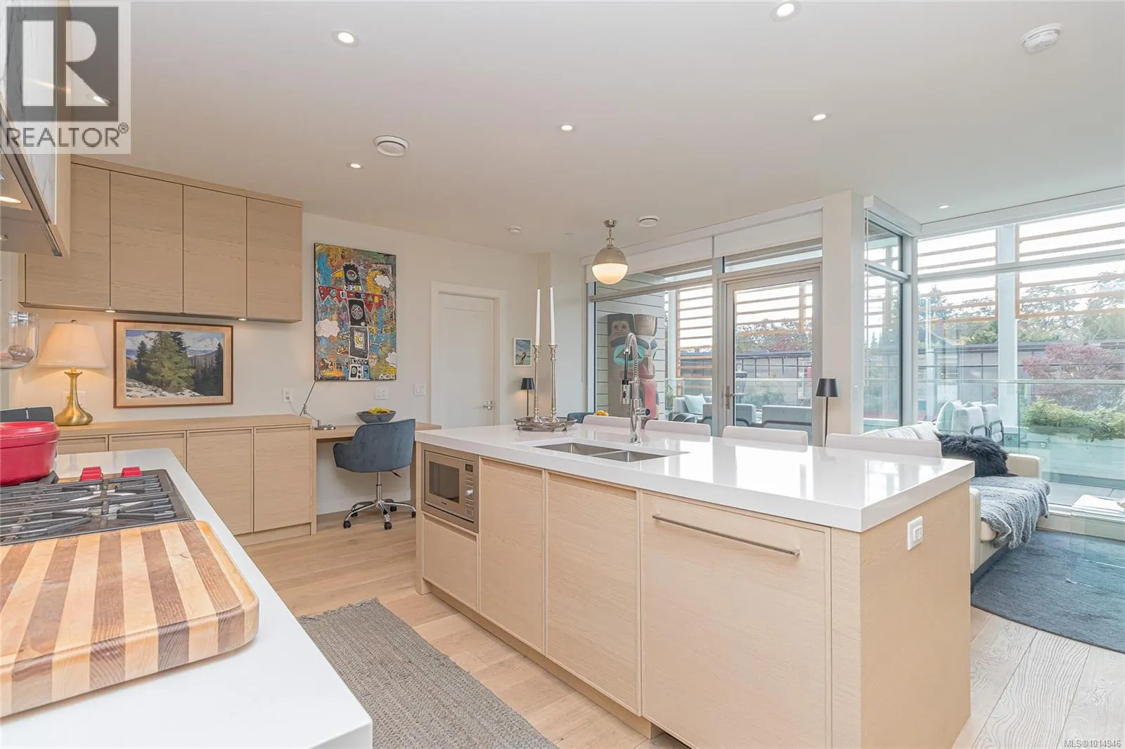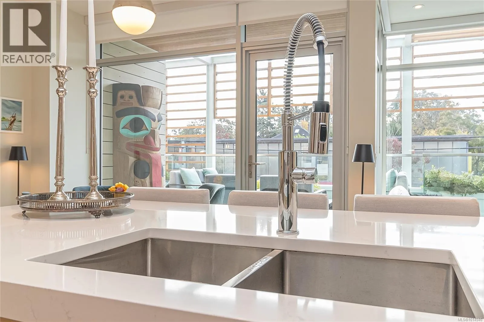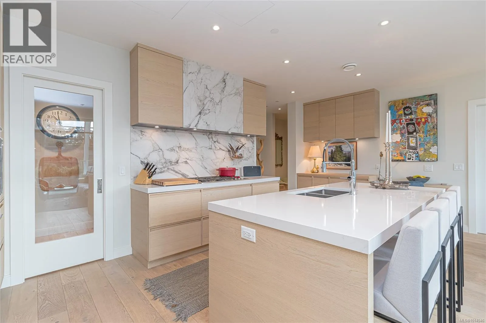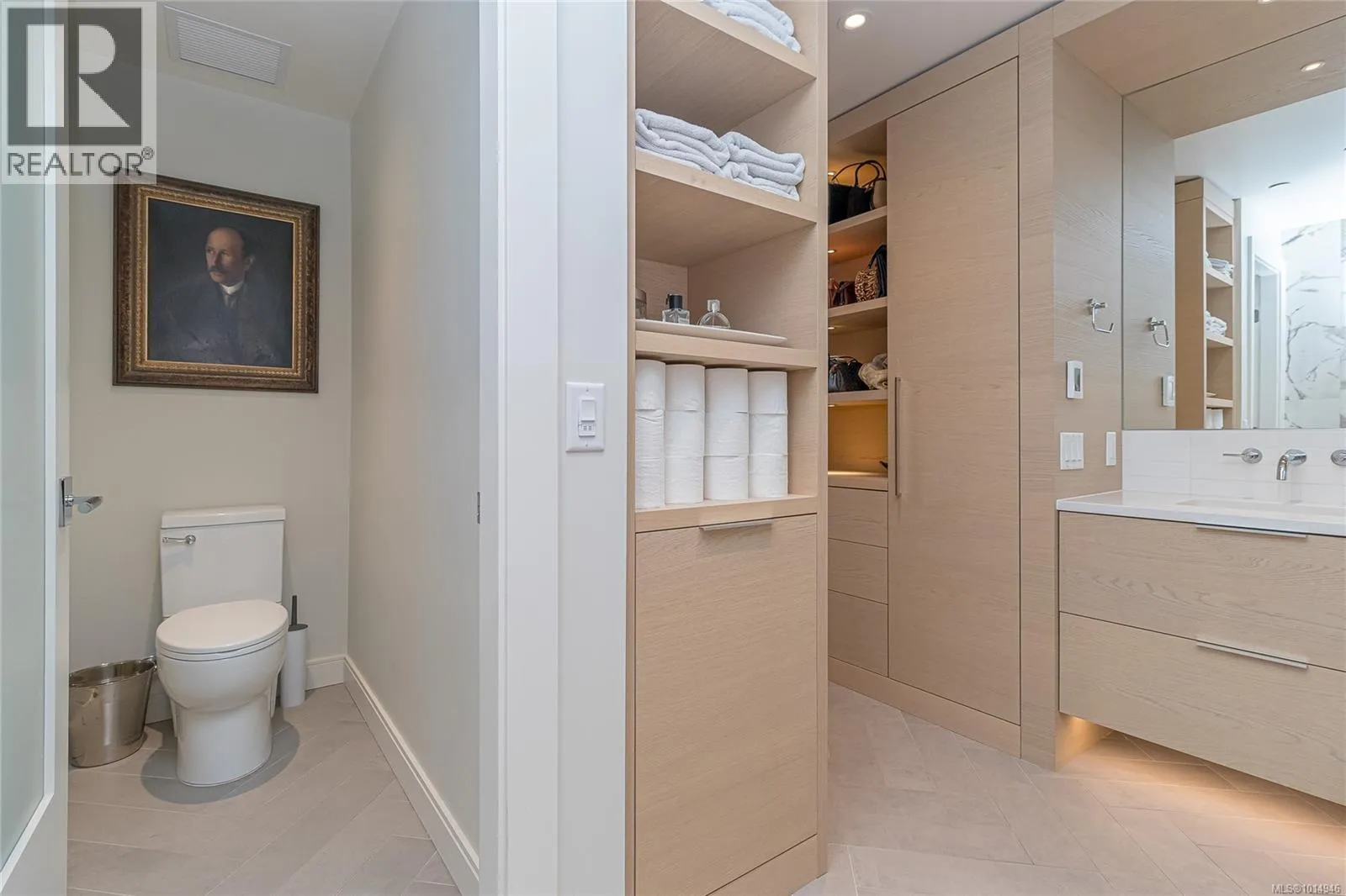 Welcome to the Redfern on Oak Bay Ave, a Jawl Residential development. This marquis residence offers such features as a full 2nd floor wrap around patio, SW orientation, pet friendly & 2 underground secured parking spots. From the moment you enter this bright and spacious 2 bedroom home, you'll immediately fall in love with its elegant finishings. The large kitchen offers a full quartz island, Wolf cooktop, Fisher & Paykel appliances including double wall oven and imported Italian millwork cabinets. The primary ensuite is to die for with built-in cabinetry, generous walk-in shower, soaker tub and W.C. The second bedroom enjoys a separate ensuite as well and there's a lovely powder room for guests. It doesn't feel like condo living when you have a full butler's pantry, laundry room and almost 400 sf of S/W patio space. A large 9 x12 storage room is exclusive for this home, 2 parking spaces, a common dog washing station and rooftop patio. The Redfern has it all Don't delay! (id:27476)