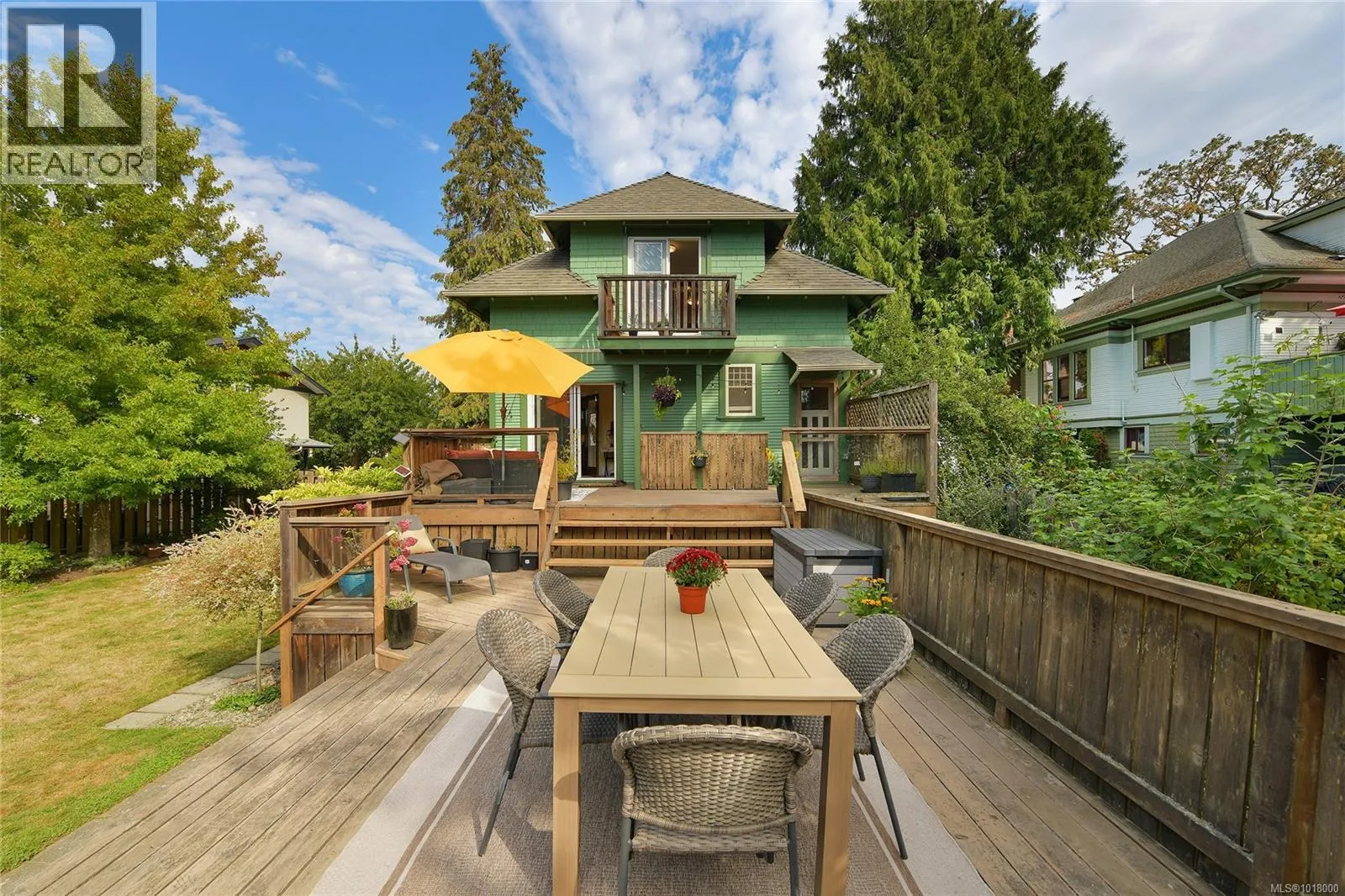 Step into timeless elegance with this classic 1912 Fairfield character home. Ideally situated in the middle of one of the neighborhoodâs most family-friendly and secure streets, it offers the perfect blend of heritage charm and family home. Set on an oversized 63x120 lot, the property is a gardenerâs paradise with west-facing exposure, a multi level sun-filled back deck, mature landscaping, and a spacious grassy play area for children. The inviting front porch opens to a paneled entryway and beautifully crafted principal rooms featuring rich woodwork and period details. Upstairs, youâll find three generous bedrooms, each with ample closet space and abundant natural light. The lower level, partially finished, presents exciting possibilities for an array of uses. A stunning find in a sought-after location, this home blends the charm and nostalgia of days past in a neighbourhood where kids still play in the street. (id:27476)