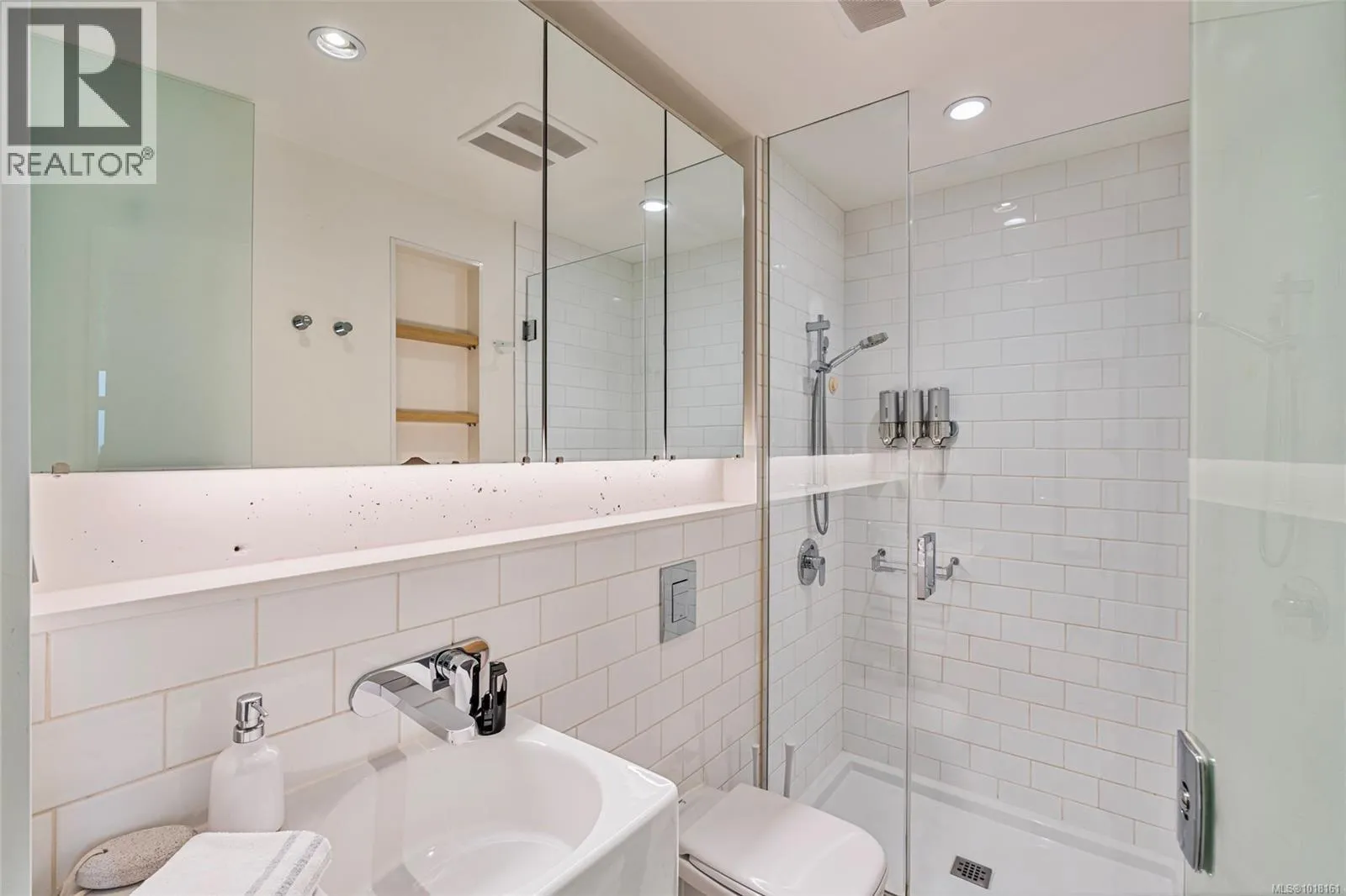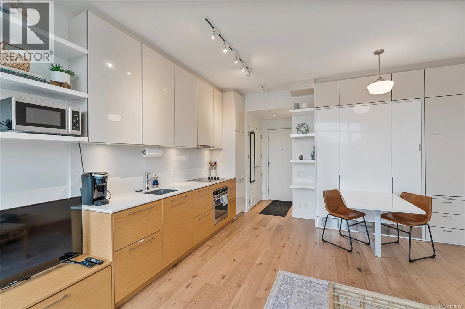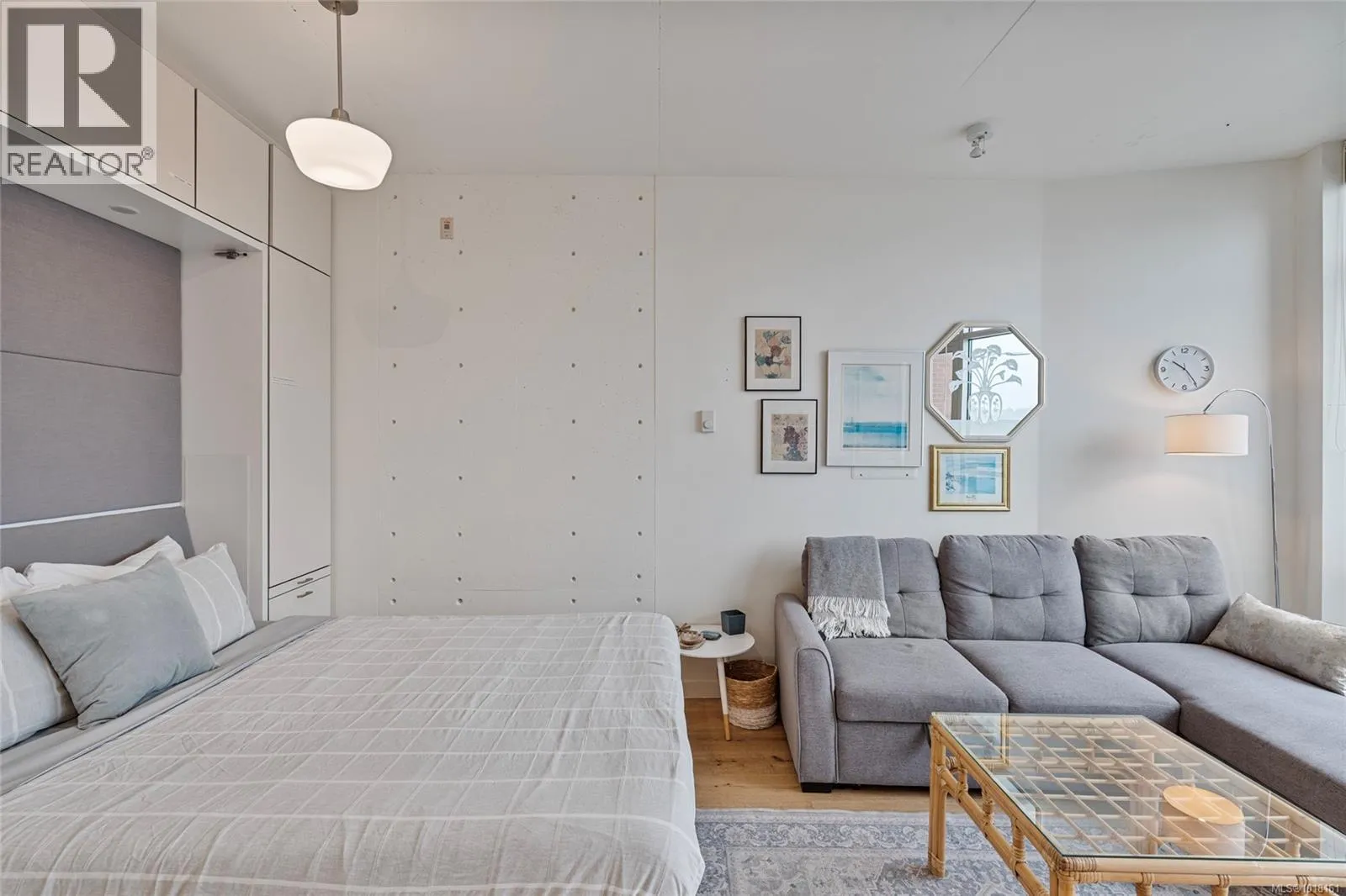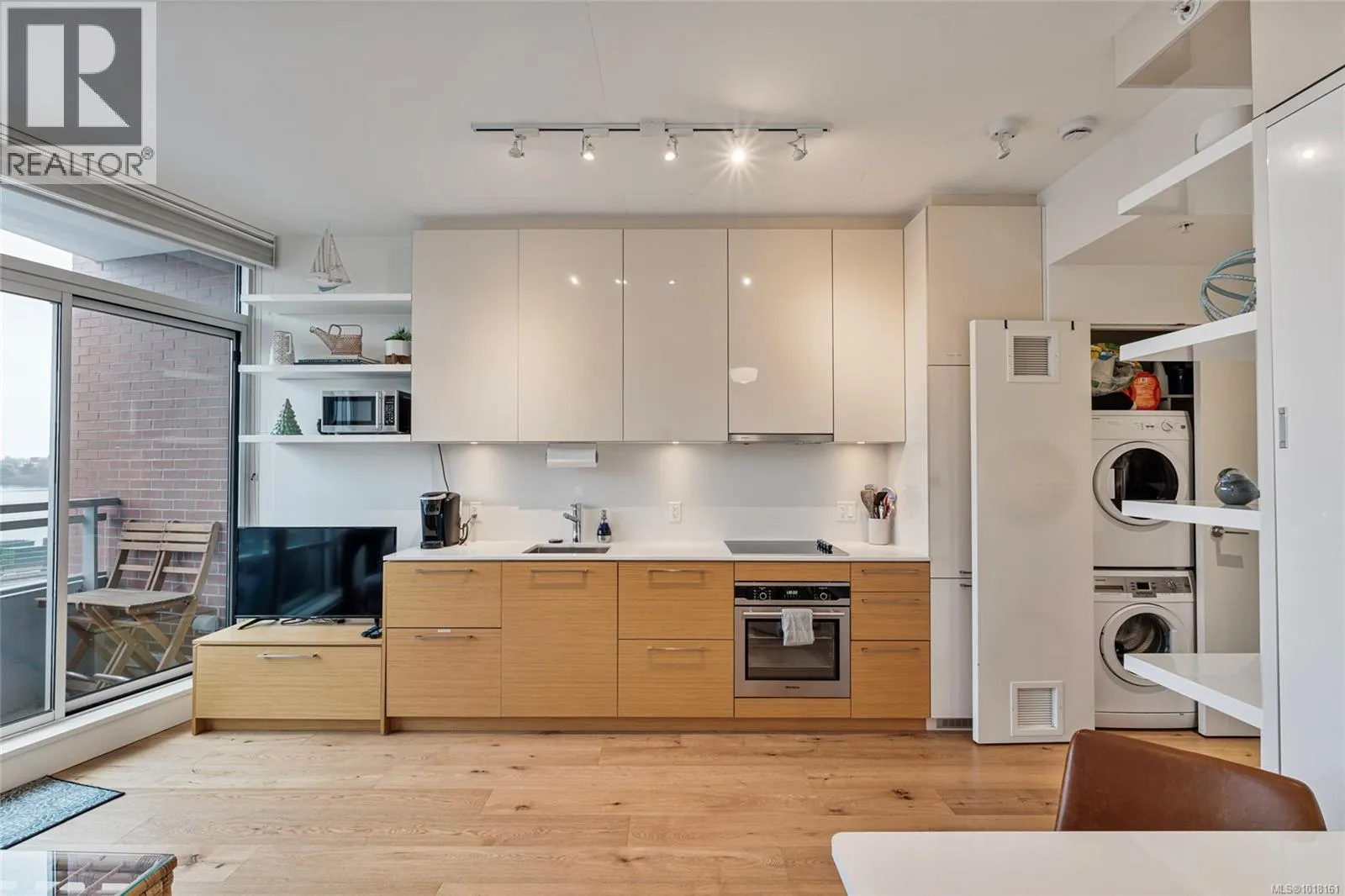 Ocean views! Located in Victoria's popular Old Town, The Janion is an architectural and historical standout. This steel and concrete development offers amazing amenities like a rooftop terrace with BBQ's and stunning harbour views, kayak storage with direct water access, a well equipped gym, and amenity room with kitchen. Step inside unit 211, and be delighted by natural light from south facing floor to ceiling windows, which offer picturesque ocean views. It is also equipped with a full kitchen including drawer dishwasher, murphy bed with dining table, 9' ceilings, in-suite laundry, blackout blinds, brand new engineered wood floors, and private balcony overlooking the water. This loft also comes with a storage locker! Perfect for simplified full time living, or investment (rental friendly and in high demand). Just steps to Victoria's best dining, coffee and retail, the urban lifestyle is waiting for you! Ran by a very professional strata. (id:27476)