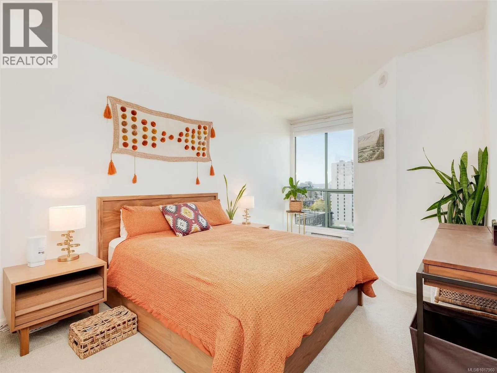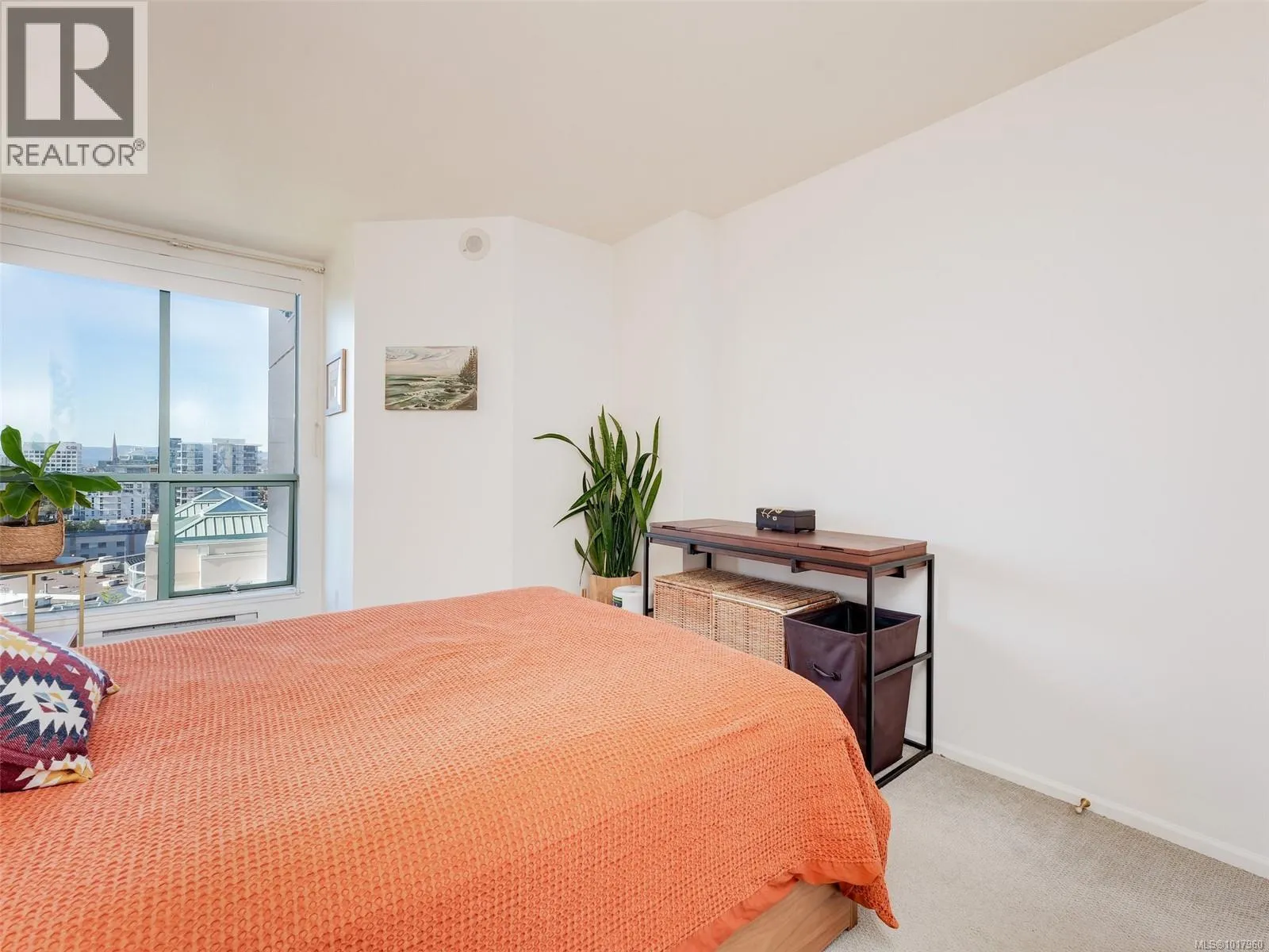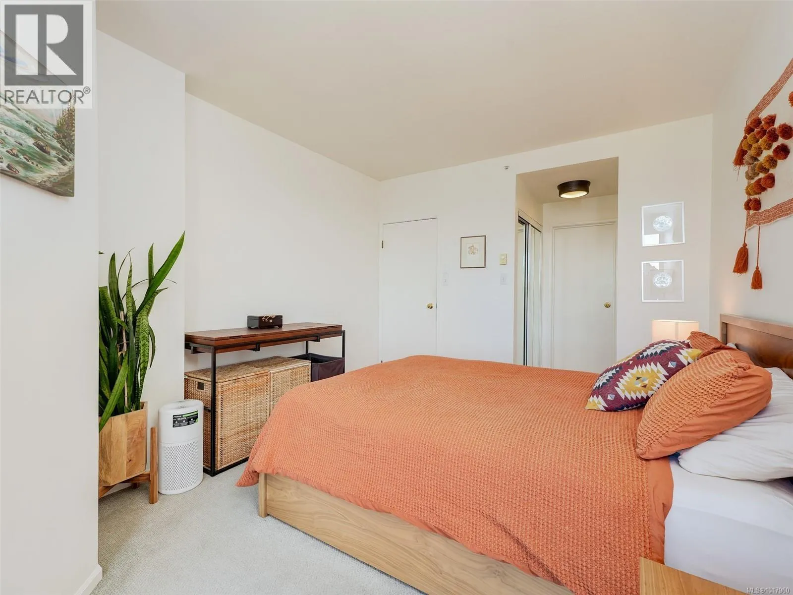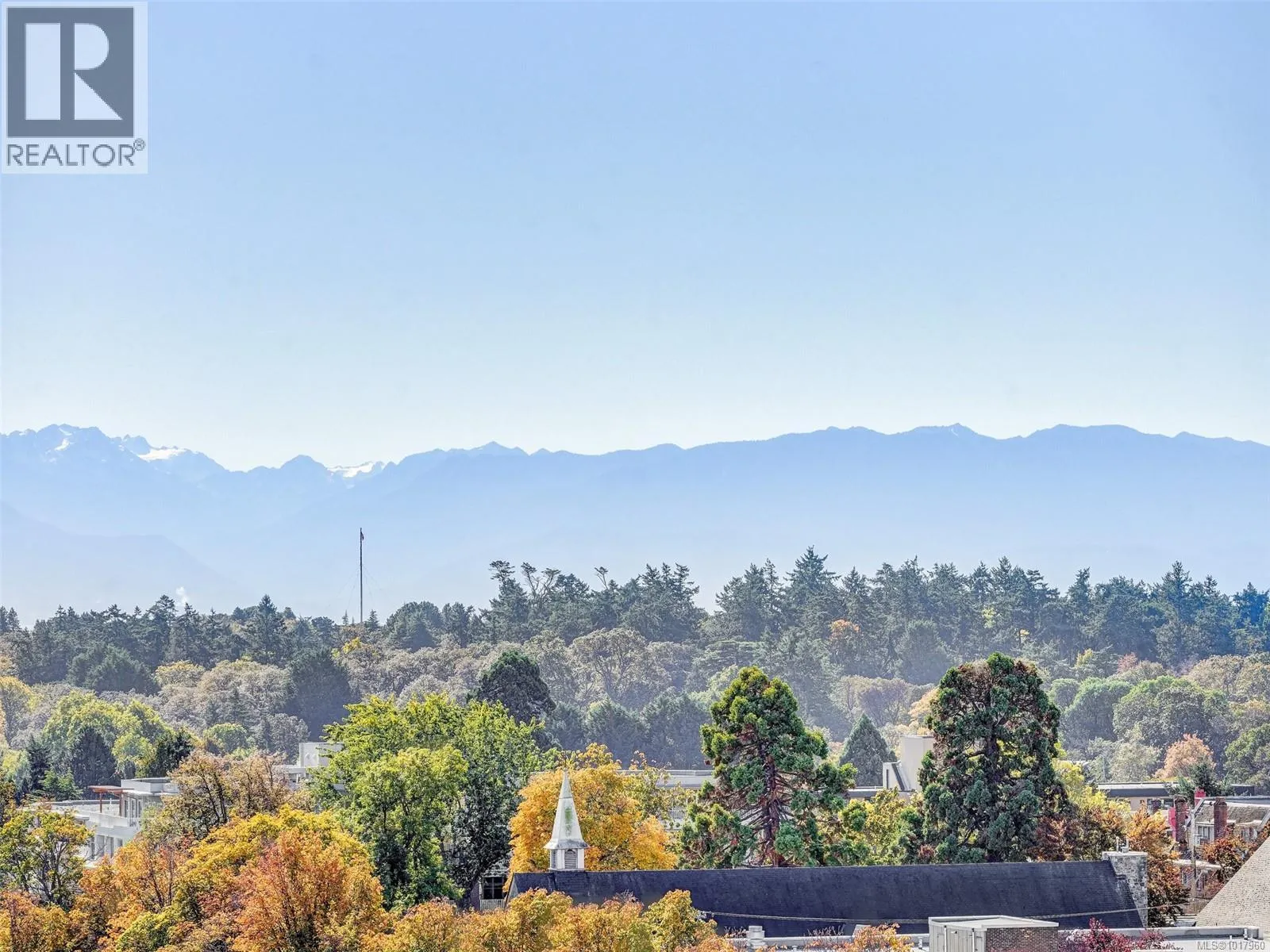 Open House Sunday, Oct. 26th, 2â4! Discover Regents Park in the sought after Harris Green district, downtown Victoria living at its best. Enjoy a prime central location with an exceptional walk score to shops, cafes, and amenities. This bright and spacious 2 bed, 2 bath southwest facing home is bathed in natural light with stunning ocean, city, and mountain views. Thoughtfully redesigned by an interior designer, high end upgrades include quality carpet, sleek kitchen appliances, tile backsplash, countertops, sink and faucet, and two beautifully renovated bathrooms featuring luxury fixtures, glass shower, tub, lighting, vanities, and modern barn doors for the in suite laundry. Enjoy secure underground parking, guest parking, a storage locker, fitness centre with sauna, workshop, and professional management. A welcoming, pet and family friendly community in an unbeatable location. Immediate possession available, move in and start living the downtown lifestyle! (id:27476)