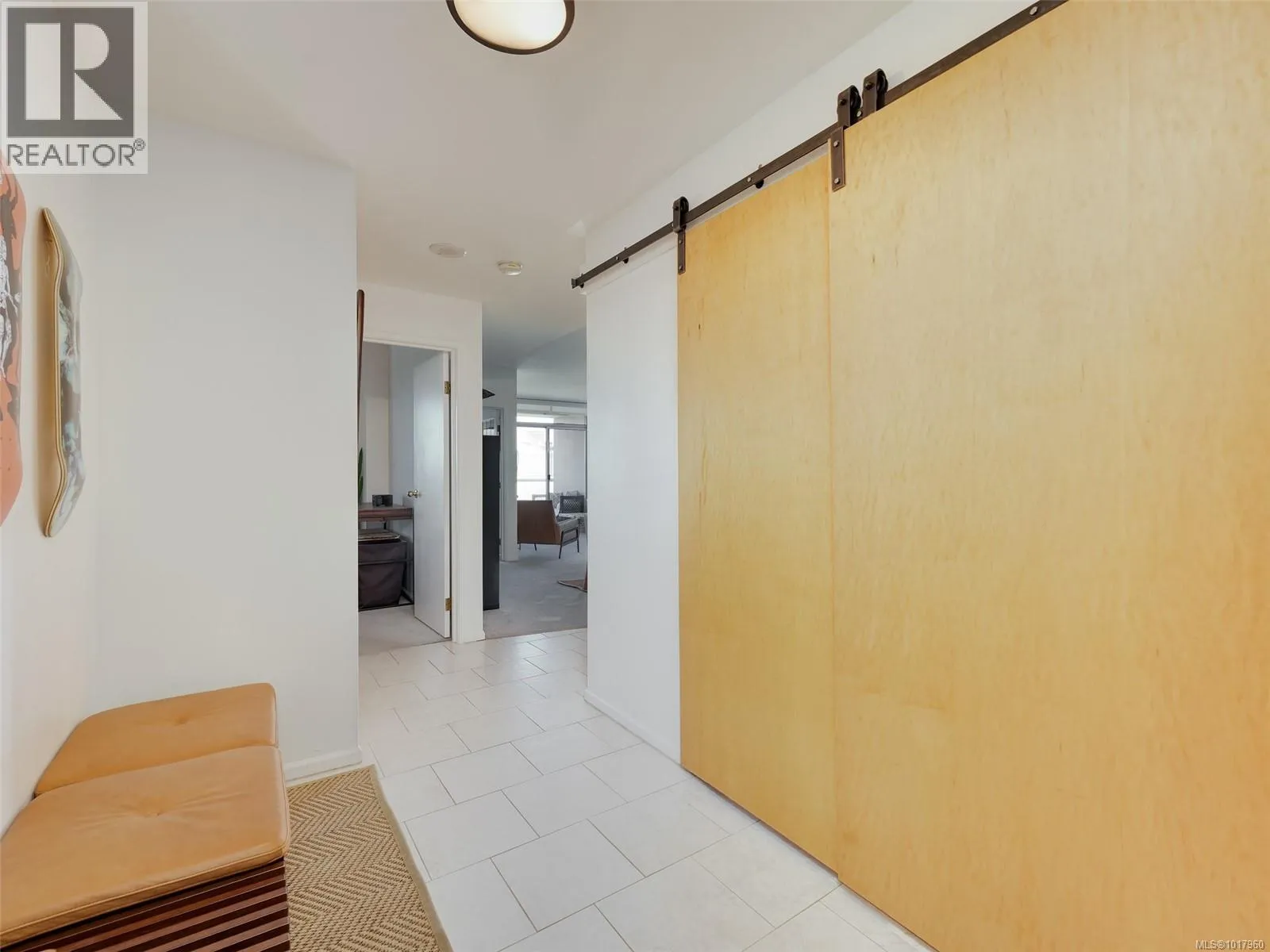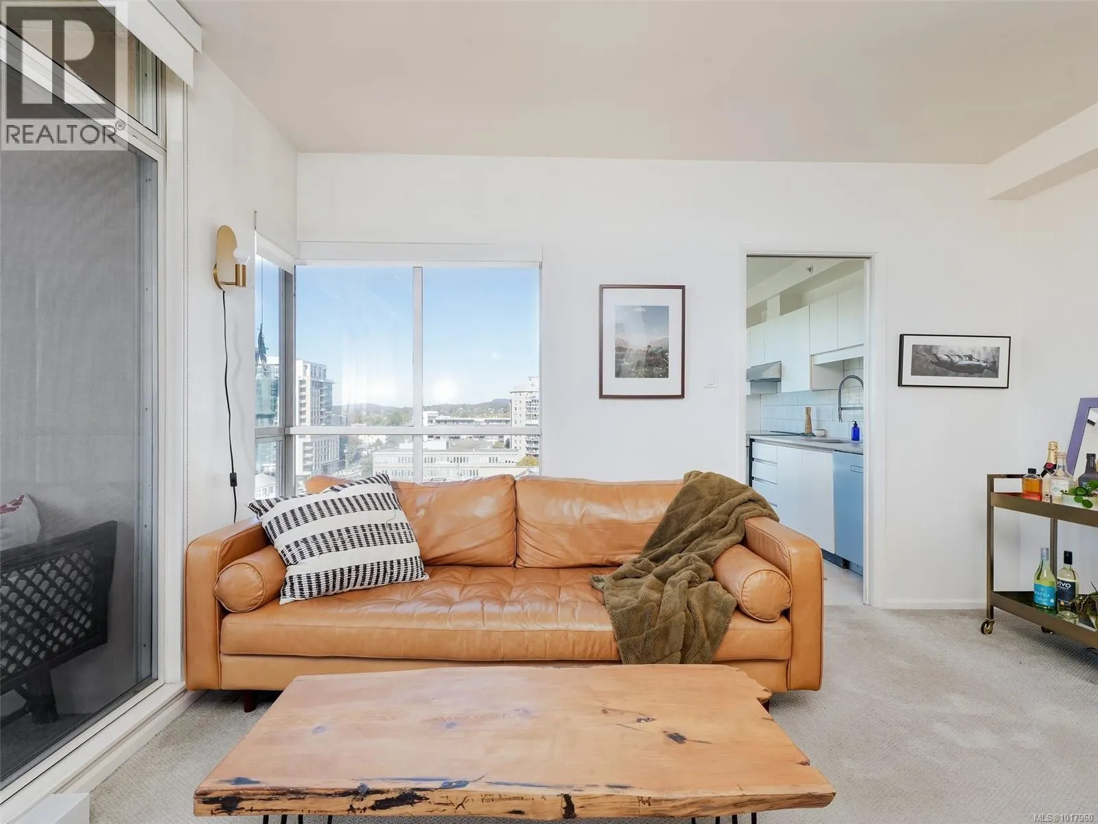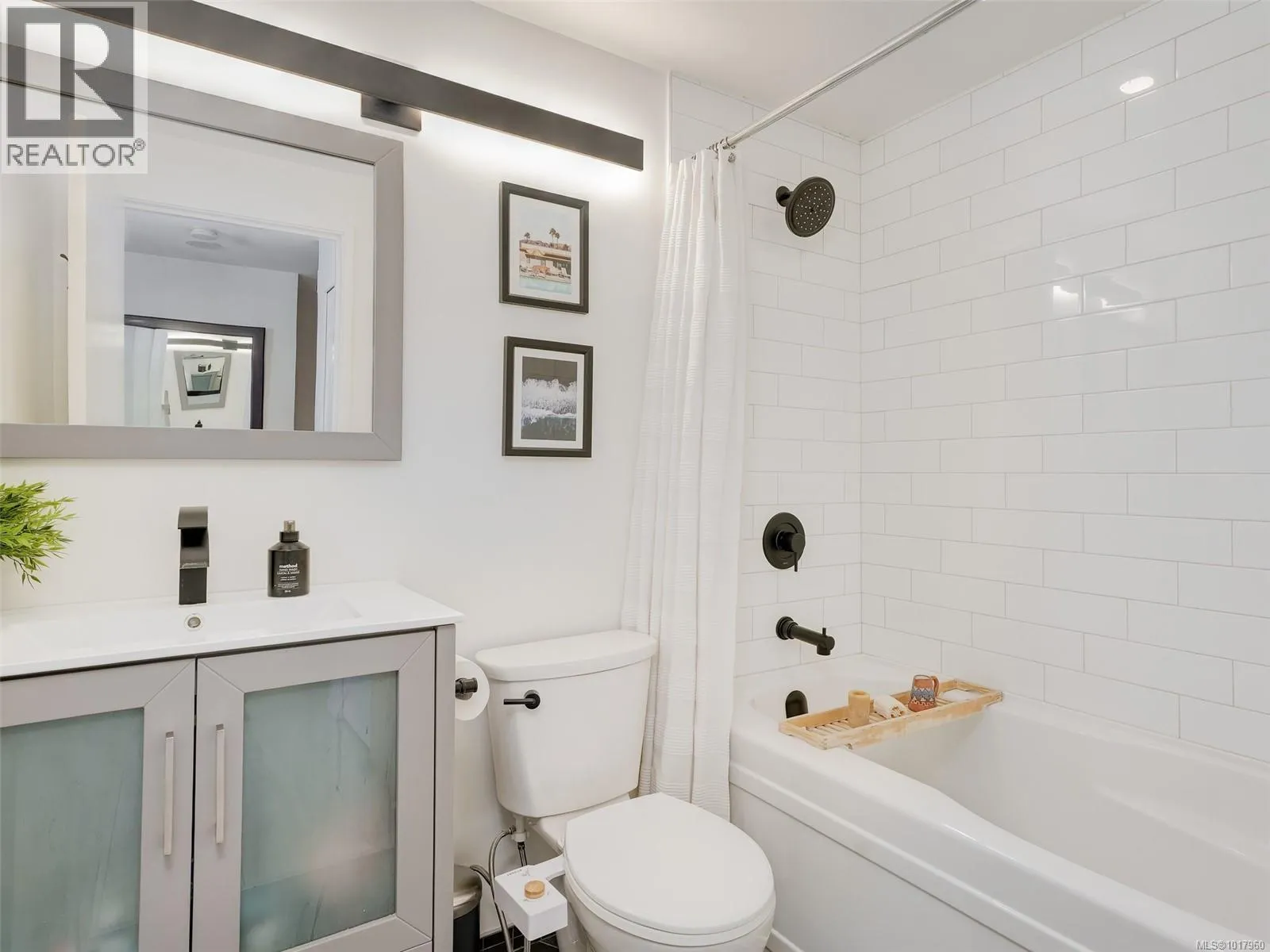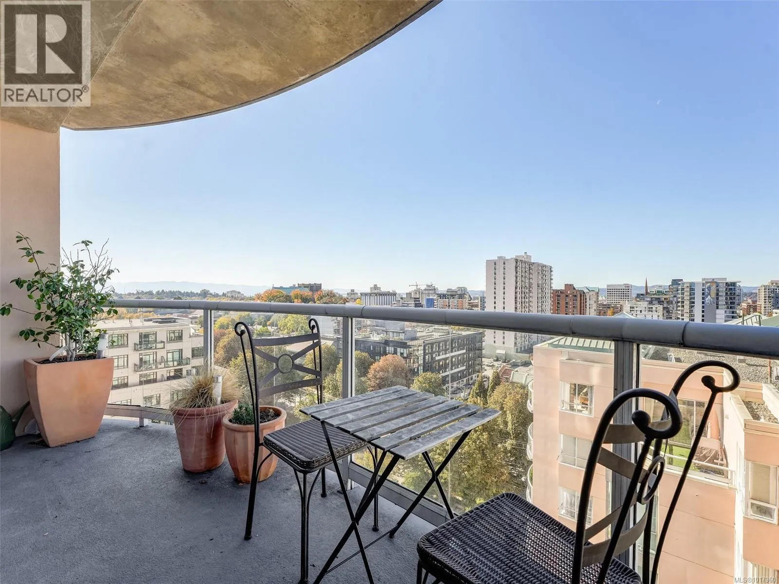 Open House Sunday, Oct. 26th, 2â4! Discover Regents Park in the sought after Harris Green district, downtown Victoria living at its best. Enjoy a prime central location with an exceptional walk score to shops, cafes, and amenities. This bright and spacious 2 bed, 2 bath southwest facing home is bathed in natural light with stunning ocean, city, and mountain views. Thoughtfully redesigned by an interior designer, high end upgrades include quality carpet, sleek kitchen appliances, tile backsplash, countertops, sink and faucet, and two beautifully renovated bathrooms featuring luxury fixtures, glass shower, tub, lighting, vanities, and modern barn doors for the in suite laundry. Enjoy secure underground parking, guest parking, a storage locker, fitness centre with sauna, workshop, and professional management. A welcoming, pet and family friendly community in an unbeatable location. Immediate possession available, move in and start living the downtown lifestyle! (id:27476)