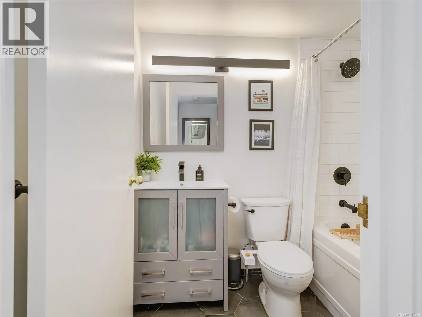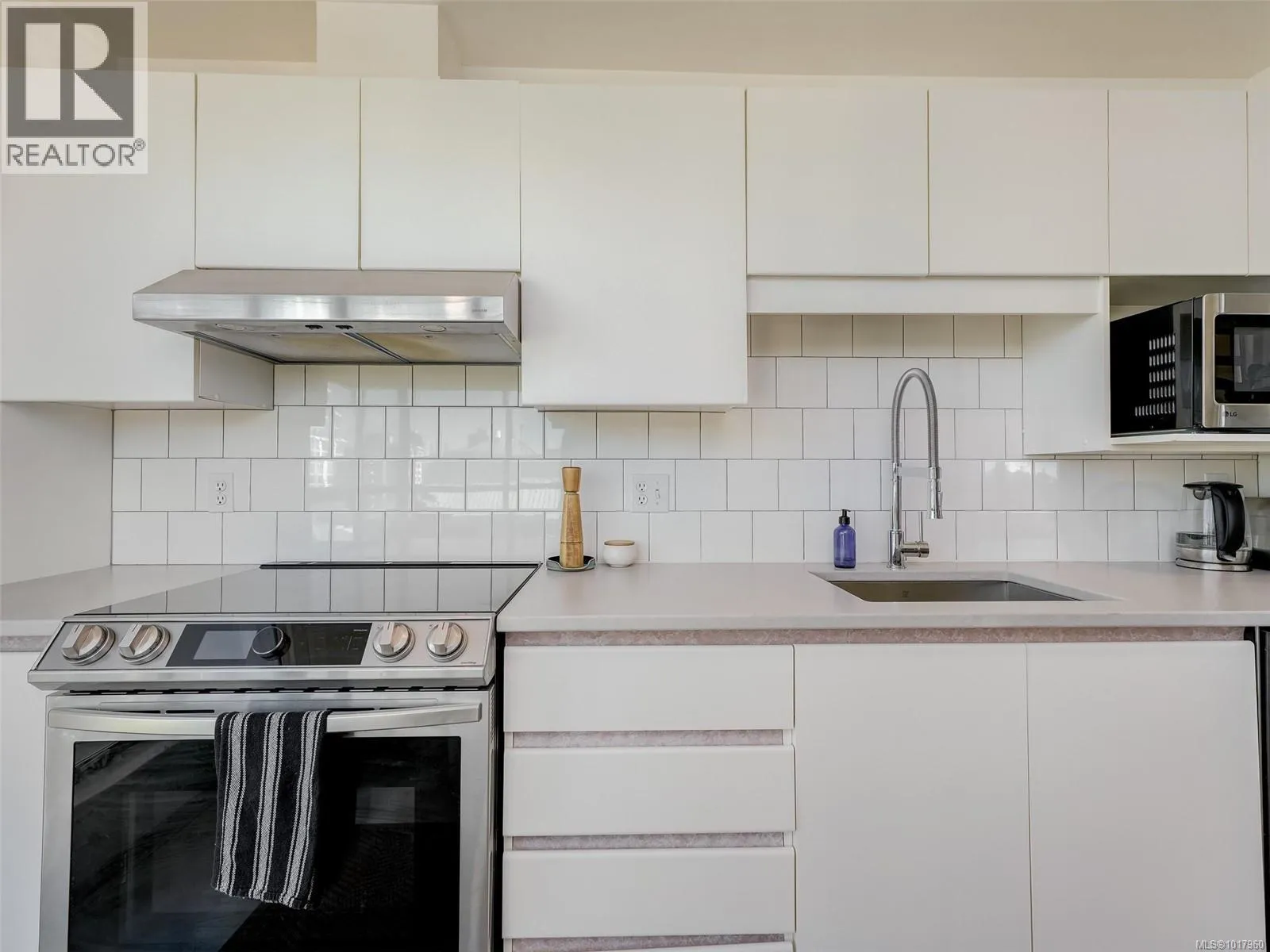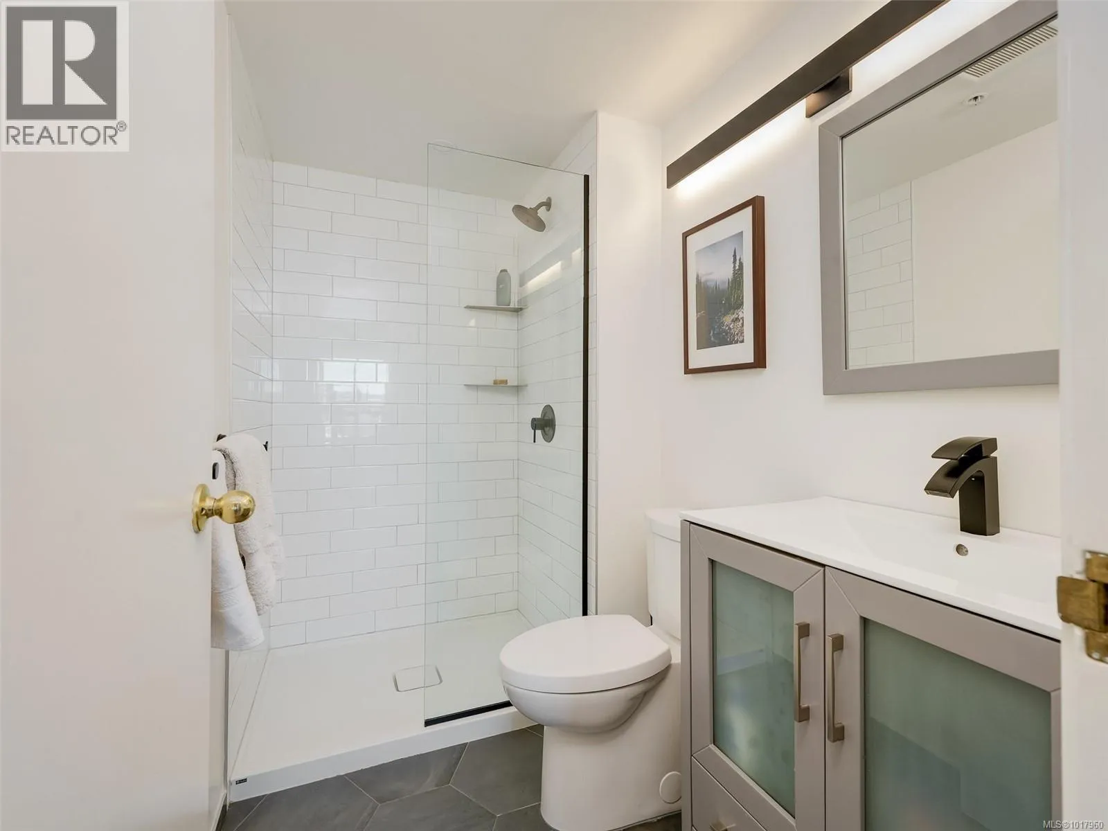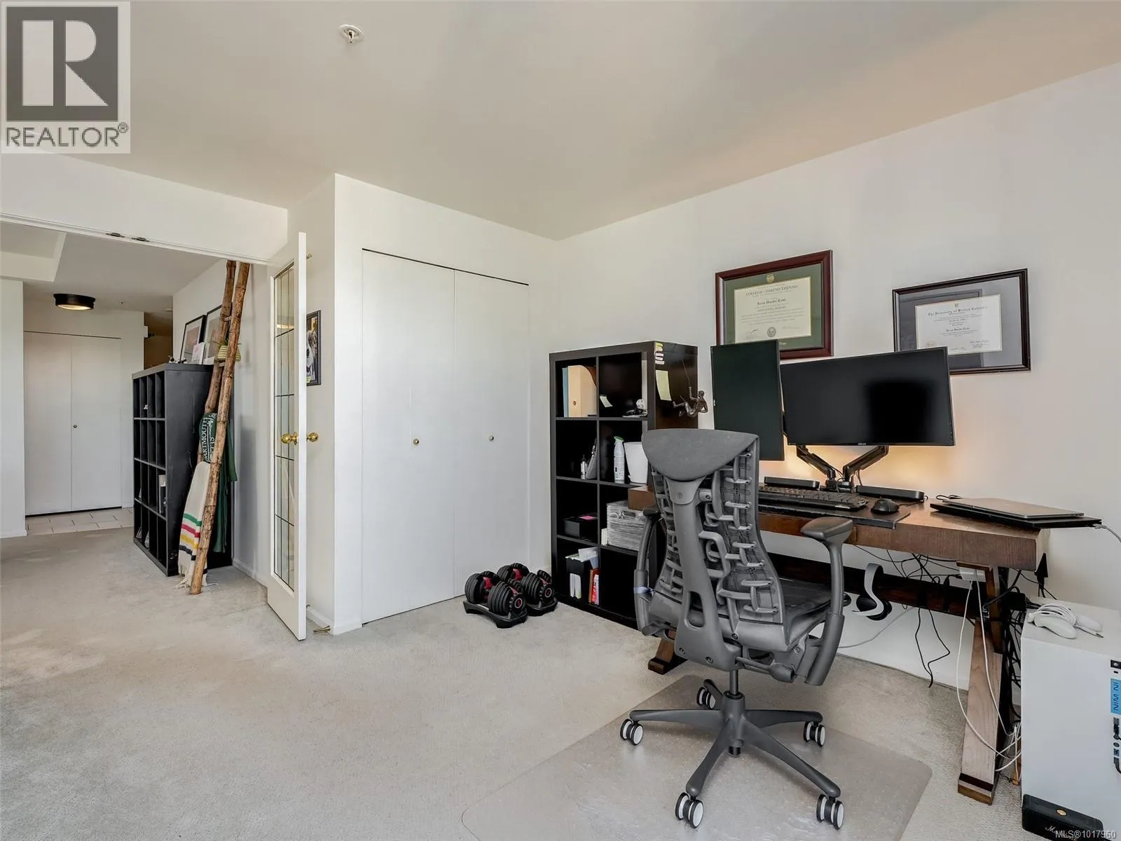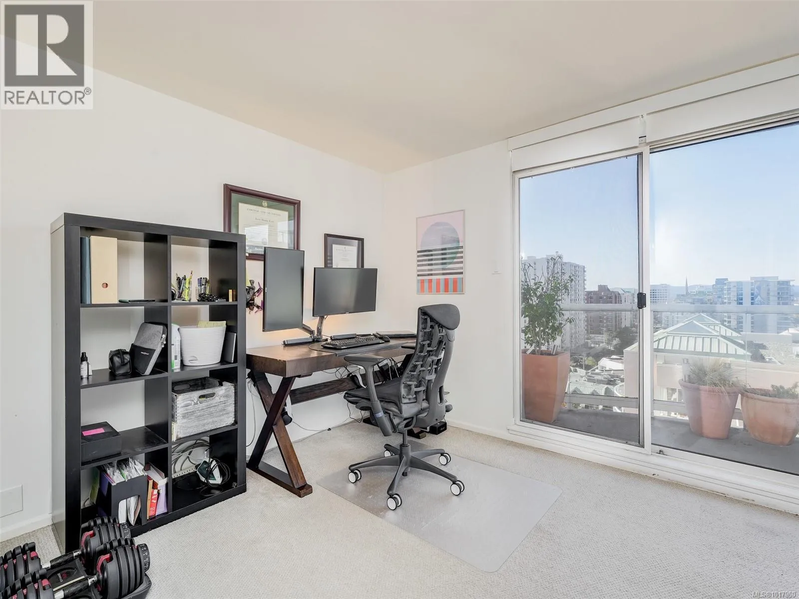 Open House Sunday, Oct. 26th, 2â4! Discover Regents Park in the sought after Harris Green district, downtown Victoria living at its best. Enjoy a prime central location with an exceptional walk score to shops, cafes, and amenities. This bright and spacious 2 bed, 2 bath southwest facing home is bathed in natural light with stunning ocean, city, and mountain views. Thoughtfully redesigned by an interior designer, high end upgrades include quality carpet, sleek kitchen appliances, tile backsplash, countertops, sink and faucet, and two beautifully renovated bathrooms featuring luxury fixtures, glass shower, tub, lighting, vanities, and modern barn doors for the in suite laundry. Enjoy secure underground parking, guest parking, a storage locker, fitness centre with sauna, workshop, and professional management. A welcoming, pet and family friendly community in an unbeatable location. Immediate possession available, move in and start living the downtown lifestyle! (id:27476)