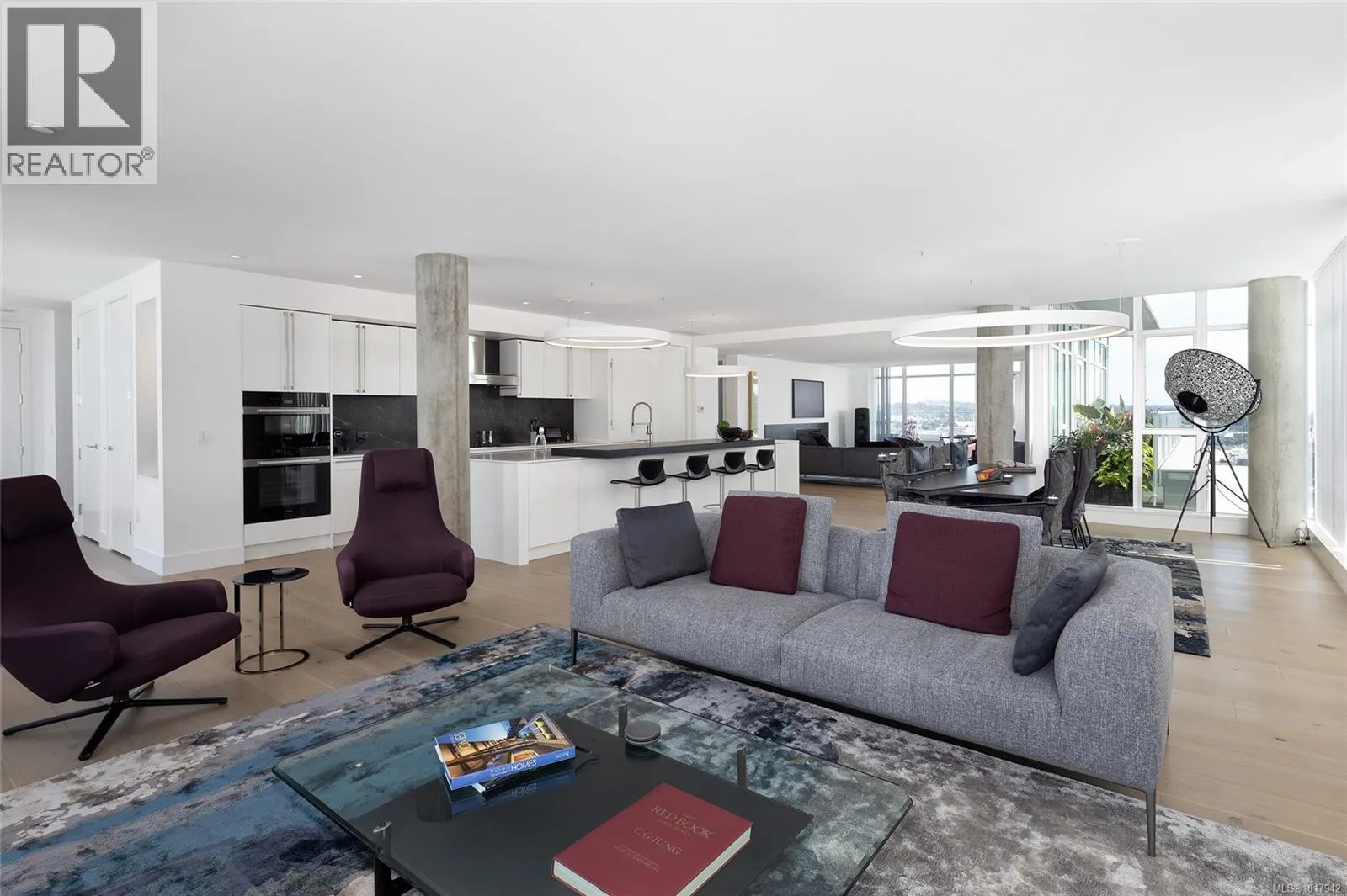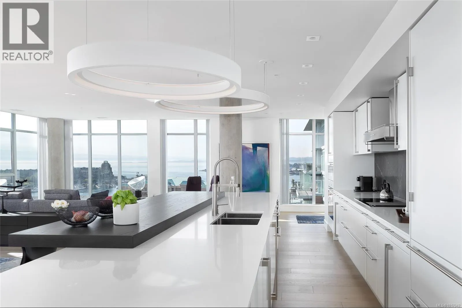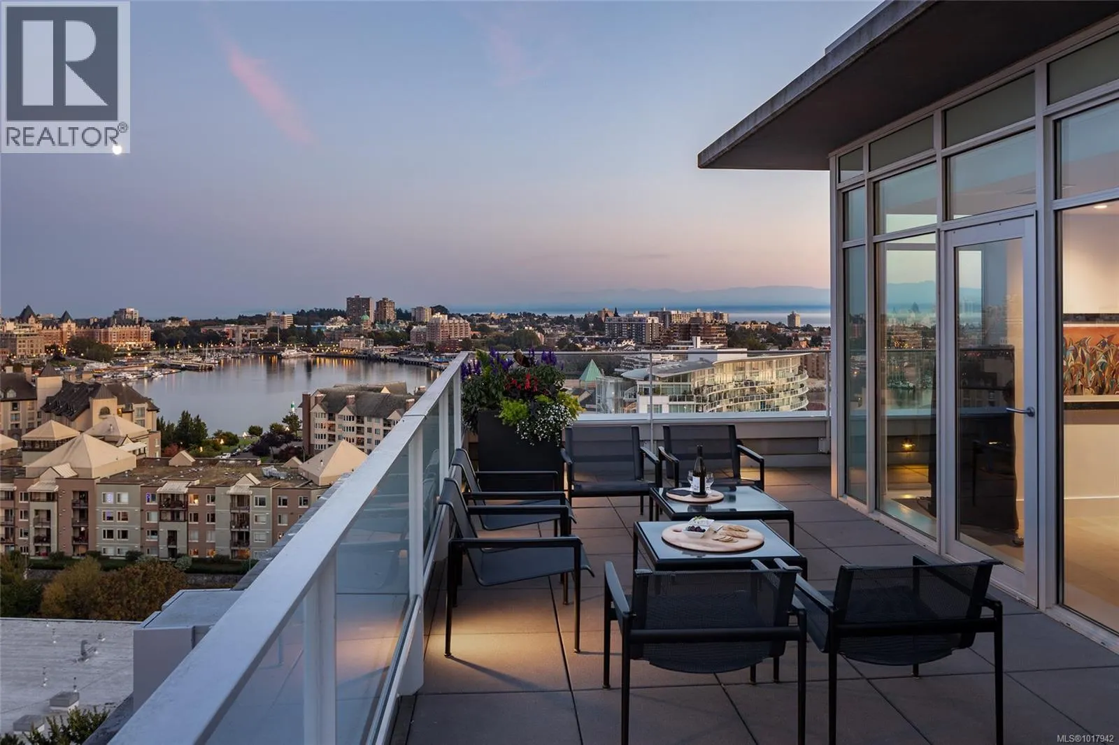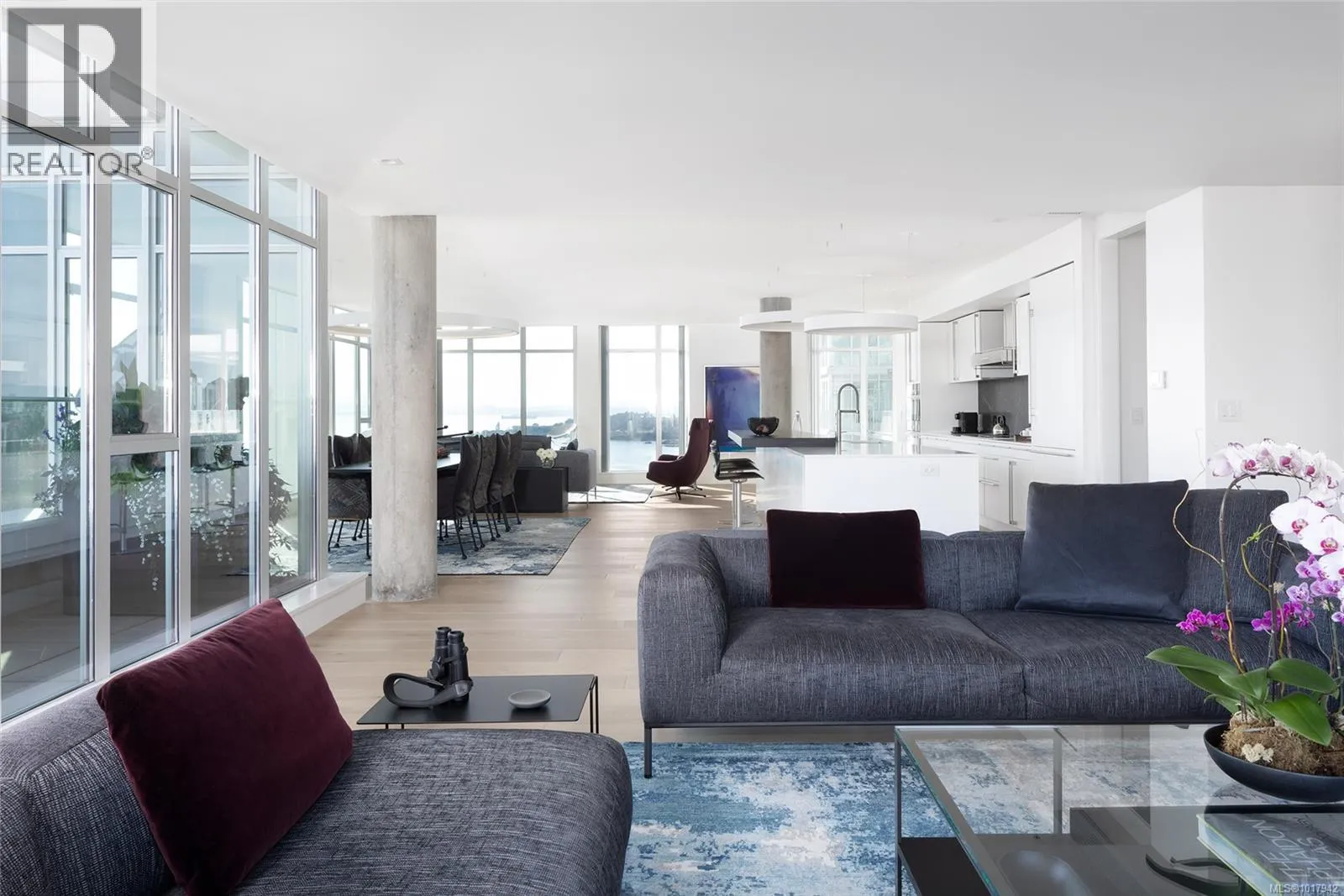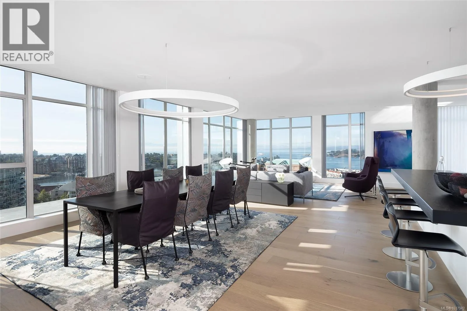 Perched high on one of Victoria's most prestigious buildings, this one-of-a-kind, 4234 sq ft penthouse offers unparalleled luxury and breathtaking panoramic views. With a rare position that overlooks the dynamic activity of the Inner Harbour, the tranquil waters, and majestic mountain vistas, this home spans East, South, and West, providing views of the Olympic Mountains, Port Angeles, and the iconic Mt. Baker. The open-concept design is flooded with natural light, thanks to expansive windows that frame the ever-changing scenery. Every inch of this residence has been meticulously curated and extensively renovated in 2022, blending sophisticated elegance with modern functionality. The home boasts three luxurious bedrooms, each with its own ensuite bathroom, a stunning media room, and a spacious butlerâs pantry off the chef-inspired kitchen. Crafted with the finest materials, the property features engineered flooring with a ¾â plywood base for exceptional stability, locally sourced marble, and high-end appliances. High-tech elements such as an integrated Whole House electrical system, electric window blinds, and heat pumps ensure both convenience and comfort. The building itself is regarded as one of the best in Victoria, offering exclusive amenities such as a concierge, a common entertainment room with a pool table, outdoor BBQ area, gym, hot tub, sauna, and even a dog-washing facility. Additional luxuries include four parking stalls in a secure, heated underground garage and two oversized storage lockers. This penthouse epitomizes the pinnacle of refined living in Victoria, combining space, style, and spectacular surroundings. (id:27476)