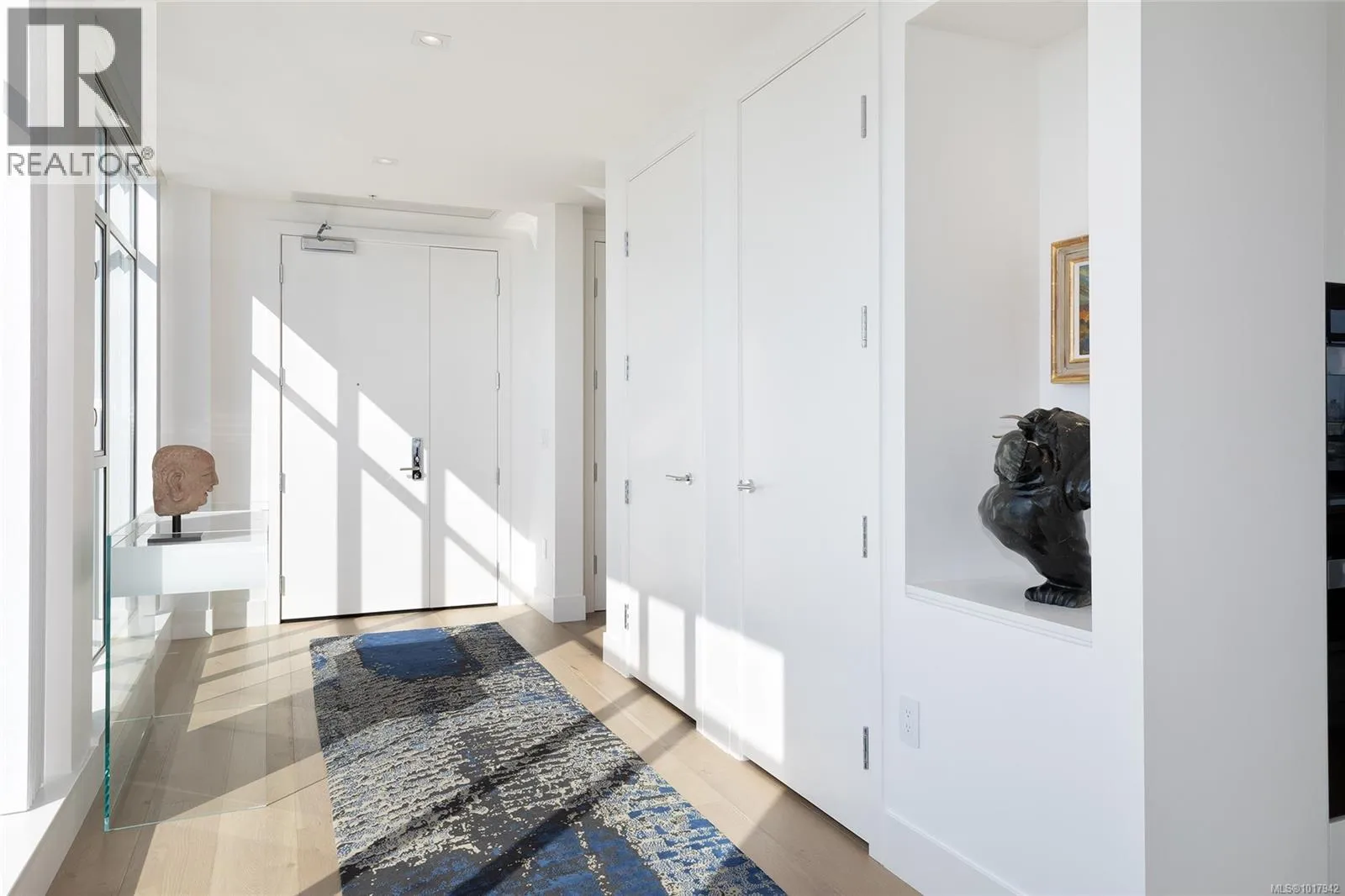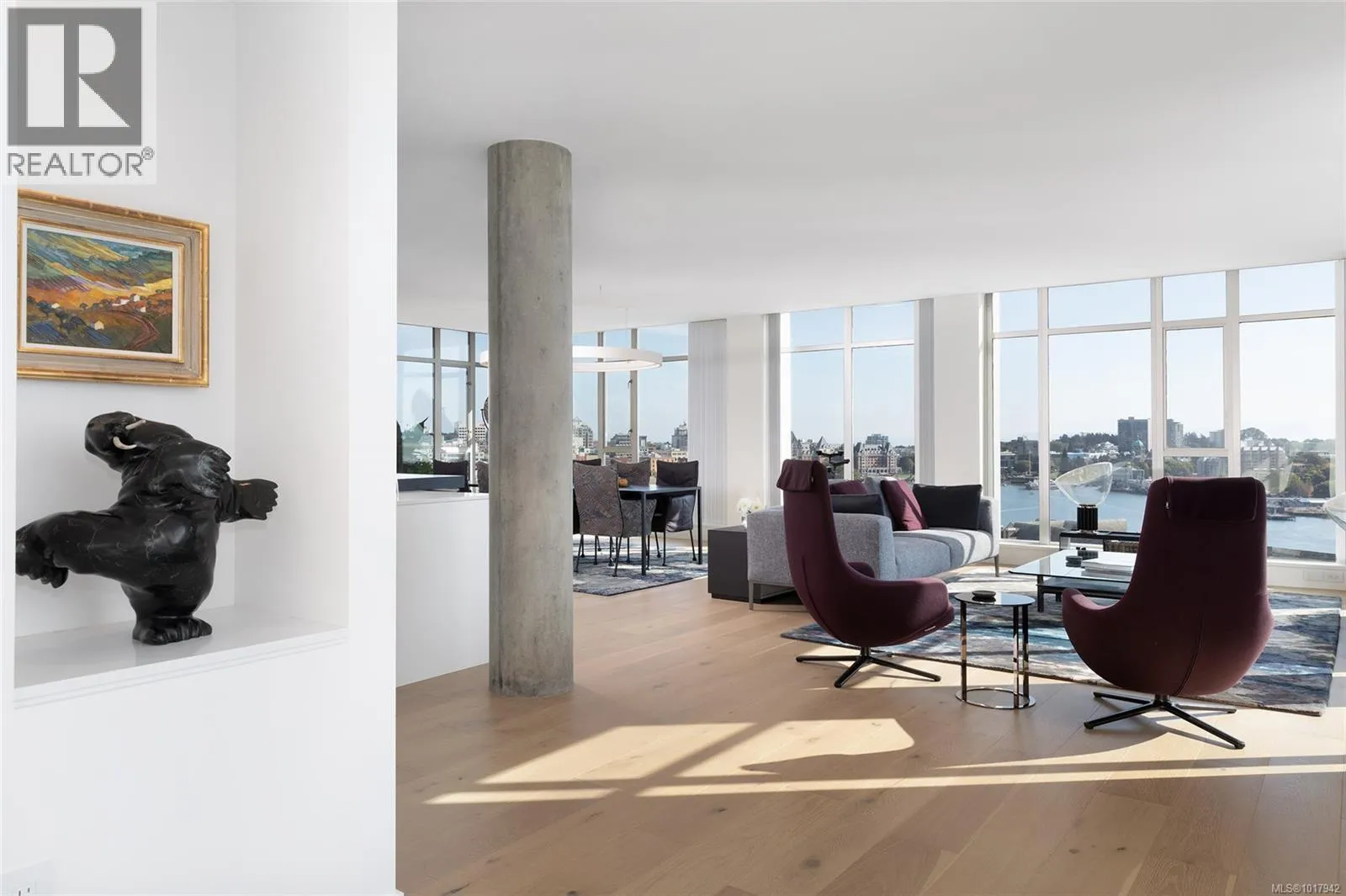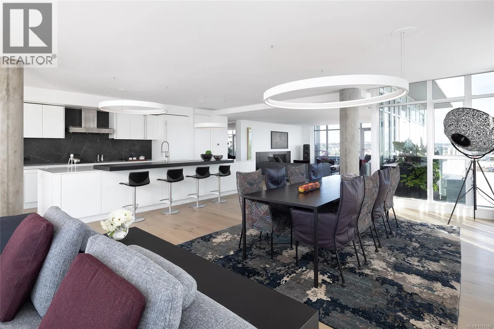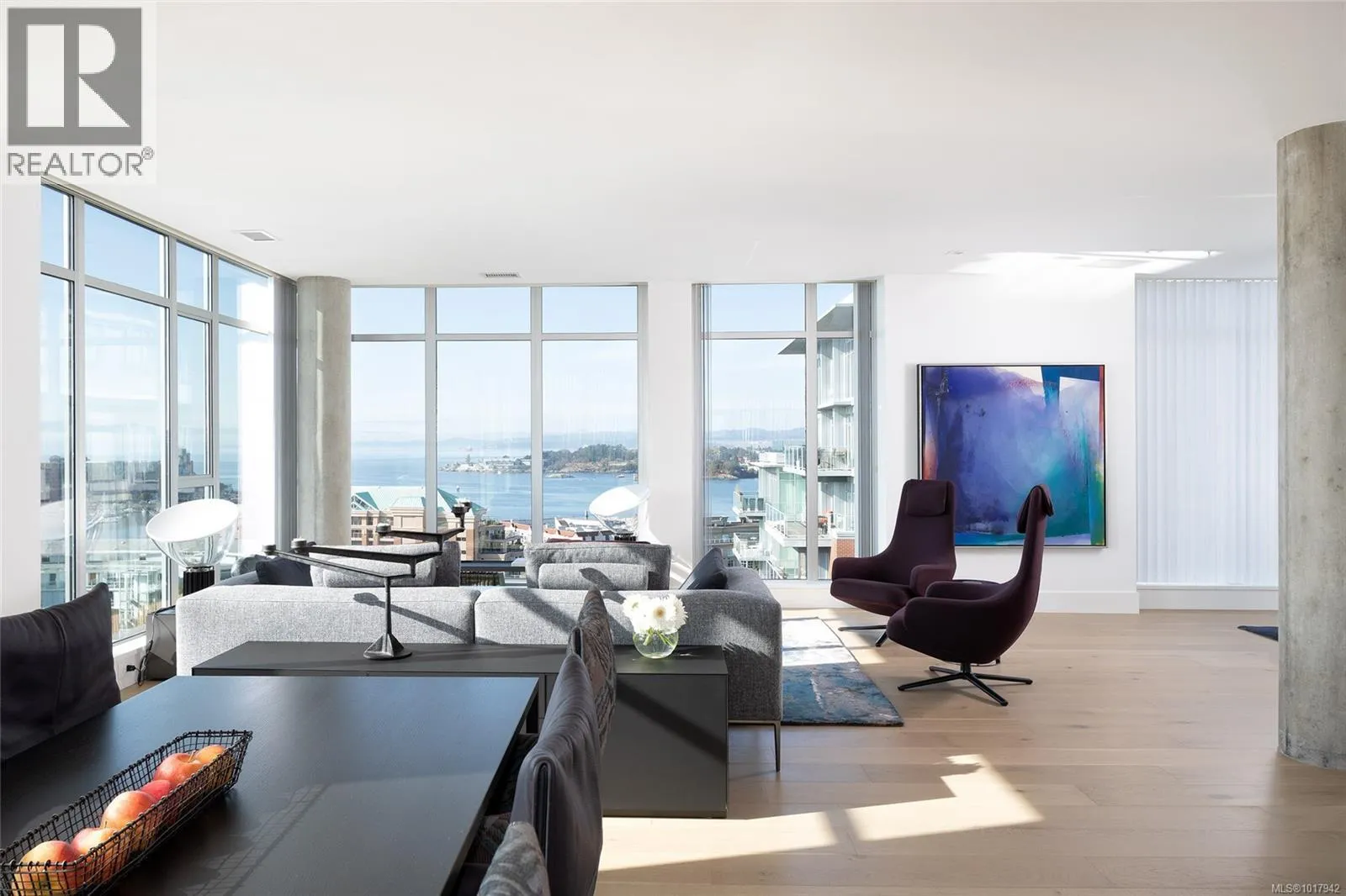 Perched high on one of Victoria's most prestigious buildings, this one-of-a-kind, 4234 sq ft penthouse offers unparalleled luxury and breathtaking panoramic views. With a rare position that overlooks the dynamic activity of the Inner Harbour, the tranquil waters, and majestic mountain vistas, this home spans East, South, and West, providing views of the Olympic Mountains, Port Angeles, and the iconic Mt. Baker. The open-concept design is flooded with natural light, thanks to expansive windows that frame the ever-changing scenery. Every inch of this residence has been meticulously curated and extensively renovated in 2022, blending sophisticated elegance with modern functionality. The home boasts three luxurious bedrooms, each with its own ensuite bathroom, a stunning media room, and a spacious butlerâs pantry off the chef-inspired kitchen. Crafted with the finest materials, the property features engineered flooring with a ¾â plywood base for exceptional stability, locally sourced marble, and high-end appliances. High-tech elements such as an integrated Whole House electrical system, electric window blinds, and heat pumps ensure both convenience and comfort. The building itself is regarded as one of the best in Victoria, offering exclusive amenities such as a concierge, a common entertainment room with a pool table, outdoor BBQ area, gym, hot tub, sauna, and even a dog-washing facility. Additional luxuries include four parking stalls in a secure, heated underground garage and two oversized storage lockers. This penthouse epitomizes the pinnacle of refined living in Victoria, combining space, style, and spectacular surroundings. (id:27476)