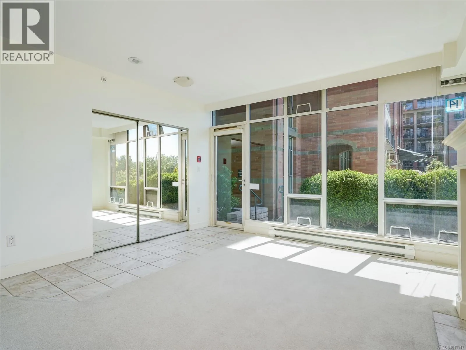 SHOAL POINT PATIO HOME. One Level Living, Exterior access only / No Elevators or Halls to deal with, Floor to Ceiling Windows in Great Room and Bedroom, 1,024 sq/ft of living space + Sunny South / East facing interlocking brick patio for outdoor living space, Rare Live / Work Zoning, lots of Natural Light, Spacious Rooms, Walk-In Closet & Pantry, High Ceiling, High Efficiency Natural Gas Fireplace, Gas Stove. GAS is included in Strata Fee. This World Class Building Offers Concierge Service, Fitness Center with Indoor Lap Pool, Hot tub, Sauna, Steam Room, Cold Plunge Pool, and Fully Equipped Exercise room, Car Wash, Workshop, Secure U/G Parking + Storage Locker. This is a marvelous community within the Vibrant Neighbourhood of James Bay just steps away from Fisherman's Wharf Park. PRICED TO SELL - $193K BELOW ASSESSED VALUE! (id:27476)