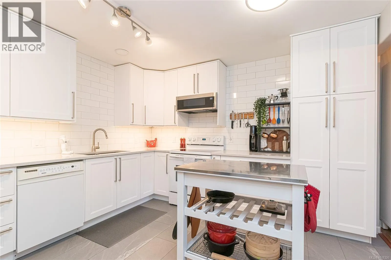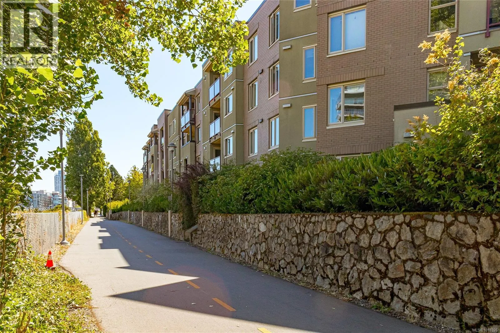 Nestled in the heart of the Inner Harbour, discover the epitome of urban living on a beautiful, quiet tree lined street. This spacious 2bed, 2bath home offers an unparalleled lifestyle. Enjoy the scenic Songhees Walkway, one of the most pleasant places in Victoria for a run or stroll, offering great views of the Inner Harbour, Strait of Juan de Fuca, and Victoria. This open concept home boasts a bright, renovated kitchen that shares a seamless layout with the living/dining area, feat: mixed use floors, a gas f/p, and private patio. The primary bedroom offers a large closet and full ensuite. Add features incl: secure underground pkg, storage, and strata fees covering both water and gas. With the exciting Roundhouse development approaching, this pet friendly, move in ready home is ideal for those seeking a dynamic waterfront lifestyle. Embrace the Inner Harbour lifestyle, with the Galloping Goose and dedicated cycling lanes nearby, and make this exceptional location your new home! (id:27476)