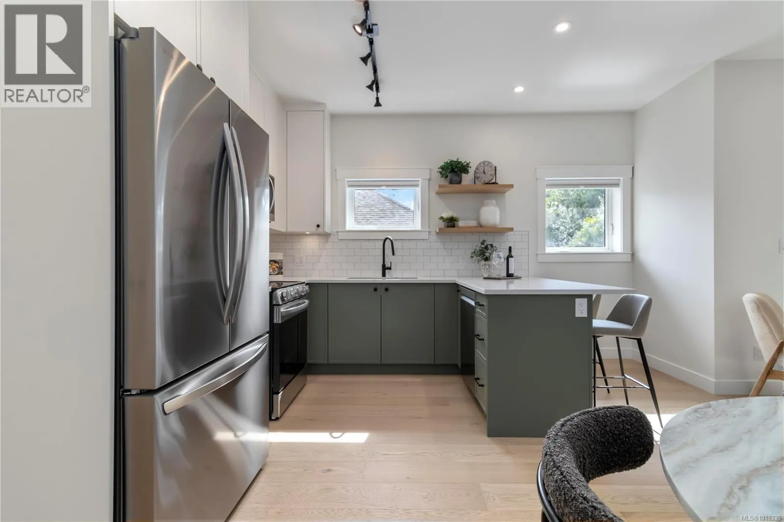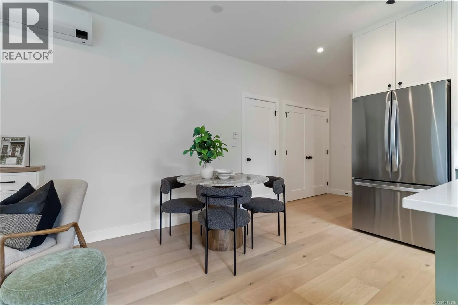 Special Offer, With the Purchase of a new home at Kindred, get a $12,000 bike credit towards the purchase of a new bike at Bishop's Family Cycles.This beautifully designed 3-bedroom,2-bath townhome offers the perfect blend of modern style & sustainable living.This top-floor unit is flooded with natural light & features a charming balcony perched above the treetopsâwhat a view! Inside, youâll find high-quality finishes throughout, including engineered white oak flooring, a Samsung heat pump, heated floors in the primary ensuite, & a cozy electric fireplace.Expansive windows bring in an abundance of light & vaulted ceilings create a warm & inviting atmosphere.Tucked away on a quiet, tree-lined no-through street in Vic West, youâre just minutes from the areaâs best coffee shops, parks, the Galloping Goose Trail, & the energy of village life.Premium amenities include a best-in-class bike garage with ample space for cargo bikes, plus convenient access to a shared electric vehicle. Book a showing today! (id:27476)