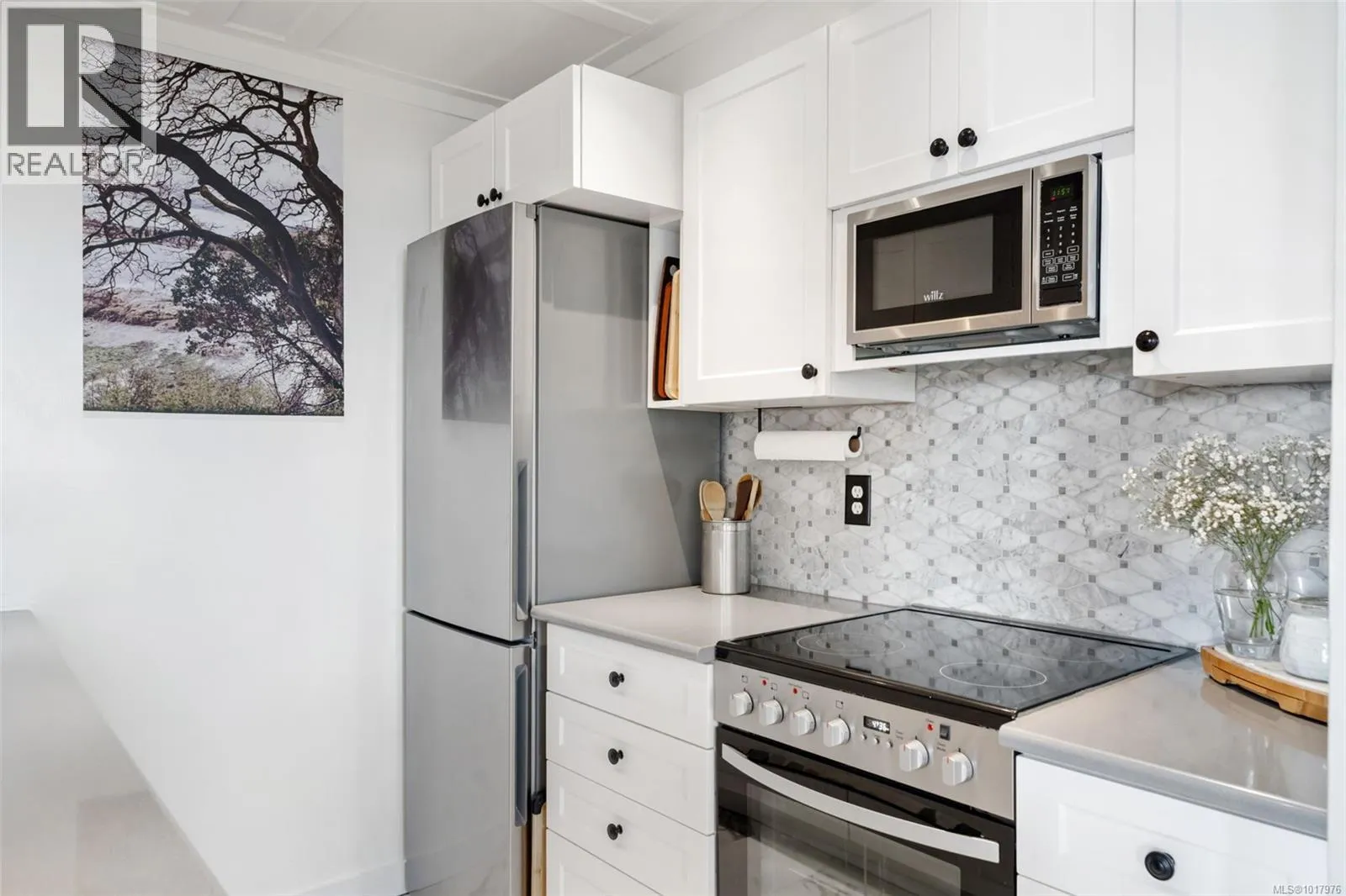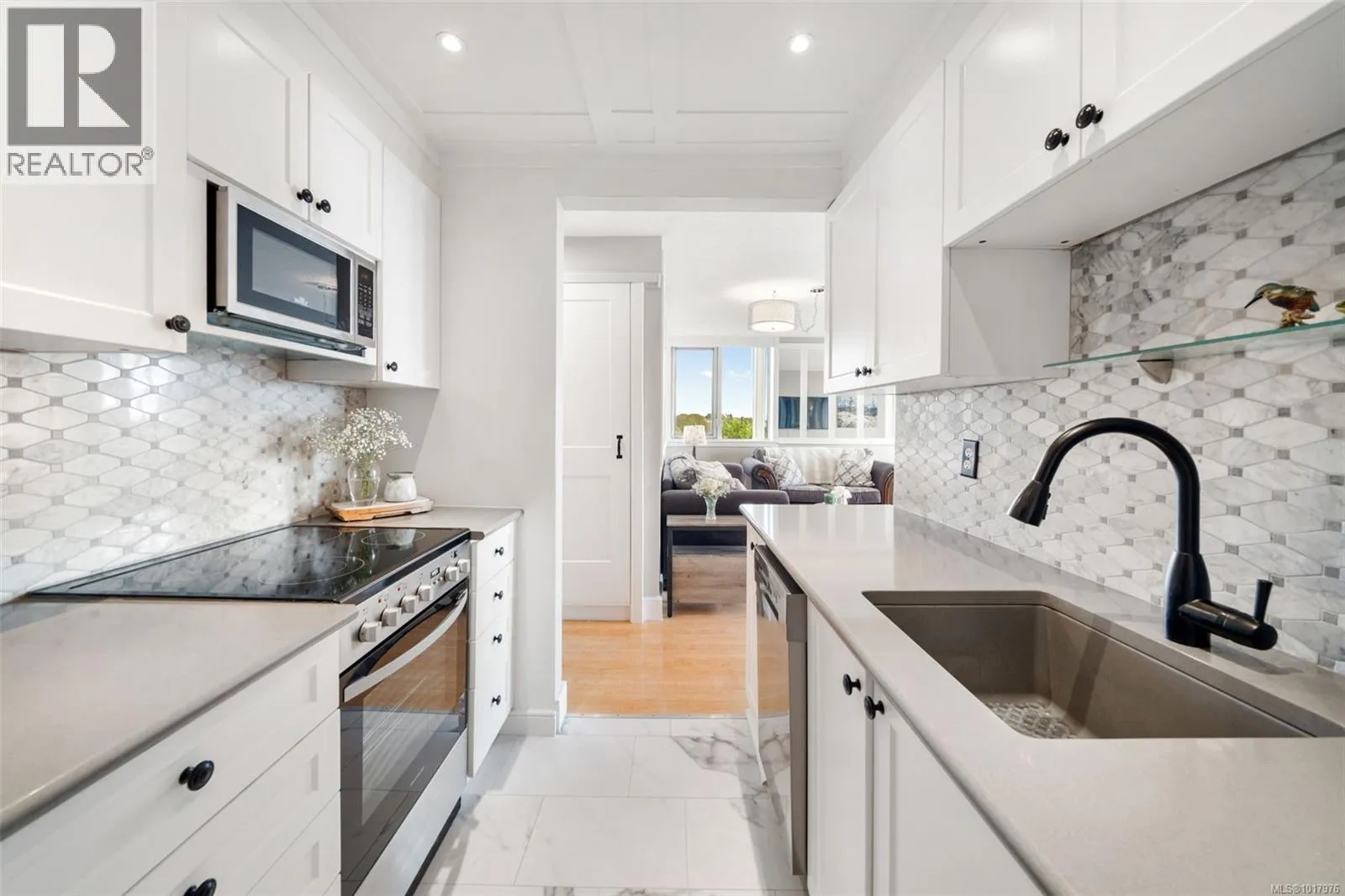 Wake up to breathtaking sunrises! The perfect way to start the day in this beautifully updated and comfortable, south-east facing condo. Enjoy stunning views of the Inner Harbour, Laurel Point, the ocean and the Olympic Mountains. This unit offers two spacious bedrooms and a tastefully renovated kitchen and bathroom. With a Walk Score of 85, it's just minutes away from parks, grocery stores, shops and all kinds of great restaurants in the area. Take the staircases down to the scenic Songhees waterfront walkway and stroll to Spinnakers Brewpub, Boom + Batten, or the West Bay Marinaâall while soaking in the ocean breeze and panoramic vistas. Minutes from downtown Victoria by car, bus, or bike, and a direct bus ride to UVic or Tillicum Mall, this location offers the perfect blend of tranquility and convenience. Amenities in this building include secure underground parking (EV roughed-in), storage unit, fitness room, workshop, carwash station and rec rooms. Book your showing today! (id:27476)