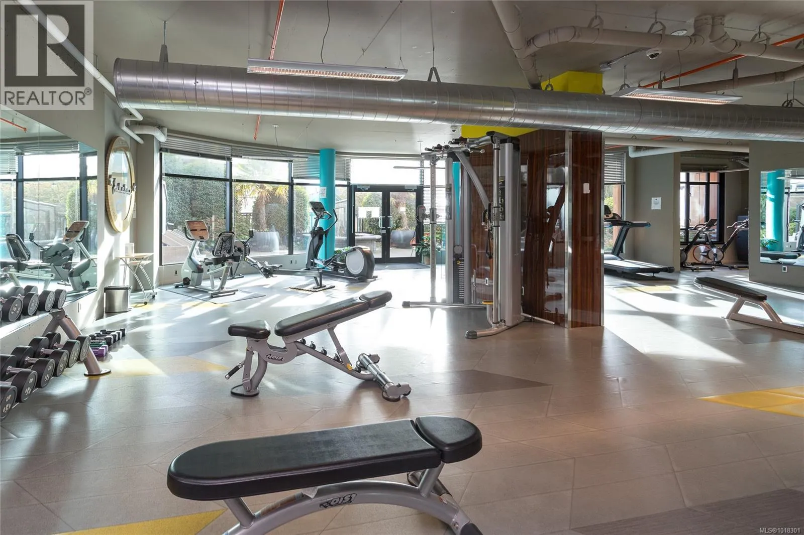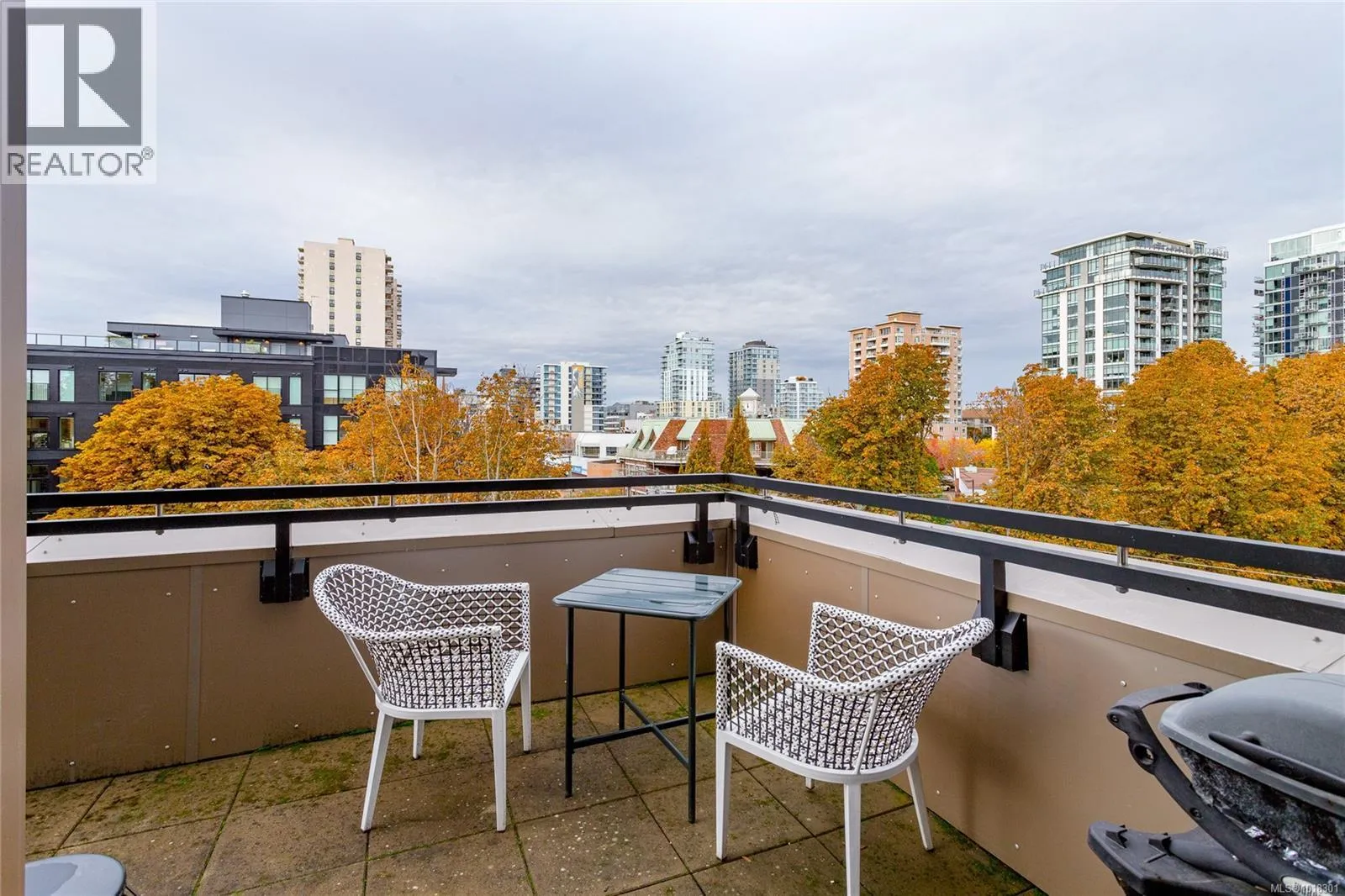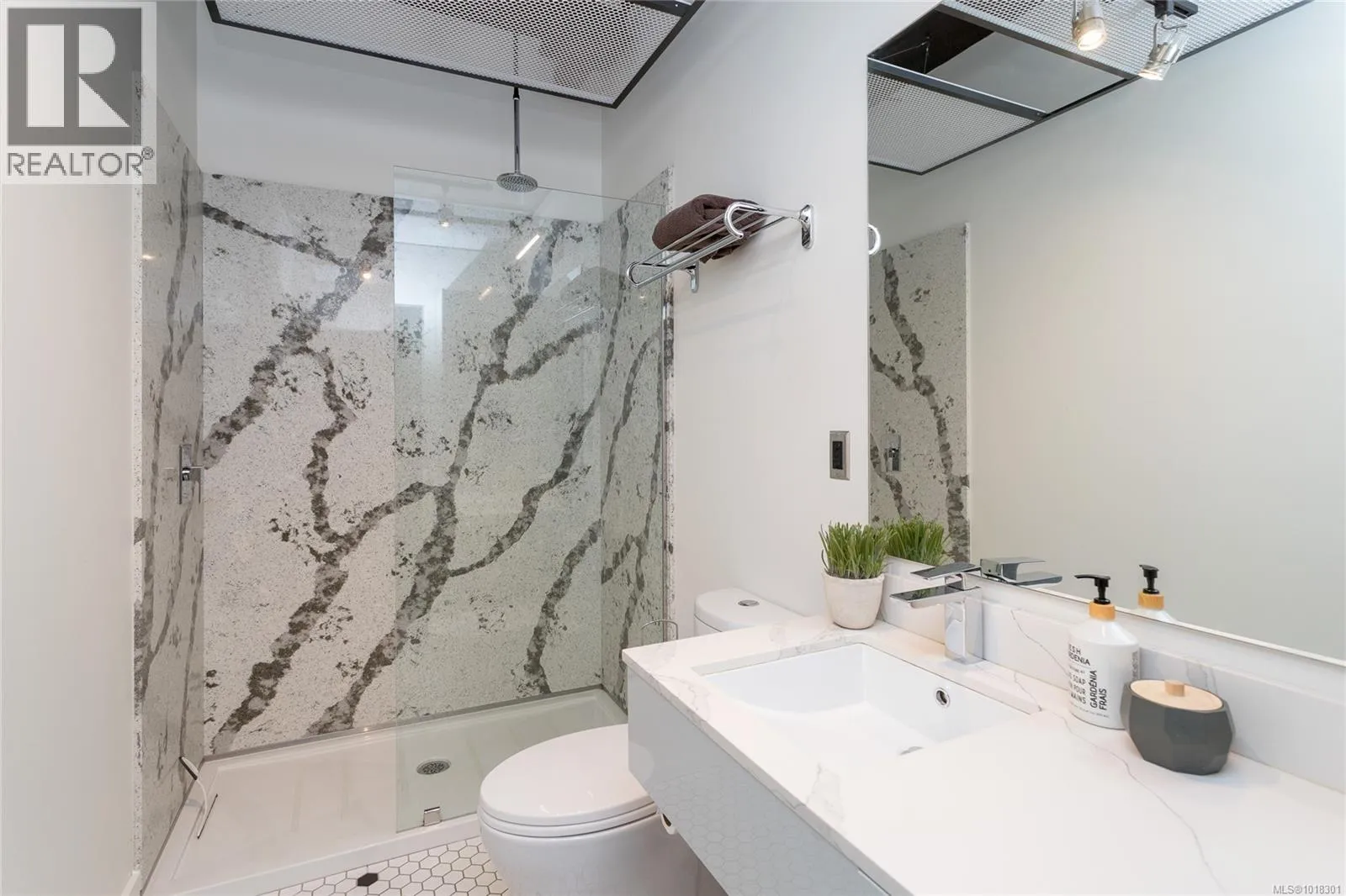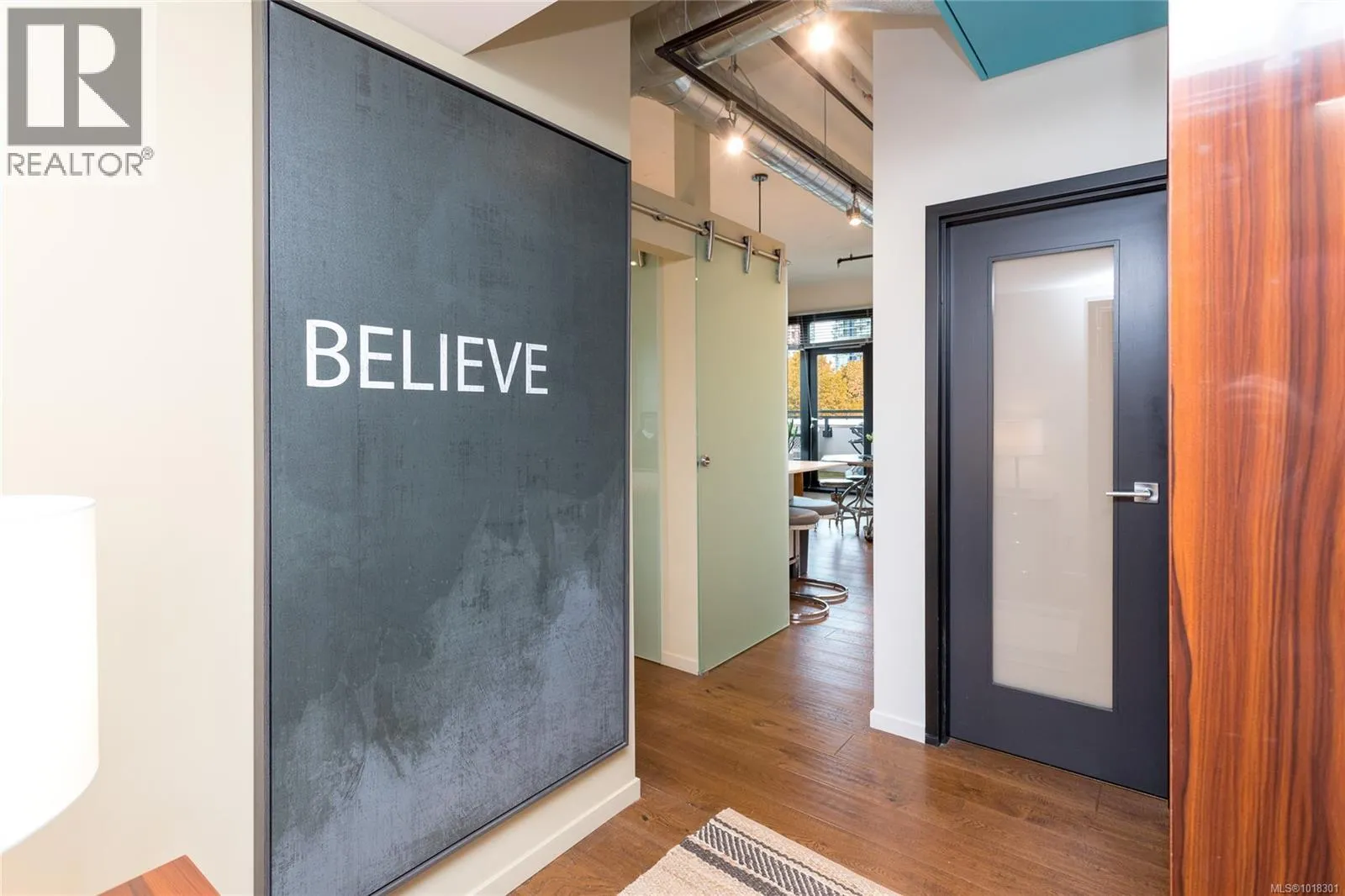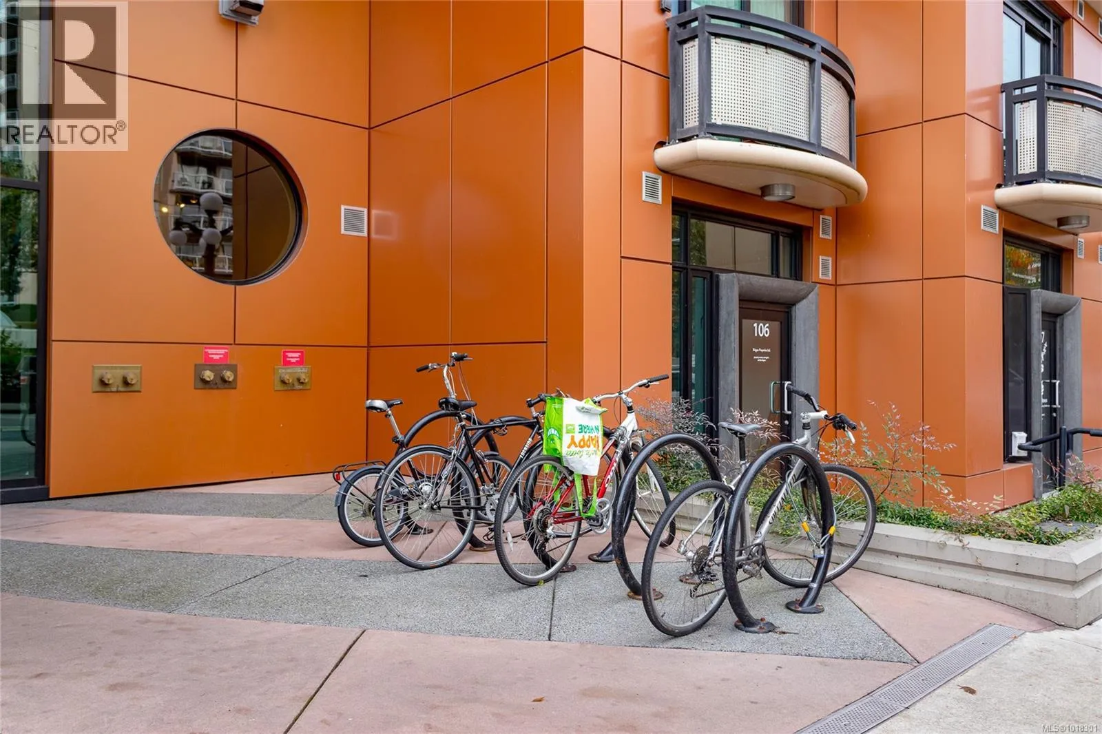 Gorgeous & Unique Loft Style Living in The Juke Box! Light filled corner unit with floor to ceiling windows, over 400 sq. ft of balconies,10'high ceilings, European Vinyl Plank flooring throughout, high gloss kitchen w/quartz counters, built in appliances and island, decadent bathroom with ceiling rain shower head, washer and dryer and custom freestanding armoires. Live the downtown lifestyle in Harris Green-across the street from Yates Market with its numerous market stores, 1/2 block to Cook St., yet only 3 blocks from the heart of Victoria's downtown where all the action is. COMES FULLY FURNISHED and READY TO LIVE IN or a GREAT TURN KEY PROFESSIONALLY MANAGED REVENUE PROPERTY. Min 90 days rental. Pets welcome. U/G parking and storage/bike lockers included. Huge Fitness centre with outdoor patio and water feature. Call now to book viewing! (id:27476)