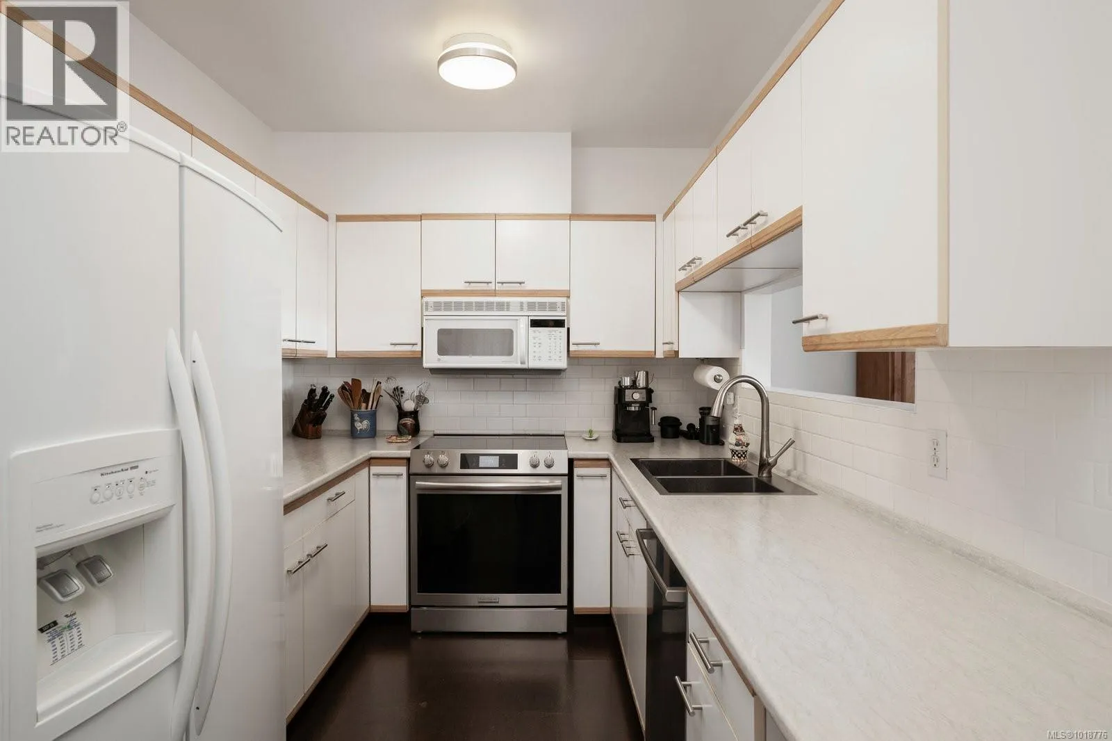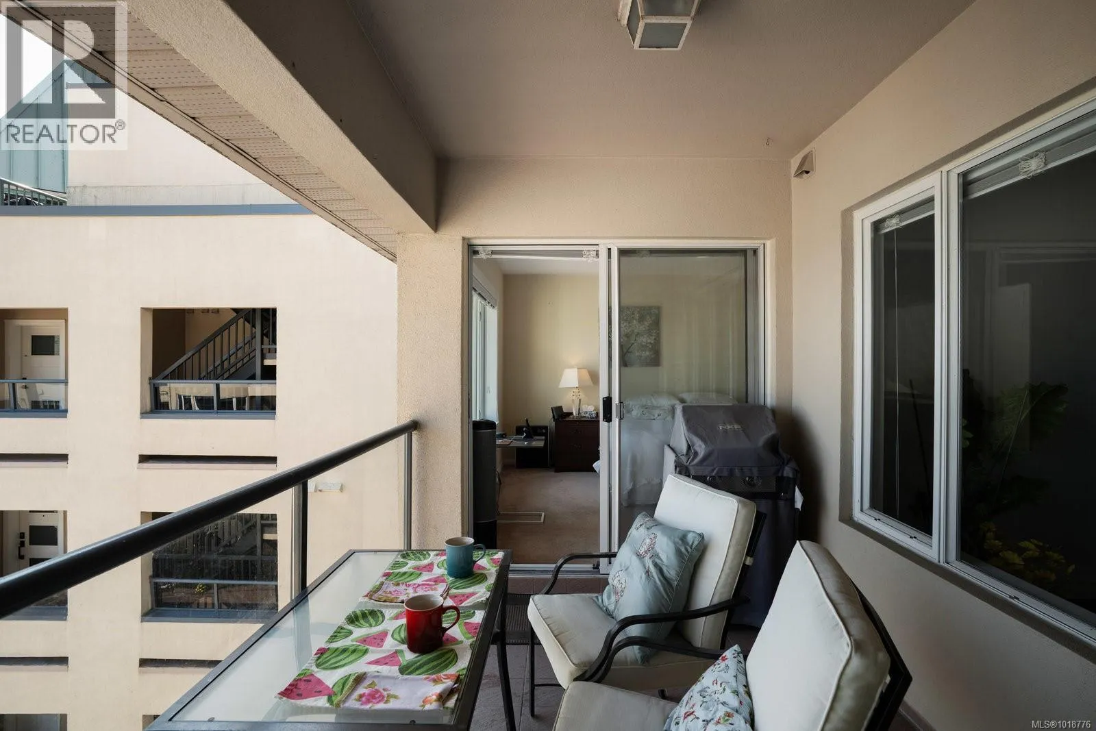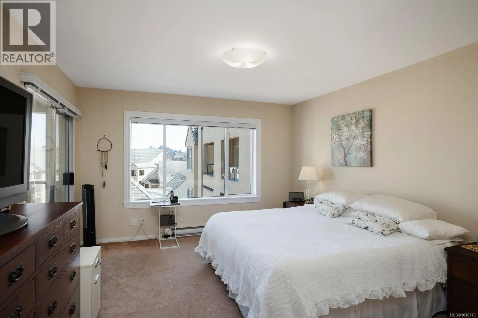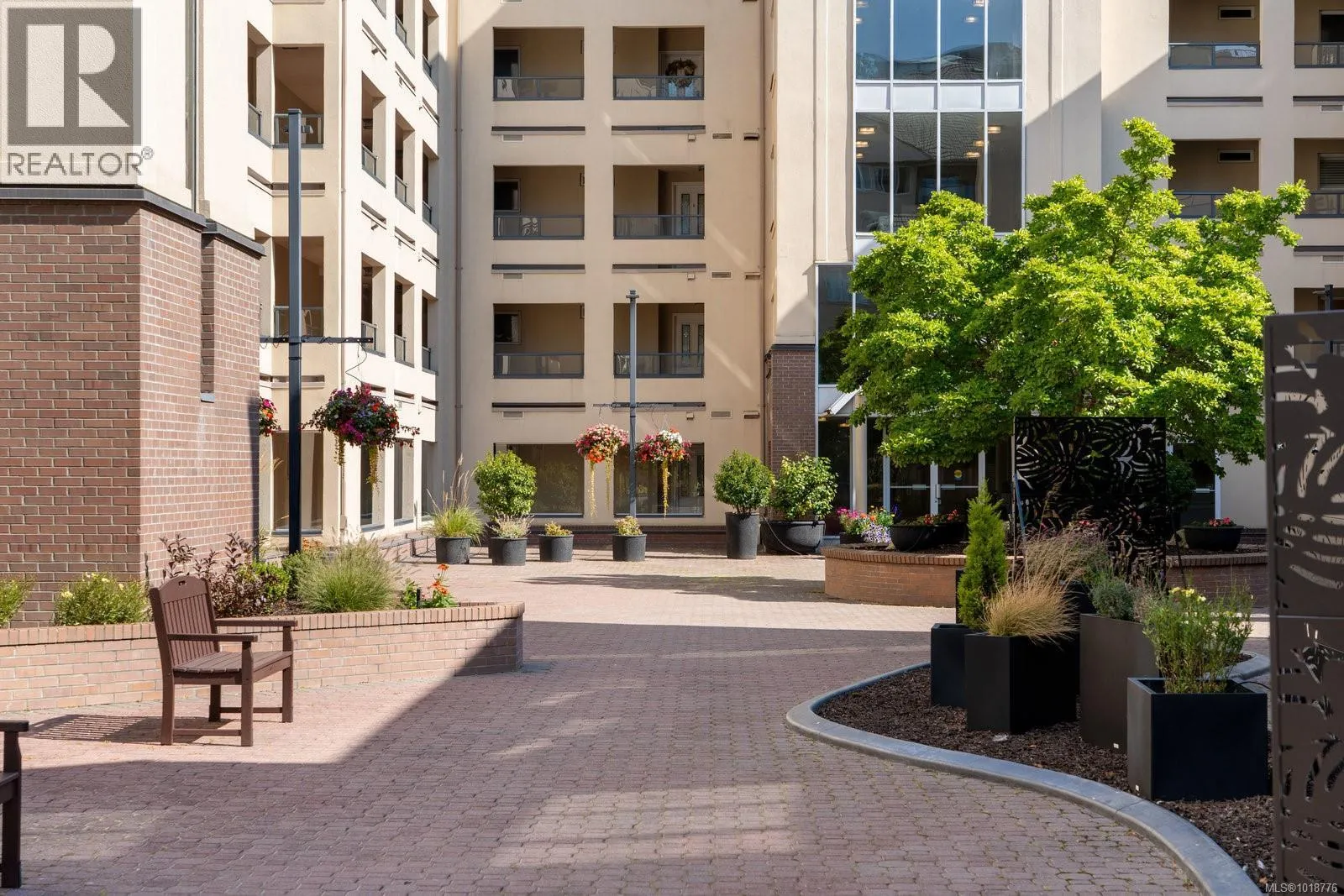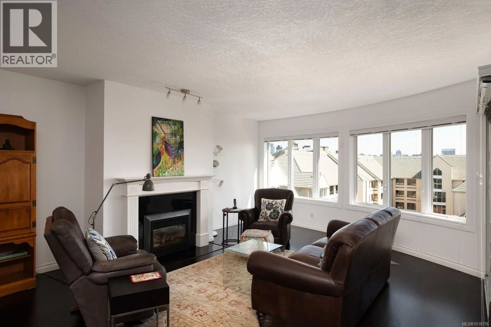 Morning sunrises over the city with south-eastern views of the Empress Hotel and Inner Harbour, along with just under 1,500 sqft of living space, make this a standout top-floor condo. Ideally located in one of the cityâs most desirable neighbourhoods, offering tranquility with immediate access to downtown. Inside, an open-concept layout features high ceilings, expansive windows, and abundant natural light. The living room, anchored by a cozy gas fireplace, is framed by harbour views, while the adjacent dining area easily accommodates gatherings against the Empress Hotel and Inner Harbour backdrop. The private primary suite boasts generous proportions, large windows, and a spacious ensuite. A second bedroom enjoys harbour views to the south-west, with a full bath nearby. Additional highlights include a laundry room, ample in-suite storage, secure parking, and building amenities such as a lounge, conference room, guest suite, and landscaped courtyards, plus the waterfront pathway linking to the marina, shops, and cafés. (id:27476)