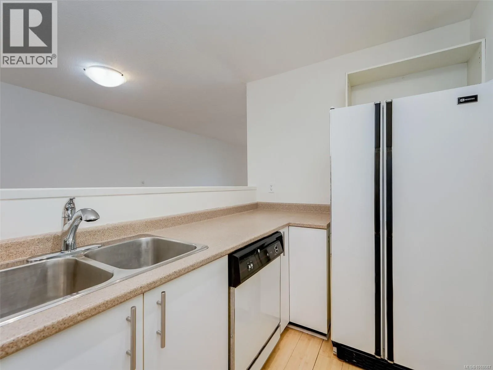 Bright and well designed top floor condo in a well managed, pet friendly building located in a highly walkable neighbourhood close to cafe's, shops and transit. This inviting condo features an updated bathroom, freshly painted throughout, a comfortable primary bedroom with patio doors to a private balcony and an open concept living and dining area with cozy gas fireplace and bamboo flooring. The kitchen offer good storage, and there's insuite laundry and additional storage space for convenience. The building was fully remediated in 2005 and is known for its community feel and reputable strata. Includes one secure parking stall and separate storage locker. Bonus.. strata fees include natural gas, water, prof. maintenance and more. An ideal home for first time buyers or those looking to downsize without compromise in a quality, well cared for building. (id:27476)