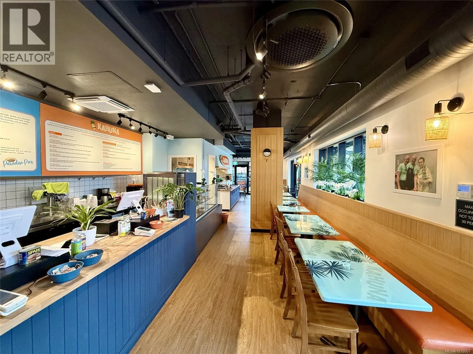 A rare opportunity to acquire a beautifully built, turn-key restaurant space in the Ironworks Building, one of downtown Victoriaâs most distinctive mixed-use developments (built in 2020).This ground-floor location offers an efficient and stylish setup with seating for 30â35 guests indoors plus a licensed patio for approximately 20 more. The modern kitchen is equipped with a 10-ft Wells ventless hood system, suitable for a wide range of food concepts.The front-of-house features cold storage and an efficient service counter designed for streamlined operations and low staffing requirements. Additional highlights include: Food primary liquor license (transferable), Heat pump providing both heating and cooling, Two washrooms and one secured parking stall. There is ample free street parking available on Store Street and a large public lot directly across from the premises. This is a turn-key opportunity for an operator looking to bring their concept to downtown in an emerging area. Please do not contact staff or owners directly. (id:27476)