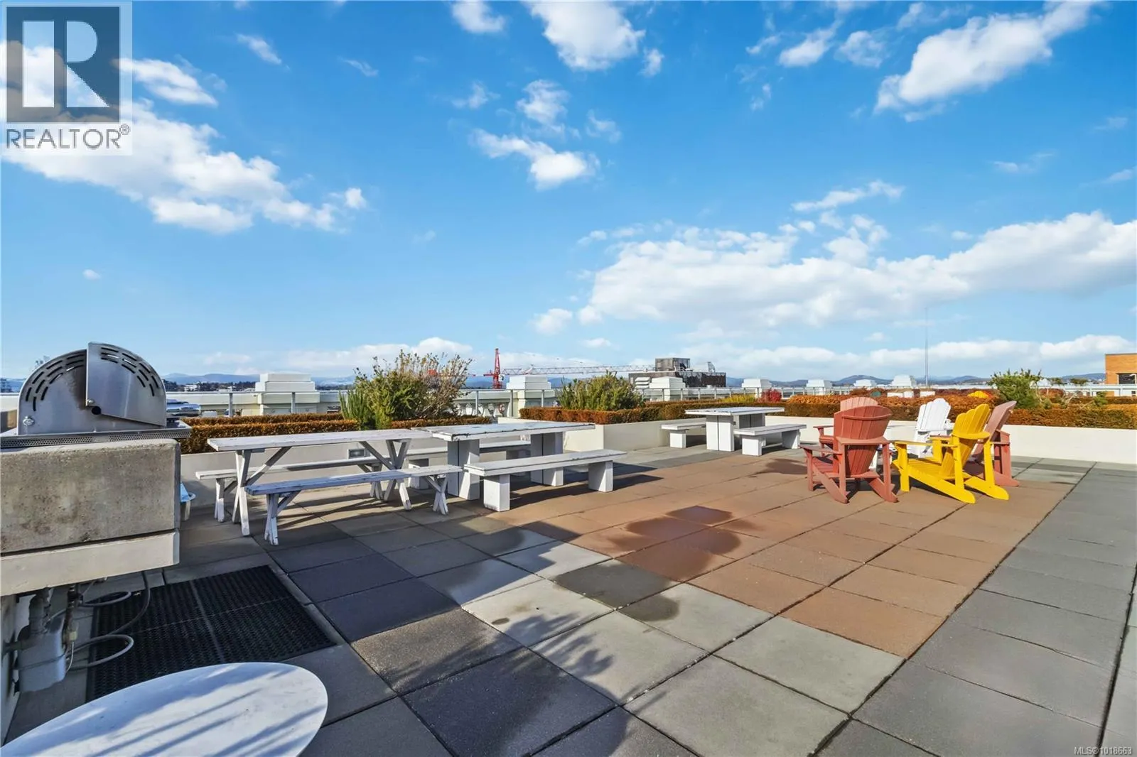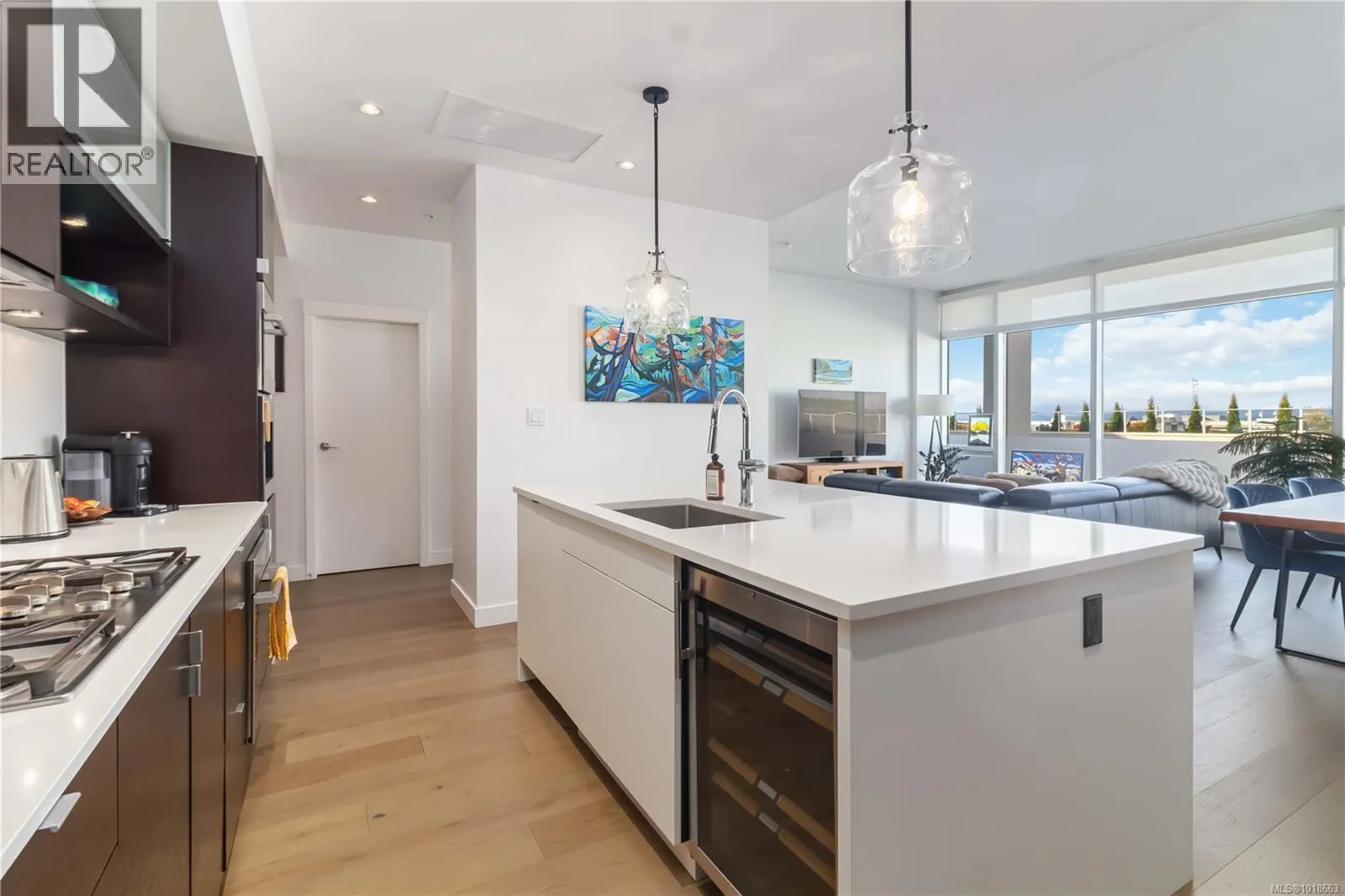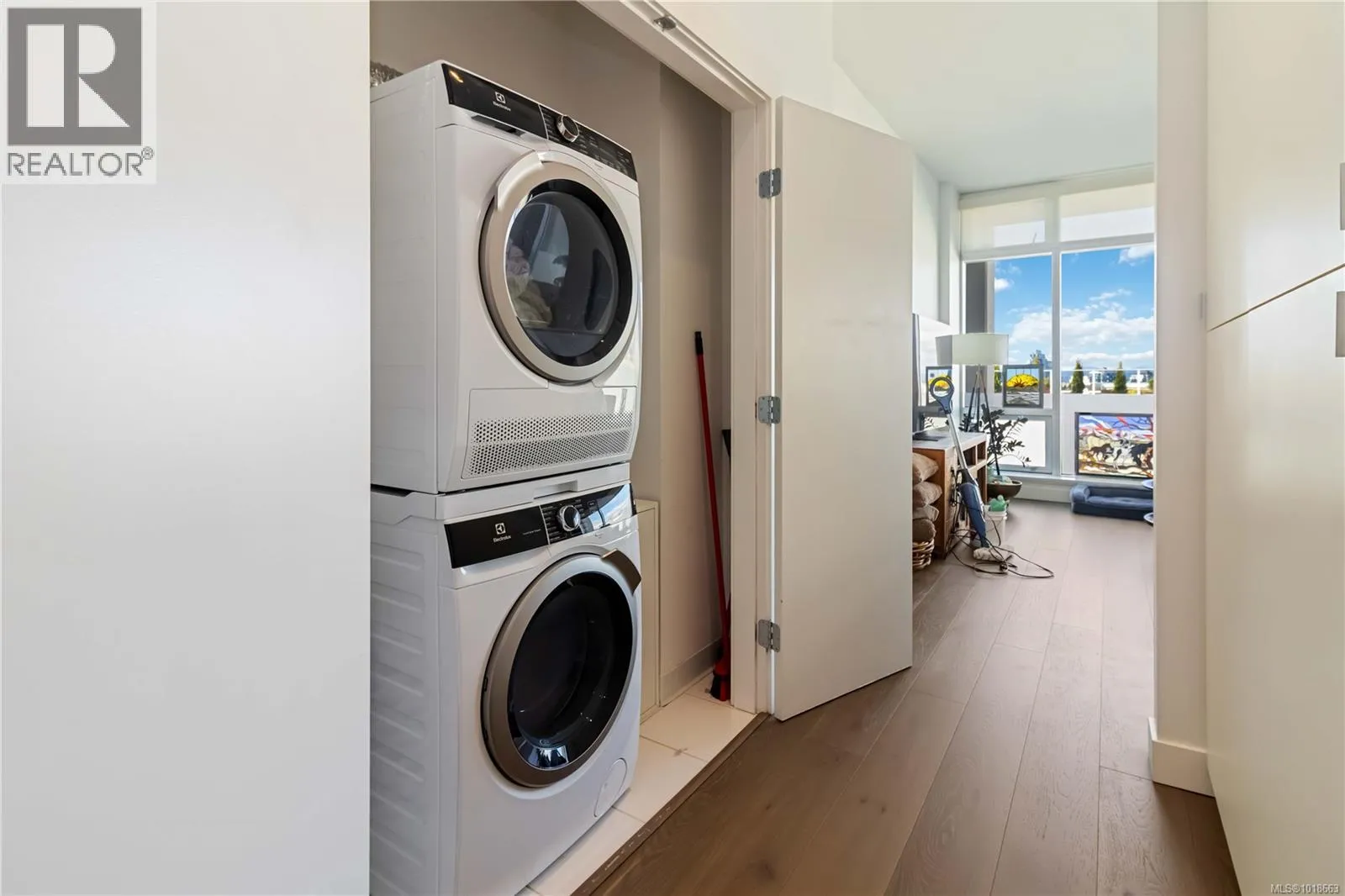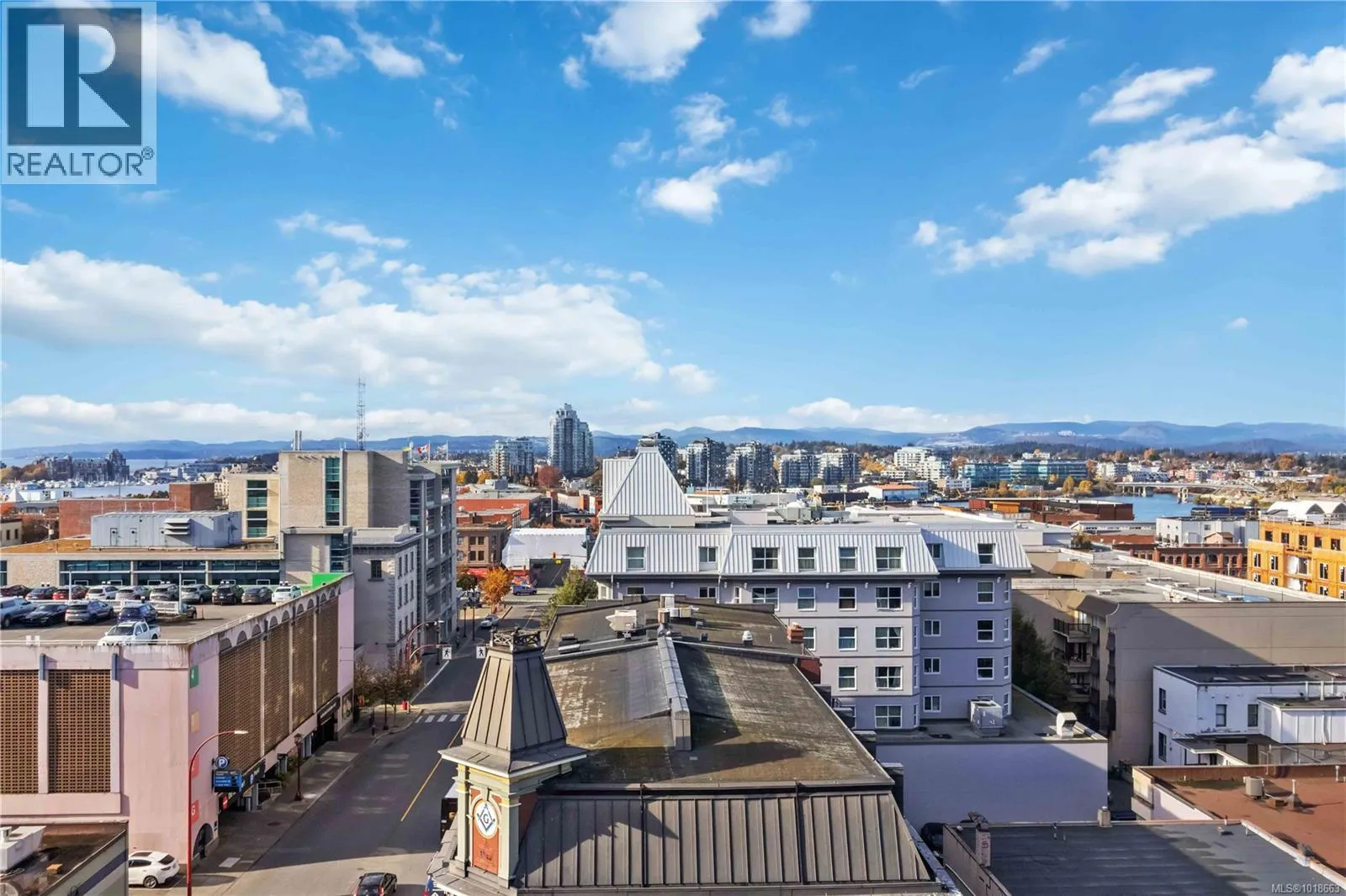 Experience luxury living in this stunning 2 bedroom + DEN Sub-Penthouse Suite at The Hudson. Located in Victoriaâs historic downtown, this 1,312 sq. ft. home features 10-ft ceilings, in-suite laundry, heated bathroom floors, ample storage, and a geothermal HVAC system. Entertain in the open-concept kitchen, which boasts quartz countertops, a large island with a wine fridge, high-end Miele appliances including a 5-burner gas range, a double door fridge/freezer, a built-in Espresso Machine, a dual-purpose microwave/convection oven, and a separate oven unit. Take in the beautiful sunset and mountain views over Sooke on your west-facing covered patio or on the spectacular 14,000+ sqft rooftop patio with lounges and a BBQ area. The professionally managed building offers secure parking with 2 PARKING SPOTS, a car wash area, extra storage, and is pet, family, and rental friendly. Steps from Victoriaâs best restaurants, shops, entertainment, transit, Chinatown, and the beautiful Inner Harbour. (id:27476)