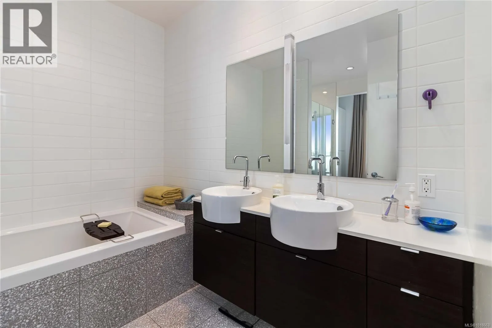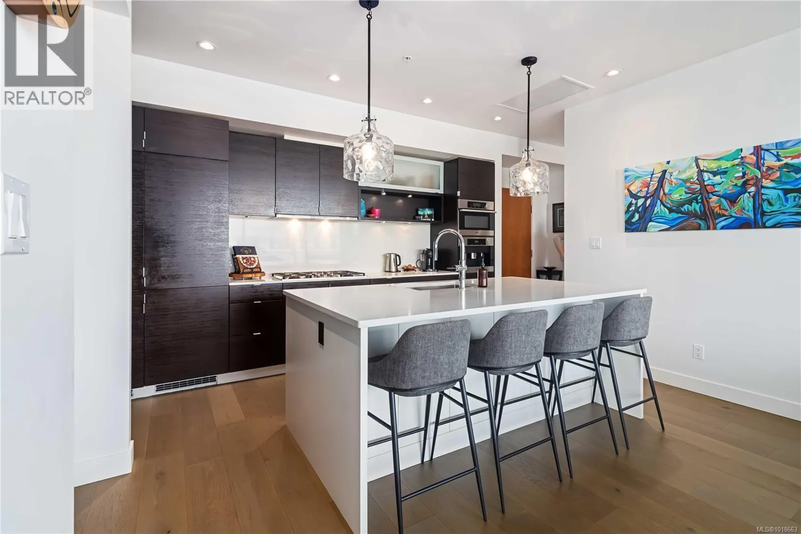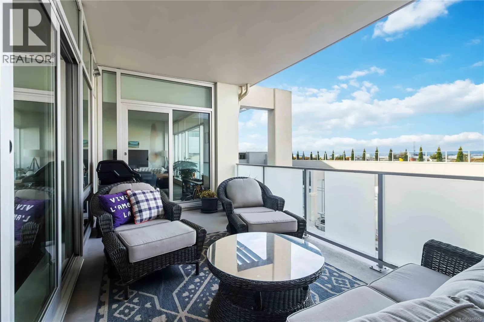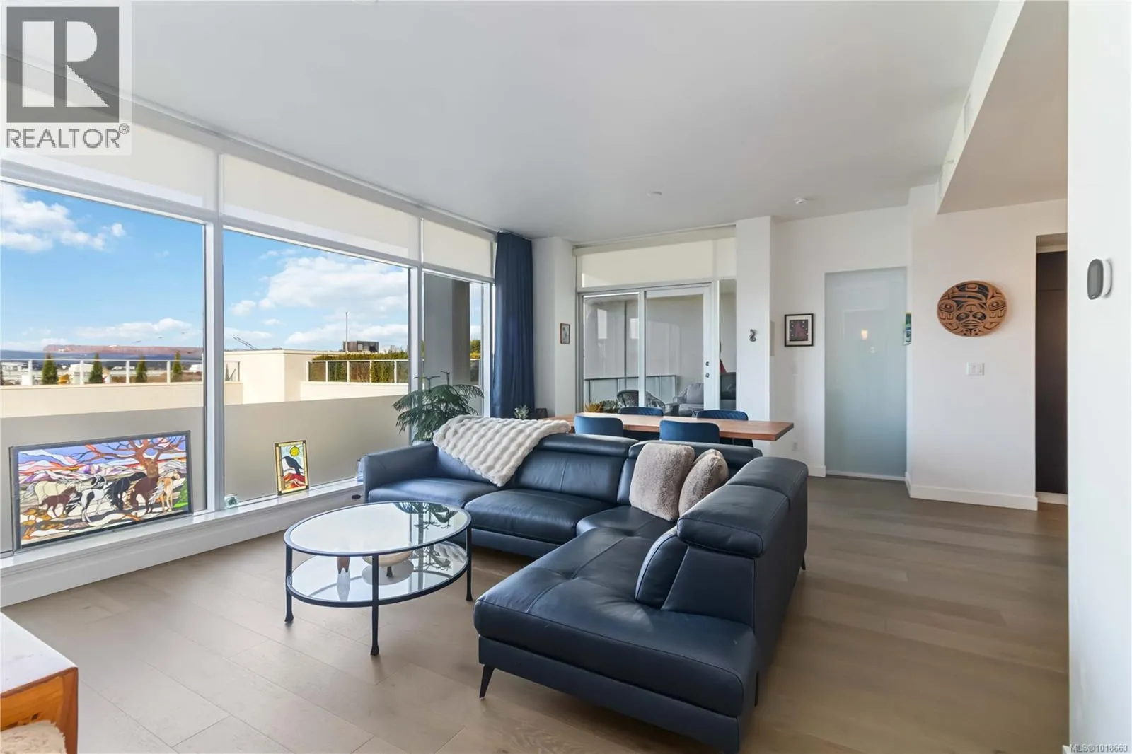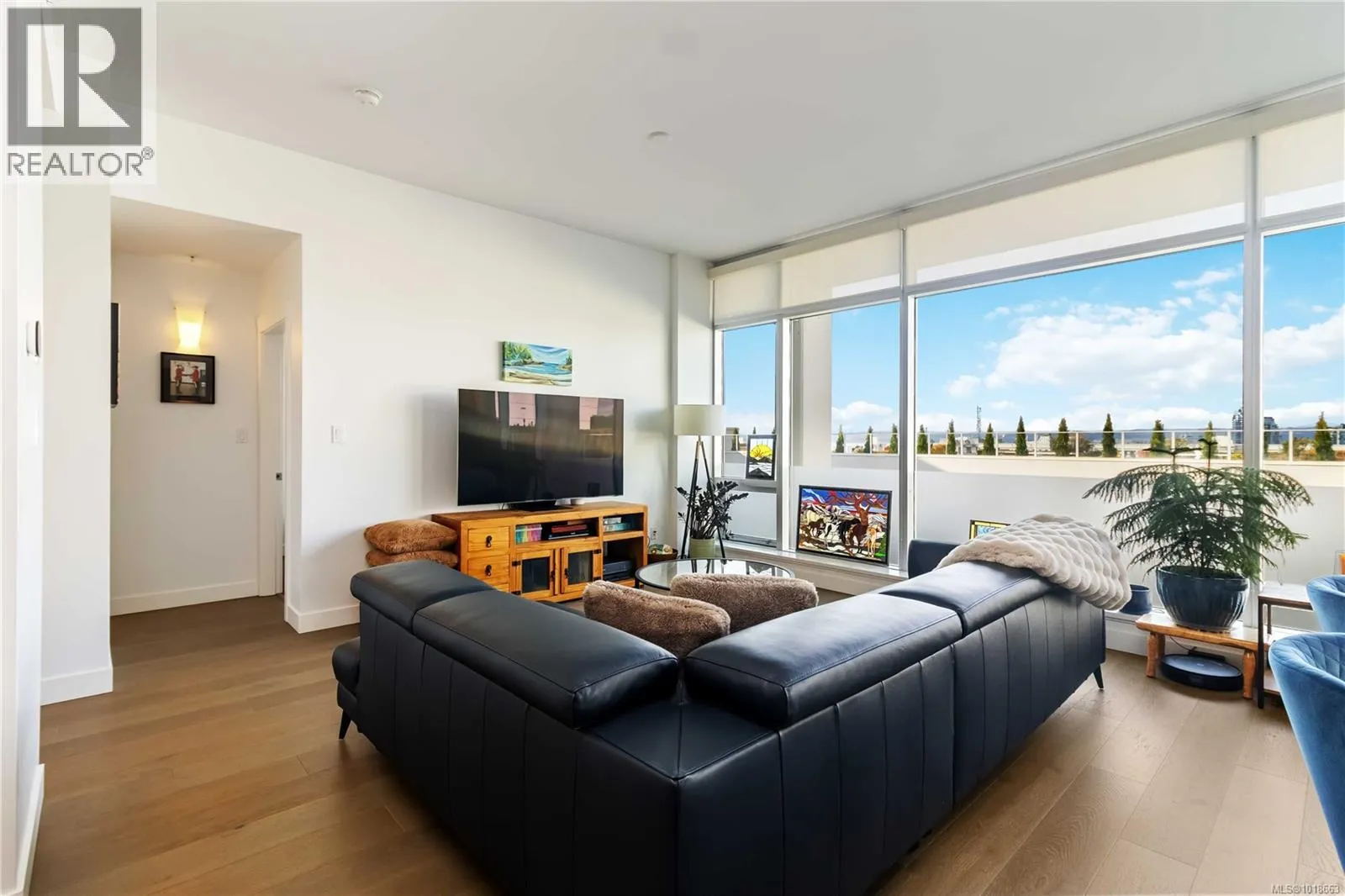 Experience luxury living in this stunning 2 bedroom + DEN Sub-Penthouse Suite at The Hudson. Located in Victoriaâs historic downtown, this 1,312 sq. ft. home features 10-ft ceilings, in-suite laundry, heated bathroom floors, ample storage, and a geothermal HVAC system. Entertain in the open-concept kitchen, which boasts quartz countertops, a large island with a wine fridge, high-end Miele appliances including a 5-burner gas range, a double door fridge/freezer, a built-in Espresso Machine, a dual-purpose microwave/convection oven, and a separate oven unit. Take in the beautiful sunset and mountain views over Sooke on your west-facing covered patio or on the spectacular 14,000+ sqft rooftop patio with lounges and a BBQ area. The professionally managed building offers secure parking with 2 PARKING SPOTS, a car wash area, extra storage, and is pet, family, and rental friendly. Steps from Victoriaâs best restaurants, shops, entertainment, transit, Chinatown, and the beautiful Inner Harbour. (id:27476)