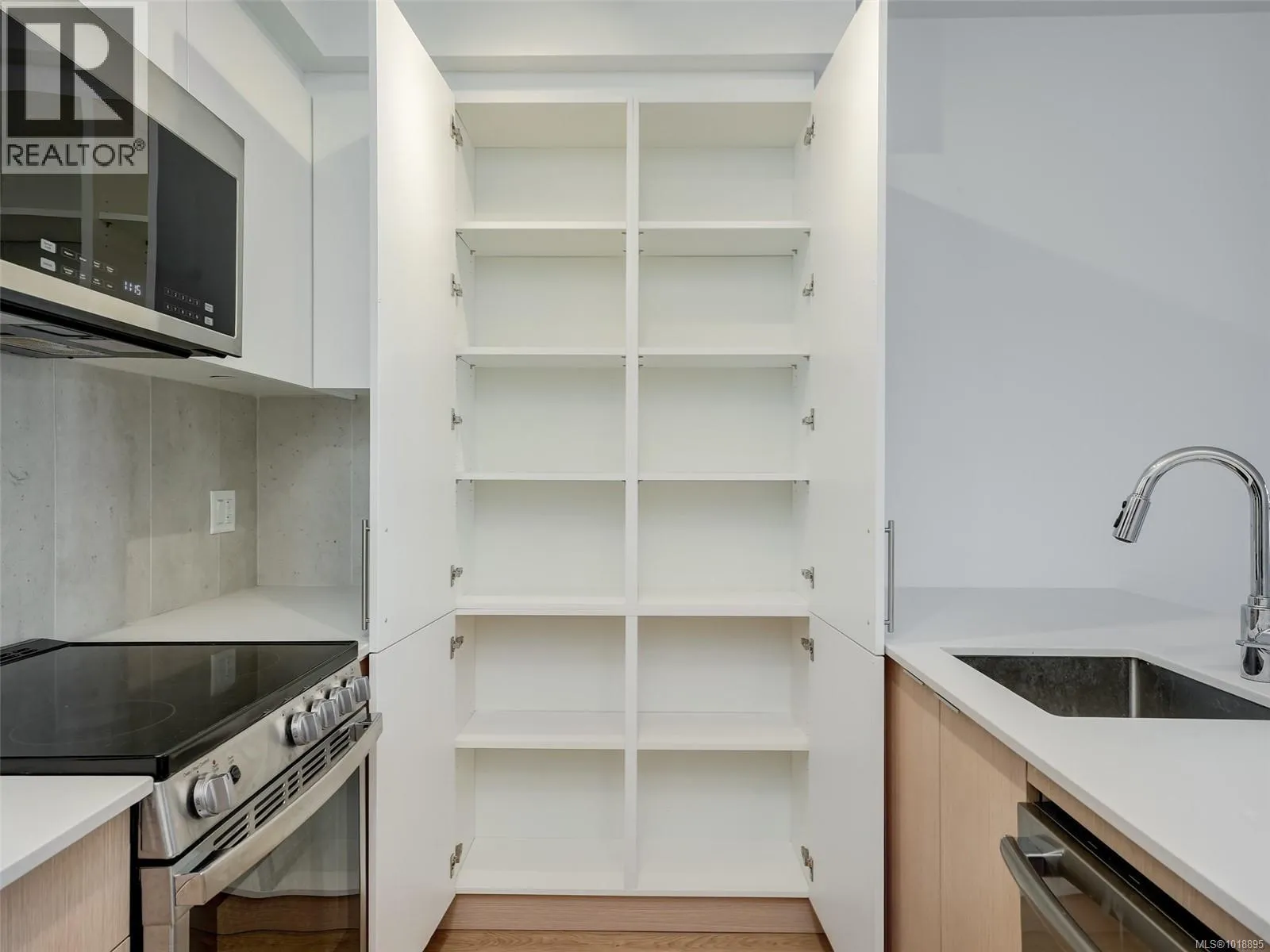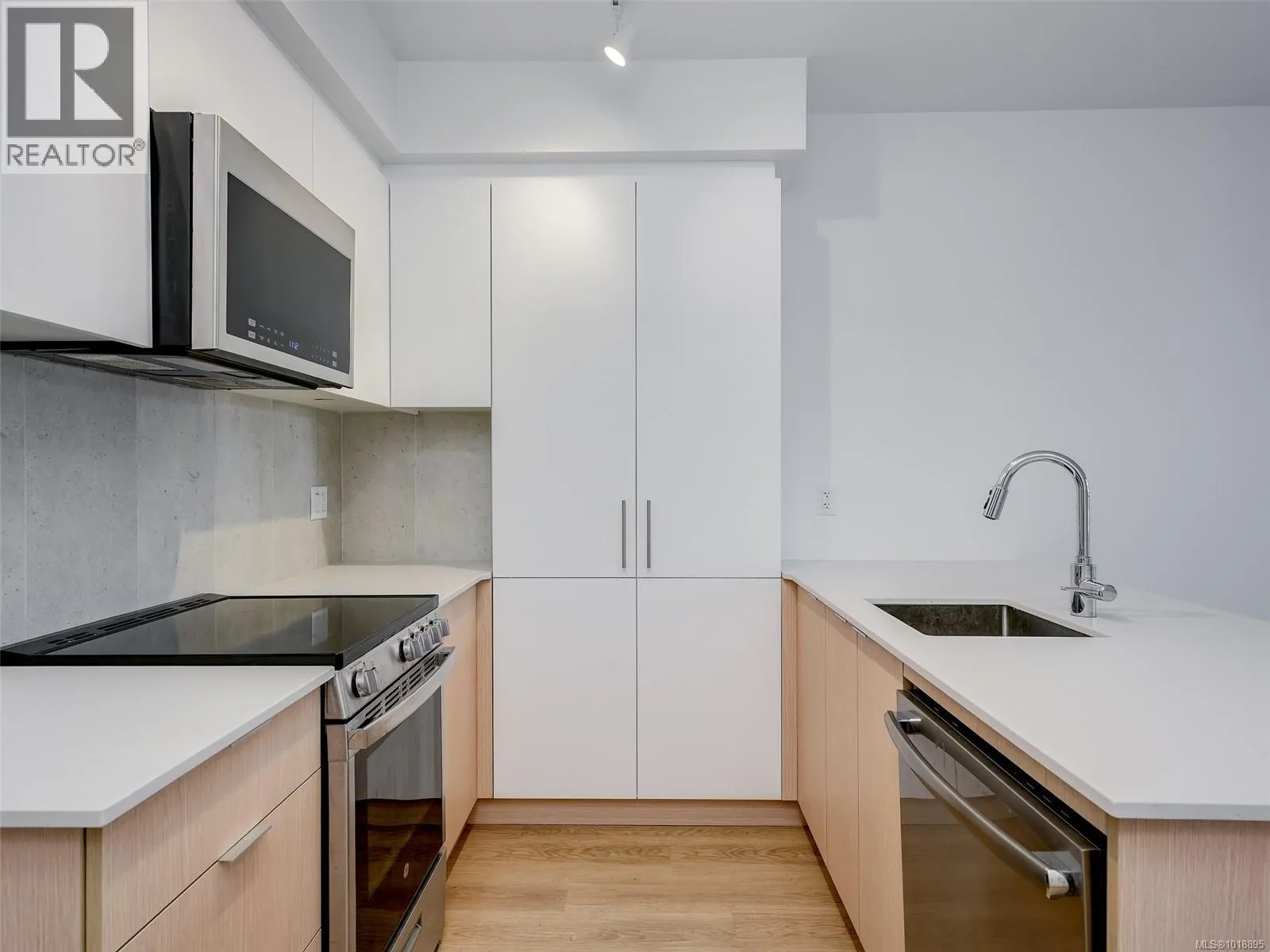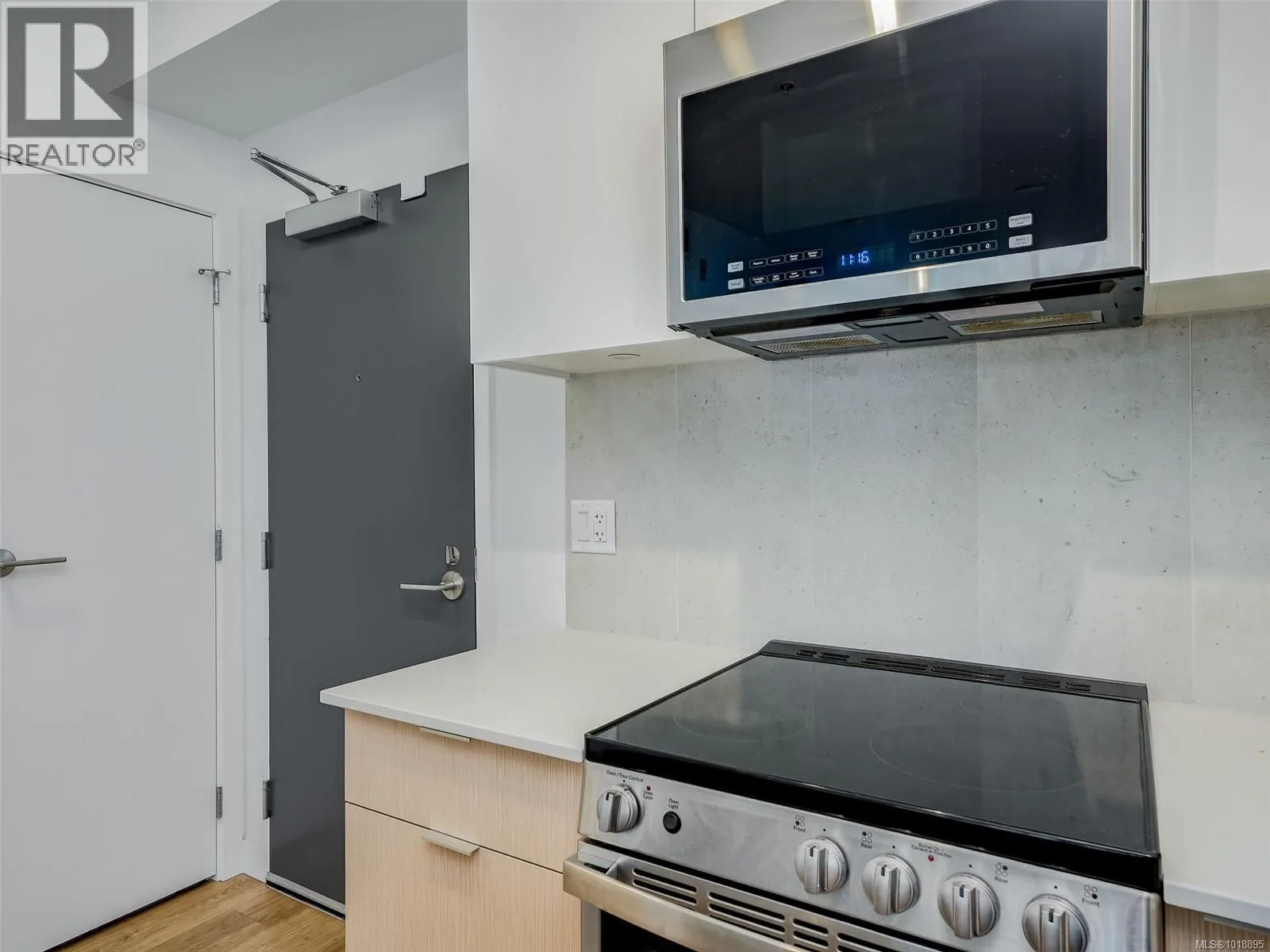 CONVENIENT DOWNTOWN LIVING AT HAVEN. Beautifully crafted by Chard Developments, this modern 1 bedroom, 1 bathroom condo is just minutes to all amenities and you will love the walkability. Classic finishes, streamline kitchen with full height pantry, wood grain cabinets and stainless-steel appliances and counter seating with an open floor plan to the living room that leads out to a balcony. The primary bedroom filled with natural light features a generous size walk-in closet. Every day convenience with in suite laundry, separate storage area, and secure underground parking. Complex amenities include a community room children's playground area, exclusive Ebike and care share program. The close proximity to shopping, restaurants, bus routes can't be beat. Pet friendly and smoke free complex. (id:27476)