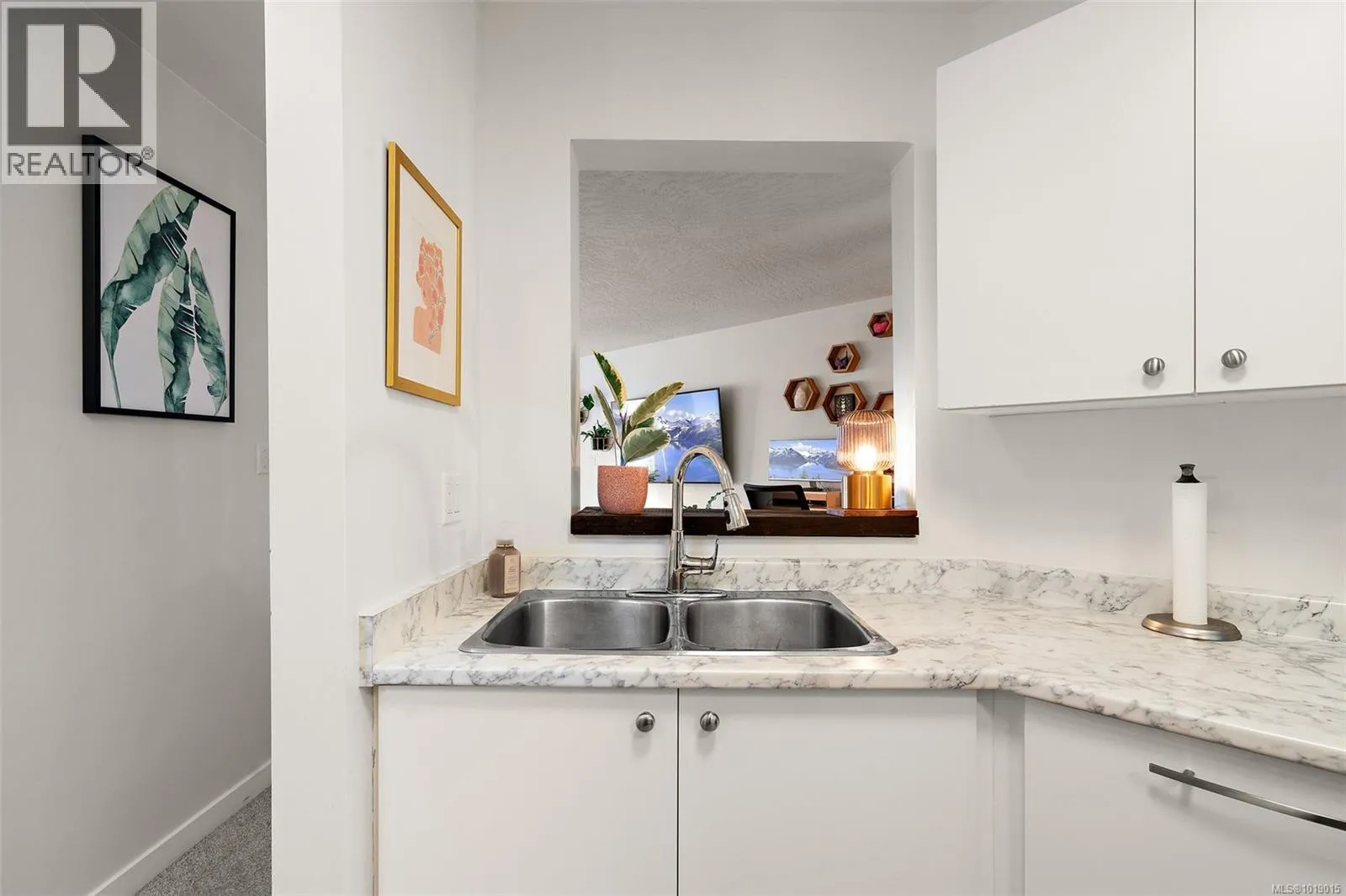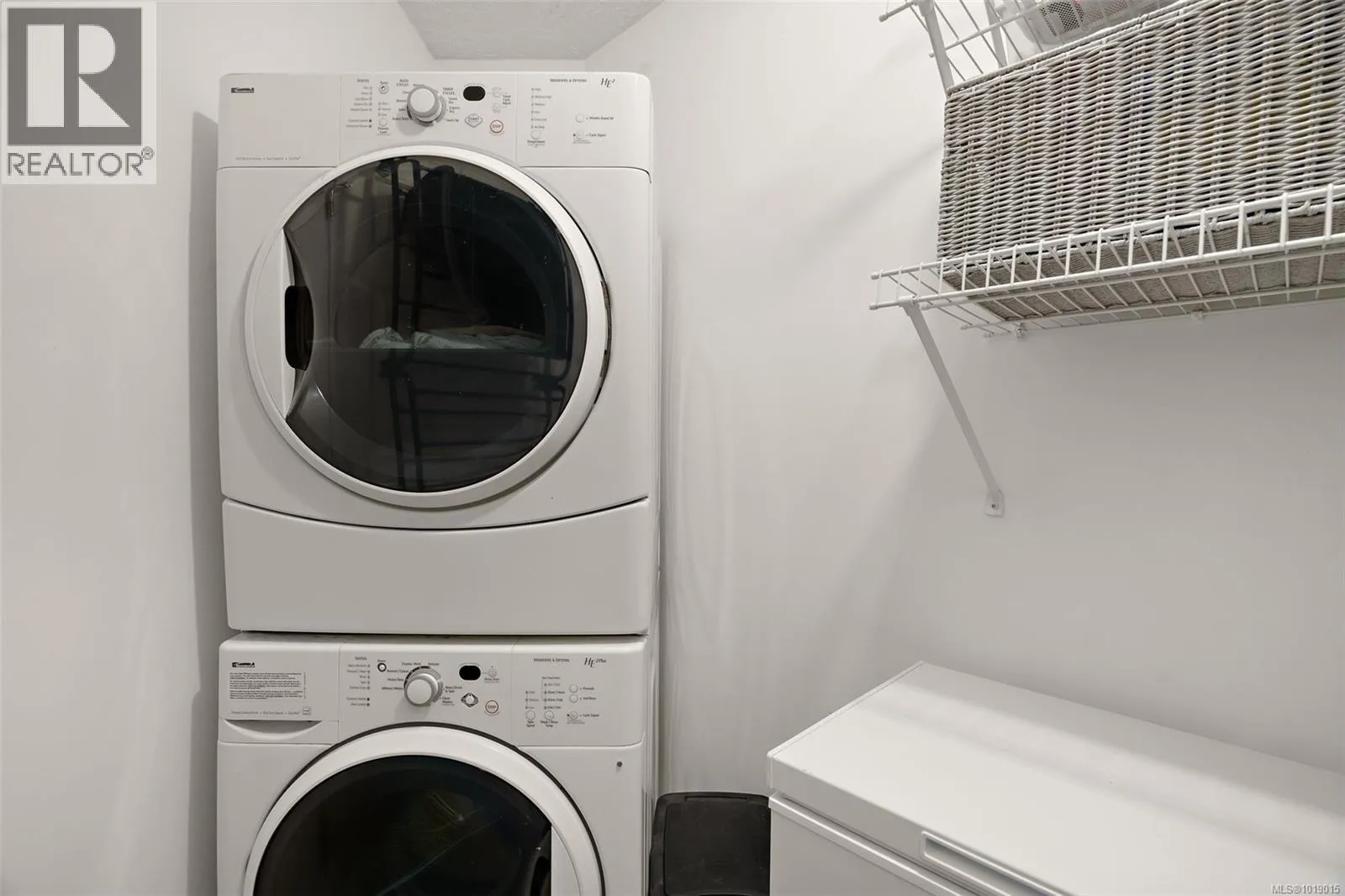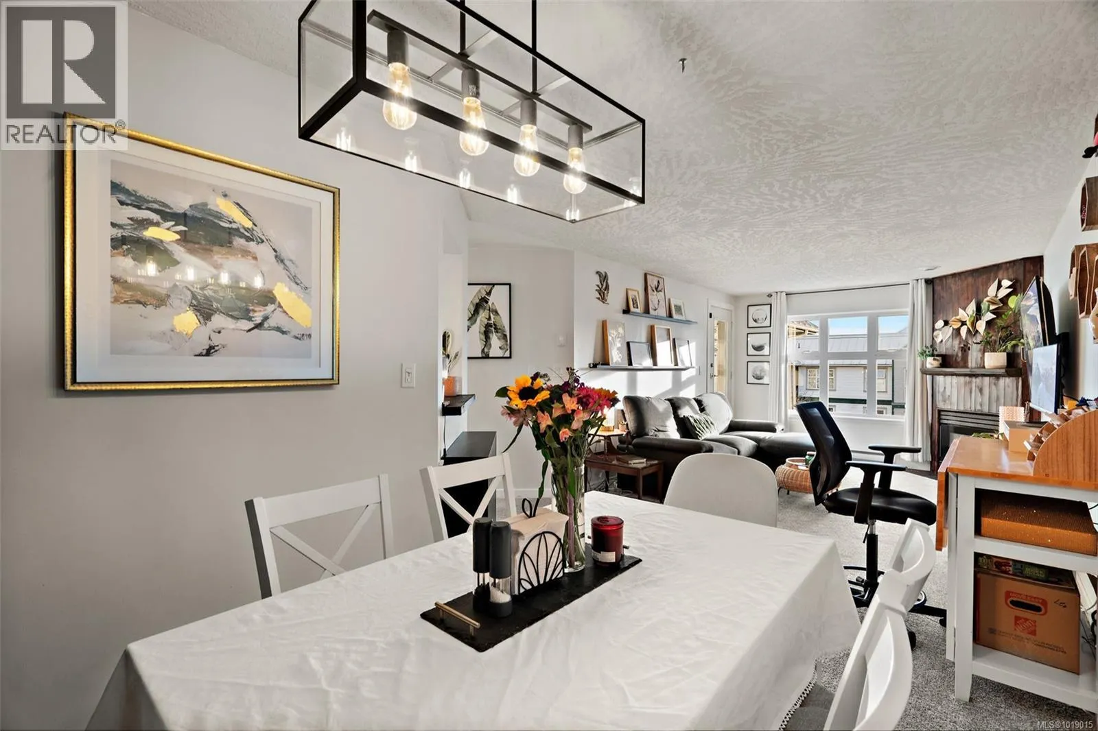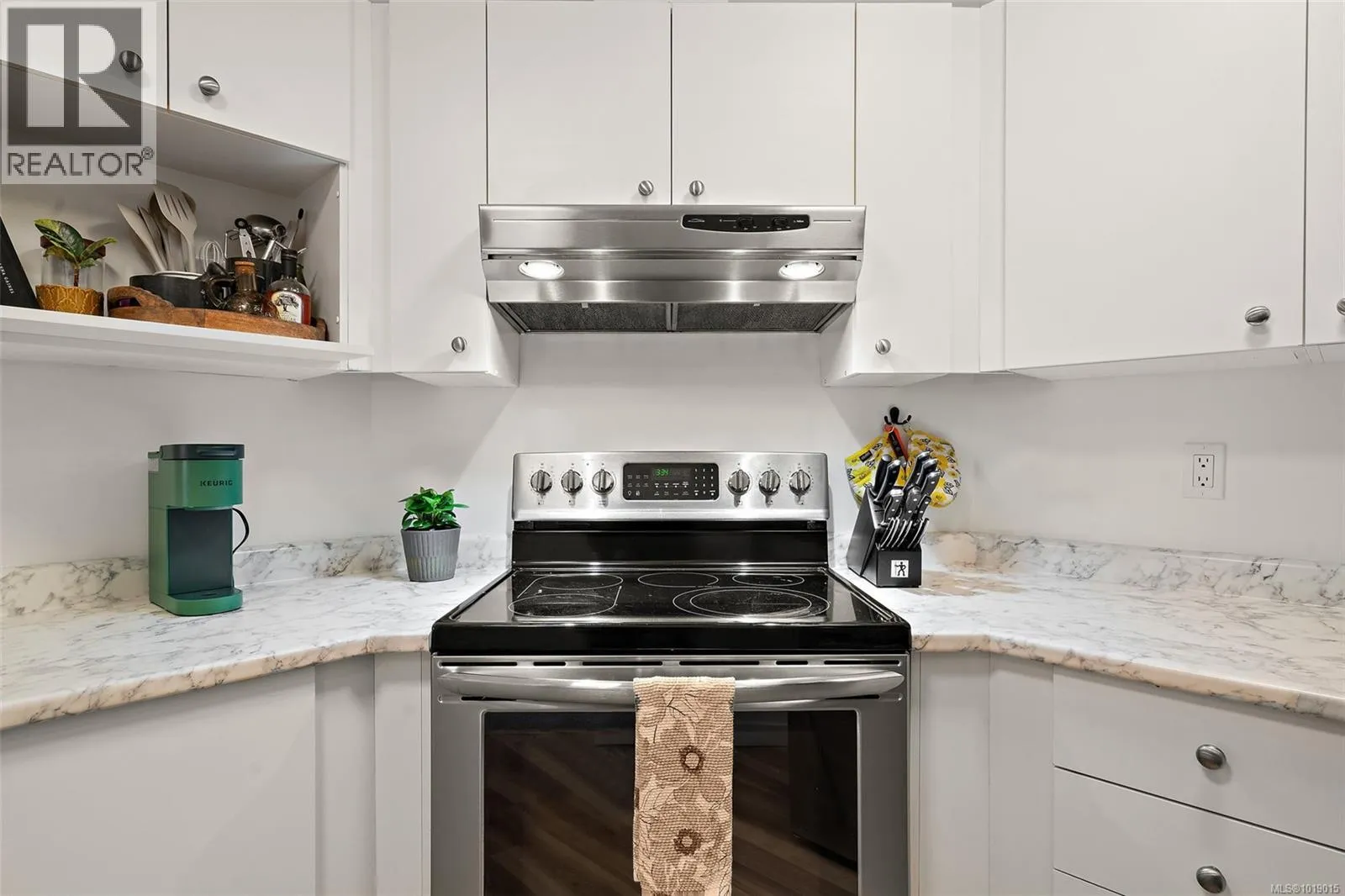 Tastefully updated 2 bed, 2 bath top-floor condo offering over 1,000 sqft of bright living space where the layout separates the living space from the bedrooms. Welcoming entrance with skylight and new luxury vinyl flooring. Kitchen refreshed in 2025 with new countertops, flooring, paint, lighting, plus fridge & dishwasher (2023). Main bath fully renovated (2023); ensuite updated (2024) with new vanity, toilet, tile, and lighting. Features Wi-Fi Mysa thermostats, August smart lock, and some dimmable/smart light switches. Cozy living room with gas fireplace opens to a sunny southwest-facing balcony with two access points overlooking a quiet courtyard. Freshly painted in-suite laundry room with shelving, secure underground parking near elevator and nearby separate storage. Pet-friendly (2 cats or dogs). Close to the ocean for walking or biking along the Gorge, on bus route, nearby shops & parks. Well-managed building with nearly $1M contingency fund. Move-in ready! (id:27476)
