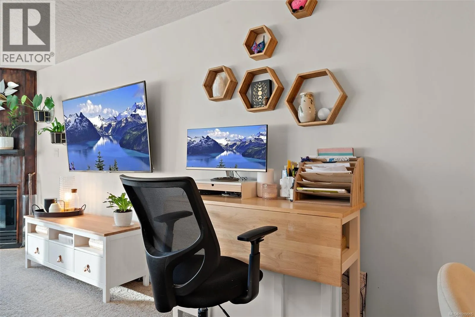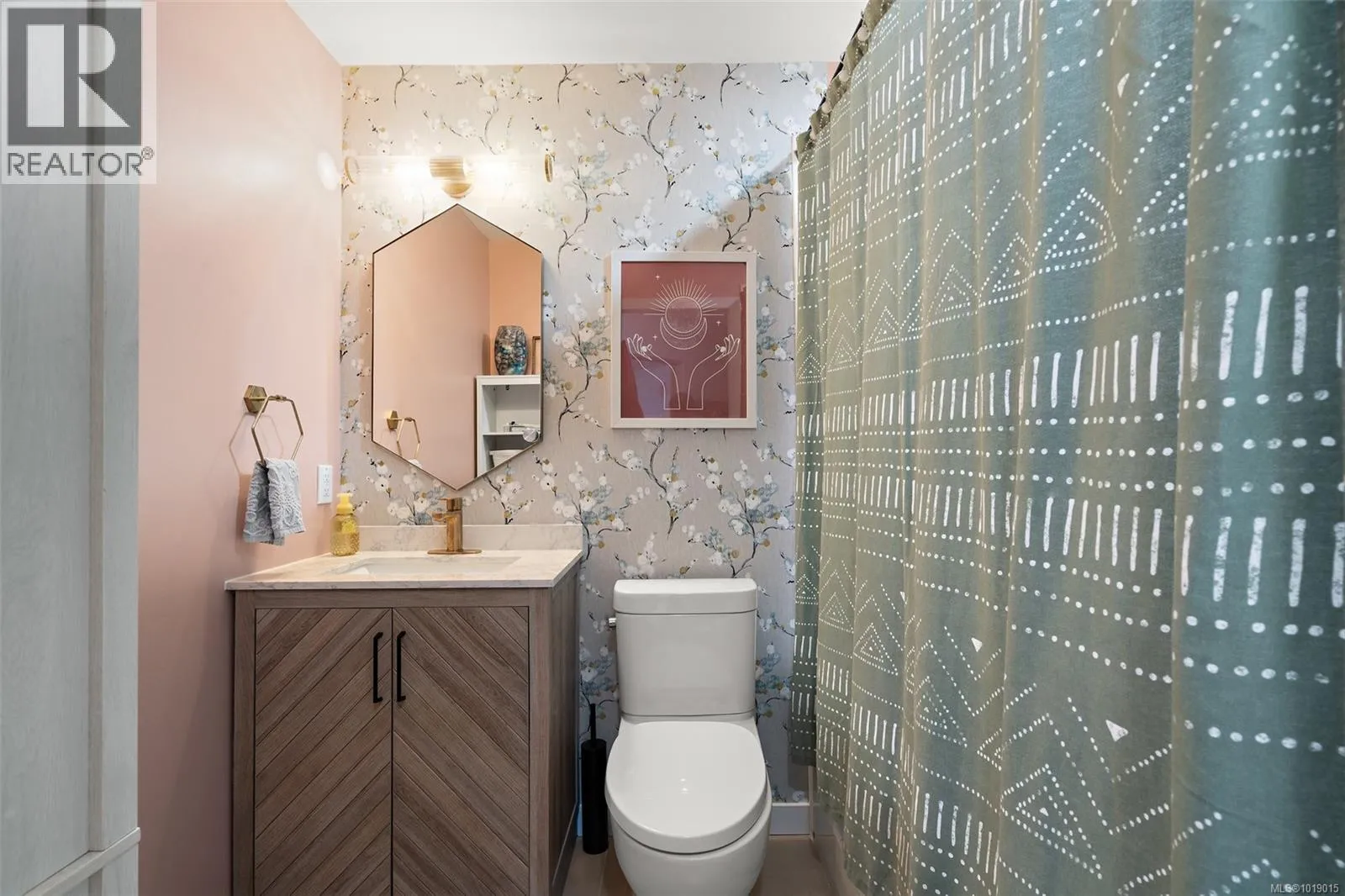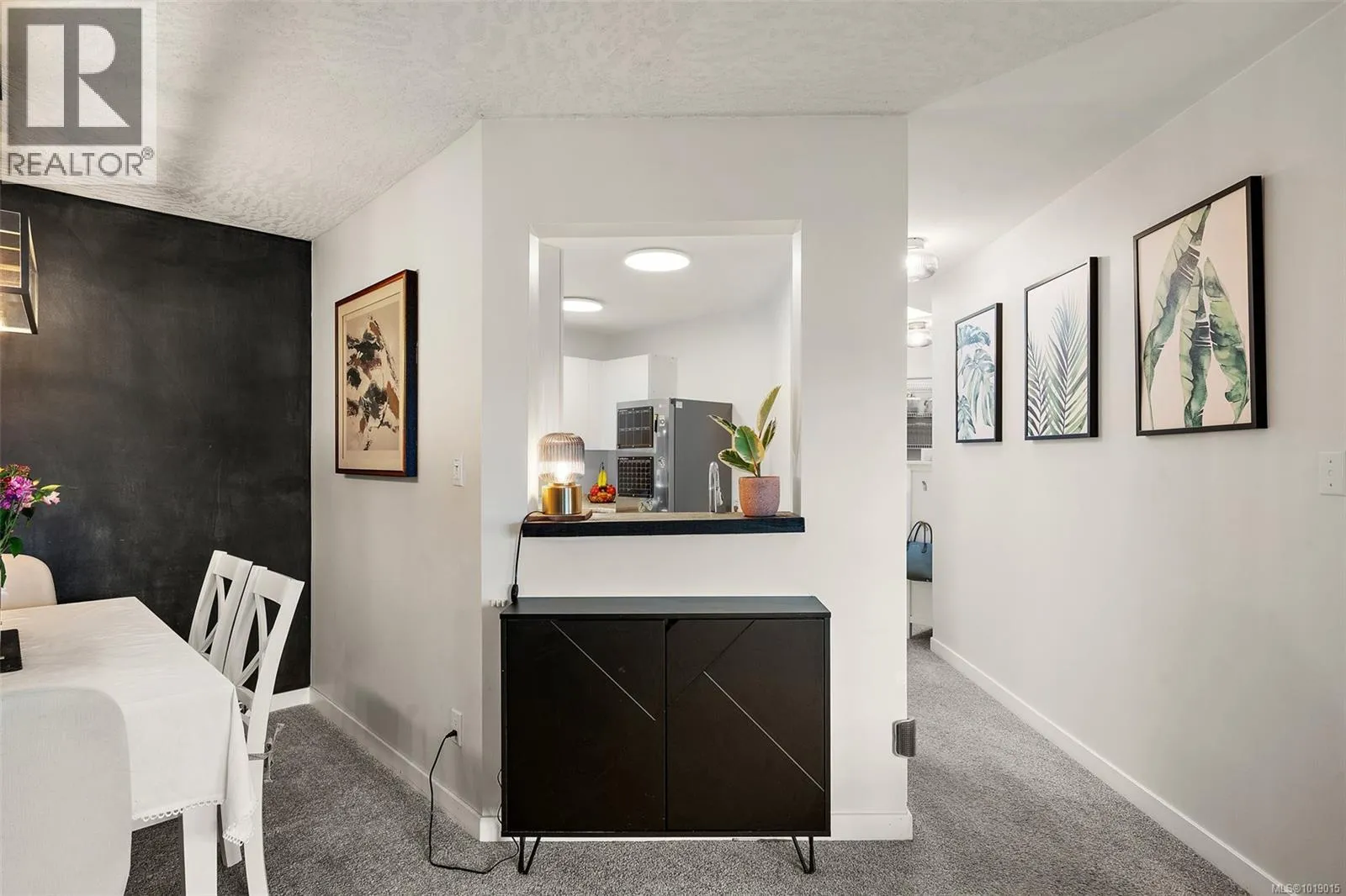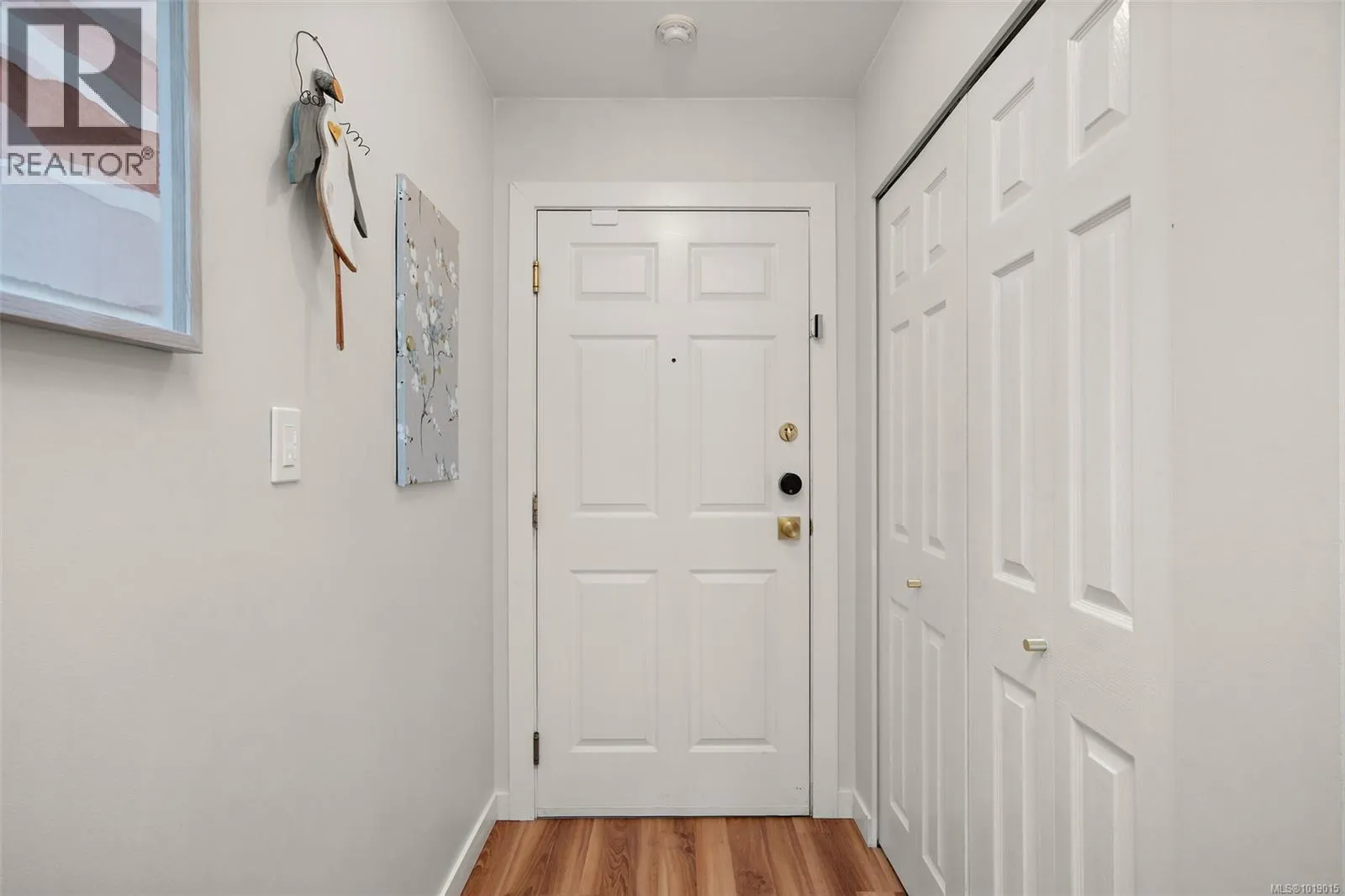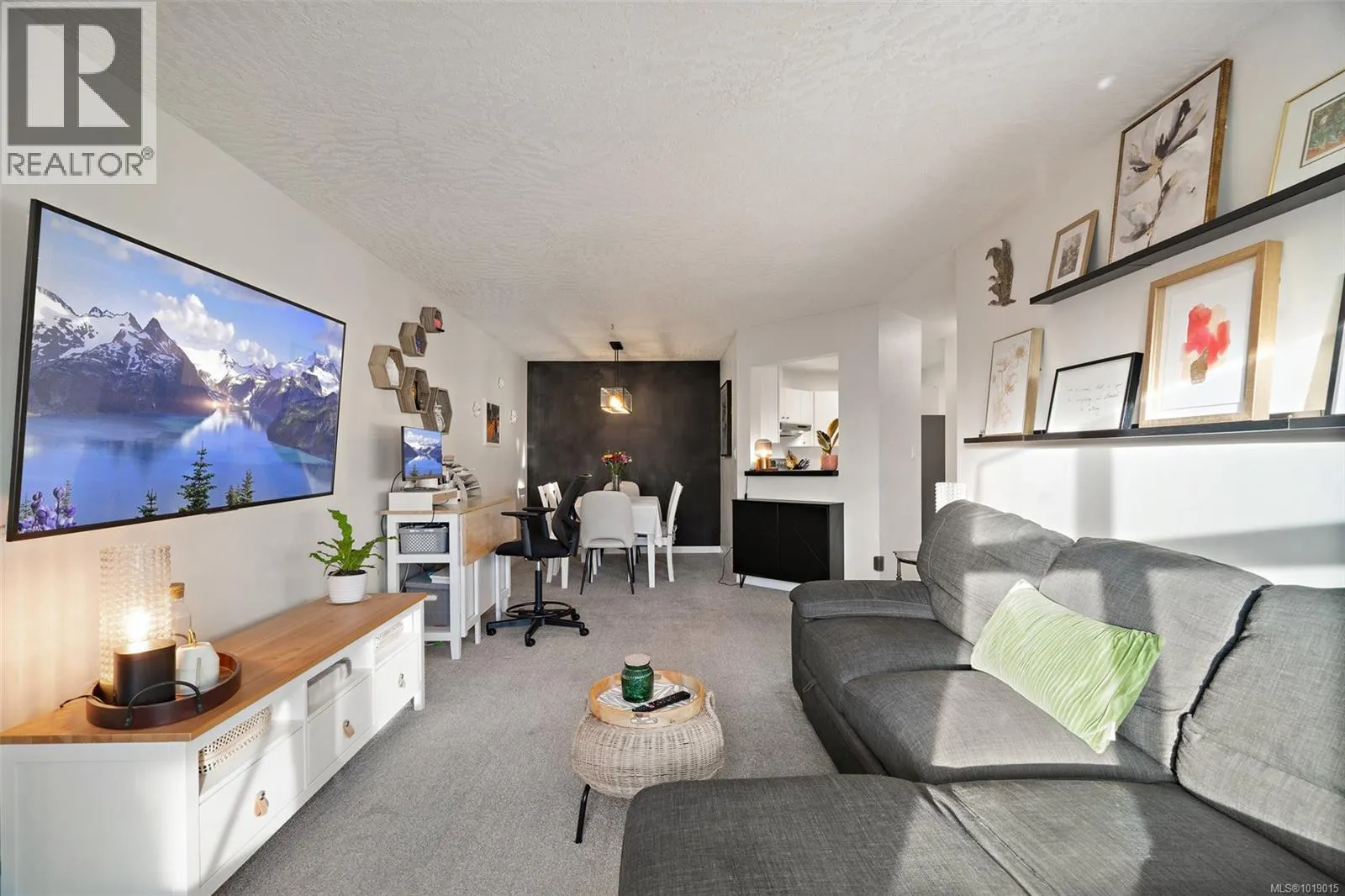 Tastefully updated 2 bed, 2 bath top-floor condo offering over 1,000 sqft of bright living space where the layout separates the living space from the bedrooms. Welcoming entrance with skylight and new luxury vinyl flooring. Kitchen refreshed in 2025 with new countertops, flooring, paint, lighting, plus fridge & dishwasher (2023). Main bath fully renovated (2023); ensuite updated (2024) with new vanity, toilet, tile, and lighting. Features Wi-Fi Mysa thermostats, August smart lock, and some dimmable/smart light switches. Cozy living room with gas fireplace opens to a sunny southwest-facing balcony with two access points overlooking a quiet courtyard. Freshly painted in-suite laundry room with shelving, secure underground parking near elevator and nearby separate storage. Pet-friendly (2 cats or dogs). Close to the ocean for walking or biking along the Gorge, on bus route, nearby shops & parks. Well-managed building with nearly $1M contingency fund. Move-in ready! (id:27476)