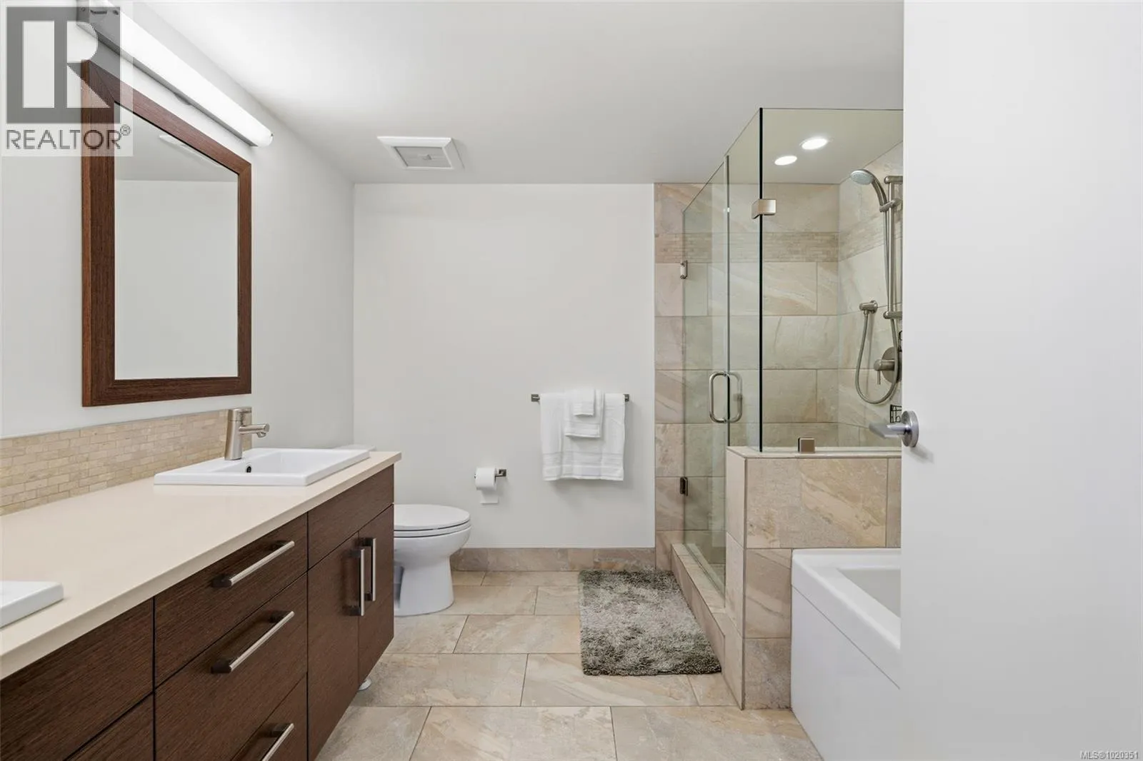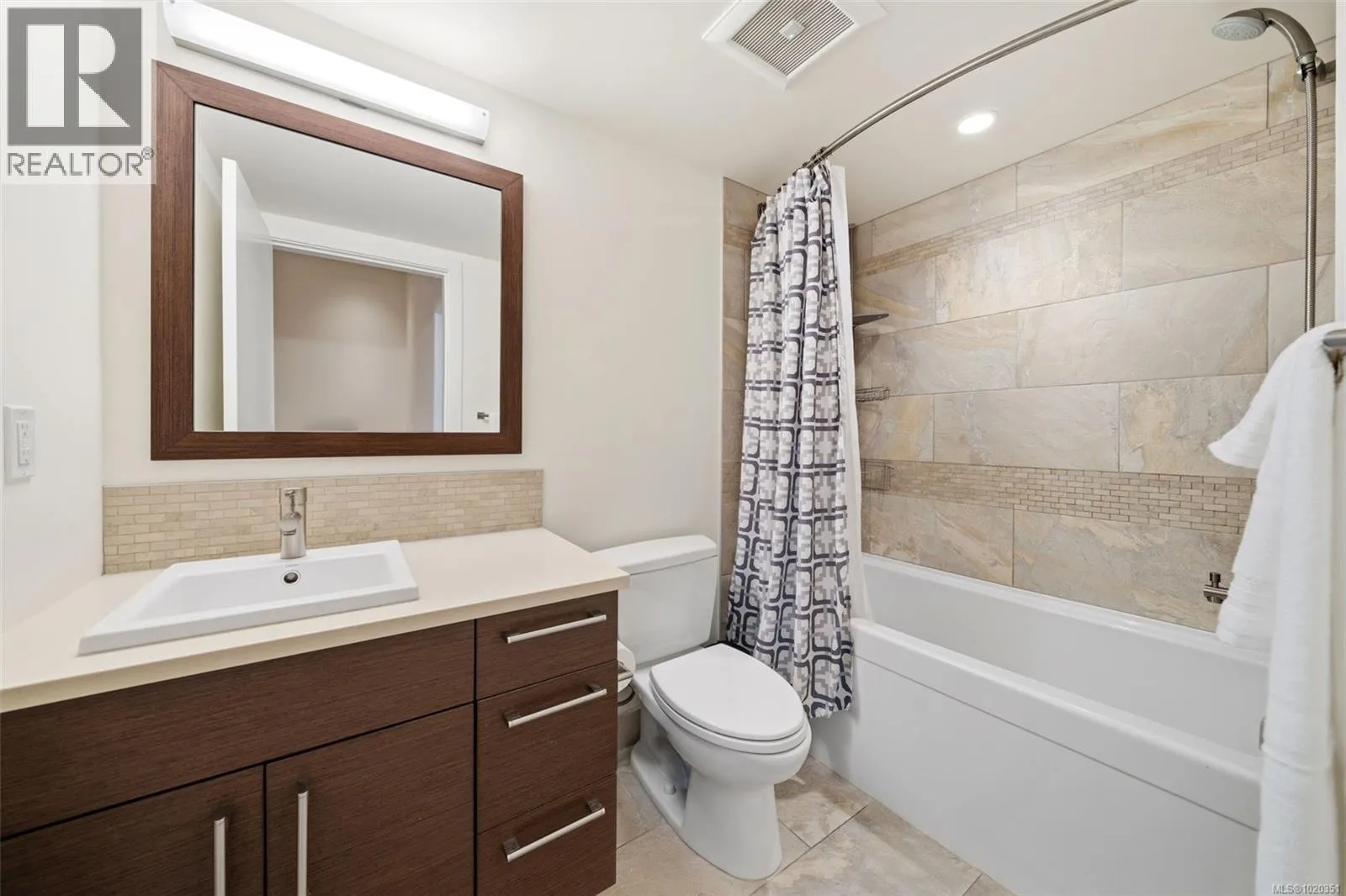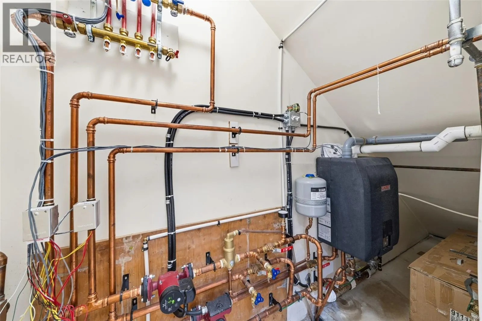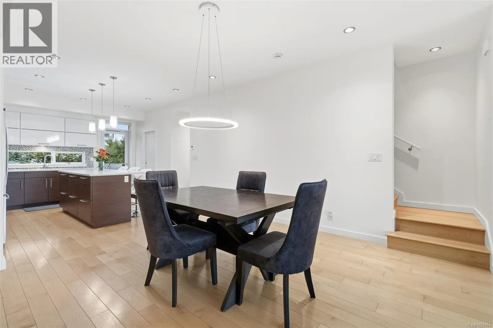 O/H Sat Nov 22nd 1-3 pm Steps from the Gorge Waterway, this vibrant south-facing townhome is close to parks, the Galloping Goose, shops, transit, and nearby schools and Montessori options. With over 2,000 sq ft, this one-owner home is freshly painted and well maintained, offering in-floor hot-water radiant heat, beautiful tile and hardwood, and construction engineered to extreme earthquake standards. The entry level includes a garage and a flexible bedroom/family room beside a full bath, opening to a generous private patio. The main level features two decks, a powder room, and an open-concept kitchen with high-end cabinets, gas range, large island, and abundant storage, flowing into the dining area and a bright living room with fireplace. Upstairs are two inviting bedrooms, including a vaulted primary with a luxe ensuite and built-ins. Schedule your visit today! (id:27476)