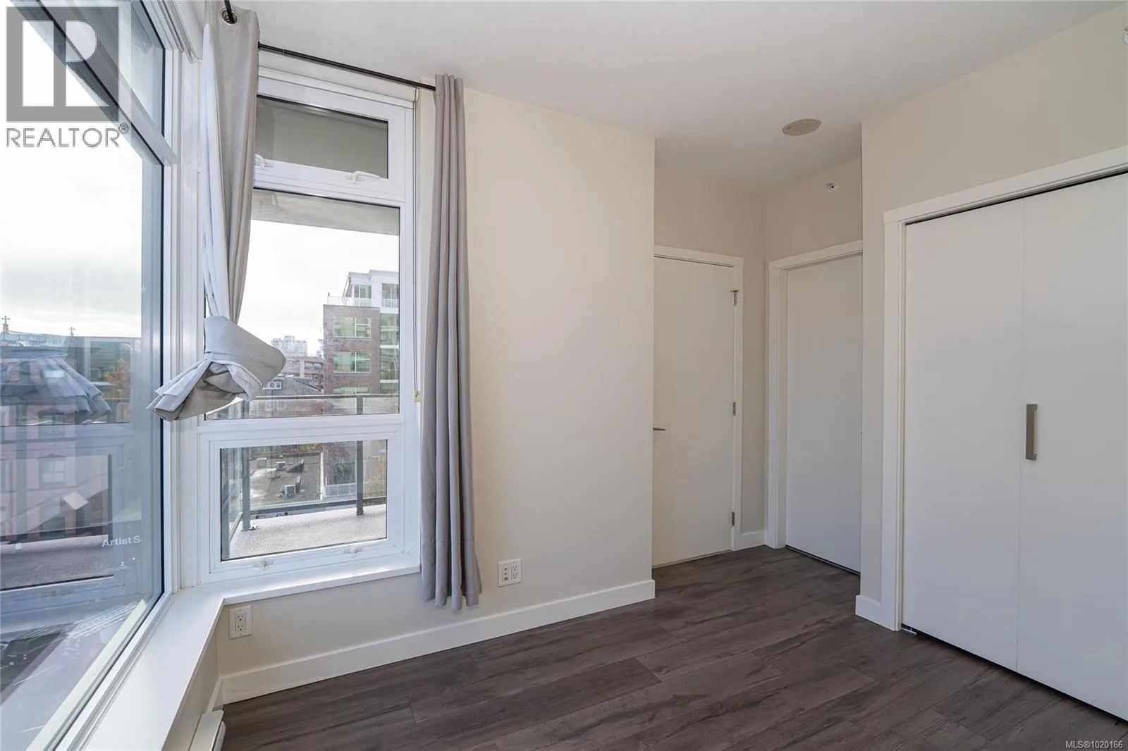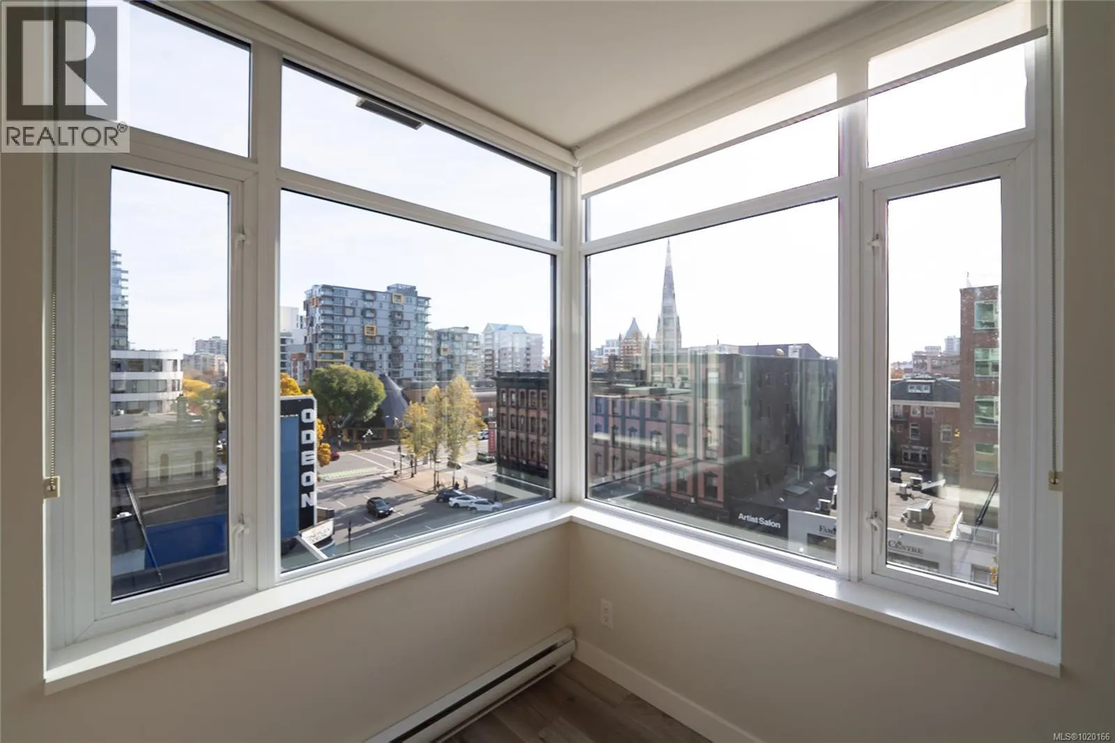 Welcome to The Era, a distinguished residence built by Concert Properties and ideally situated in the heart of downtown Victoria. Renowned for its exceptional quality and timeless design, Era exemplifies modern urban living at its finest. This bright corner unit has been refreshed with new paint and flooring and features a spacious grand foyer, two bedrooms, and two full bathrooms. Enjoy stunning 6th-floor views of downtown Victoria and abundant natural light from the southeast exposure. Complete with one secure parking stall and a storage locker, this immaculate, move-in-ready home offers the perfect blend of comfort, style, and location. (id:27476)
