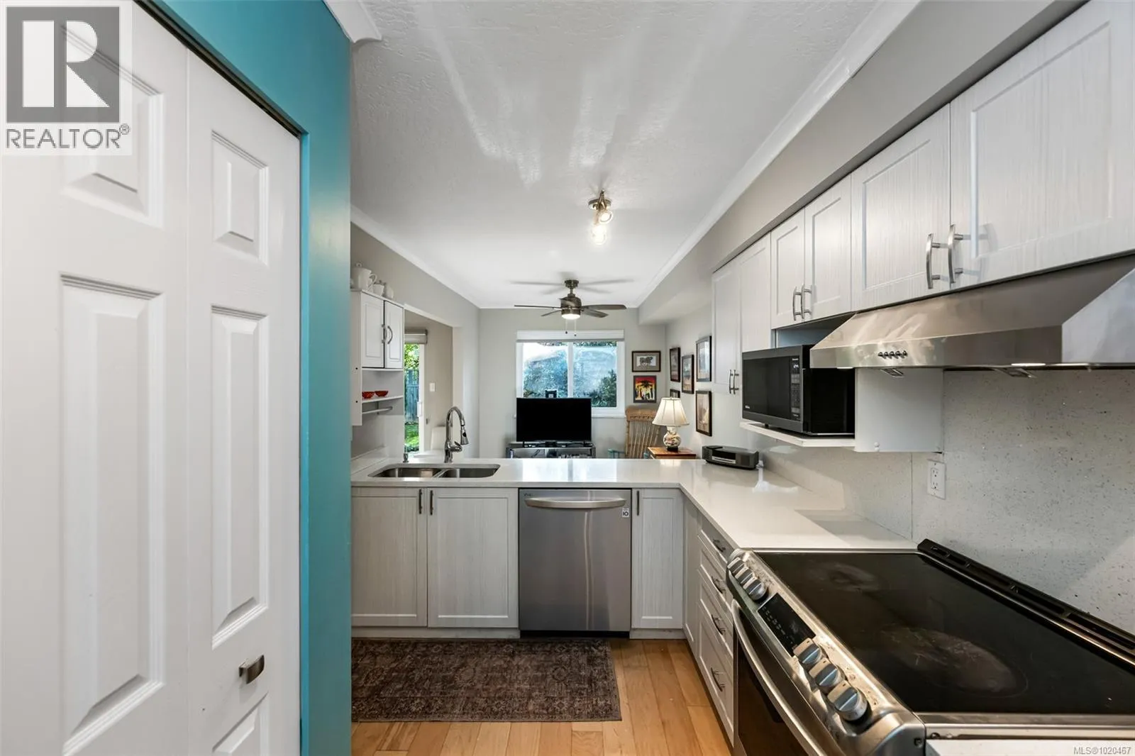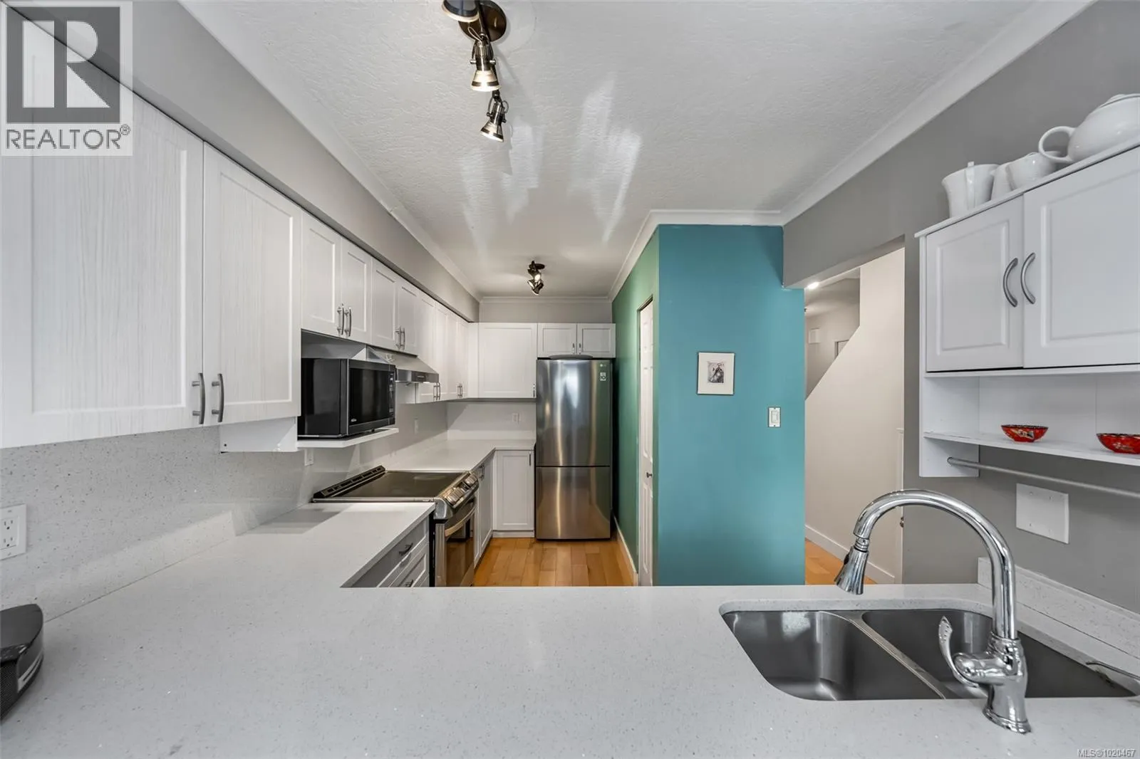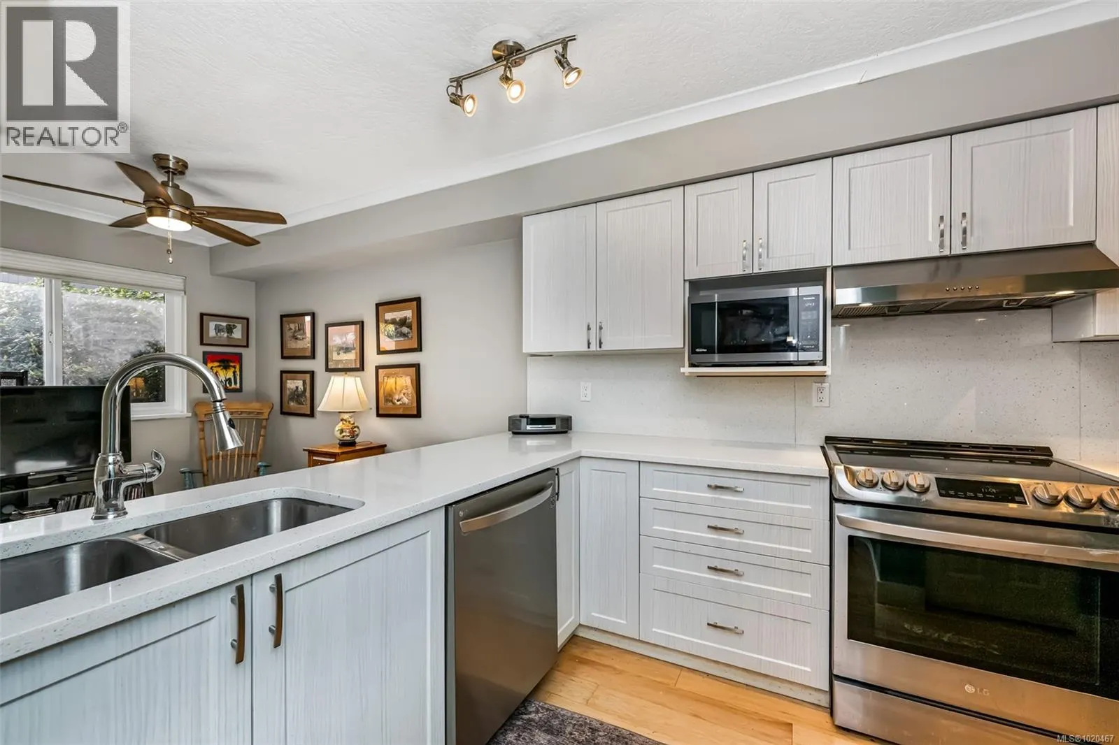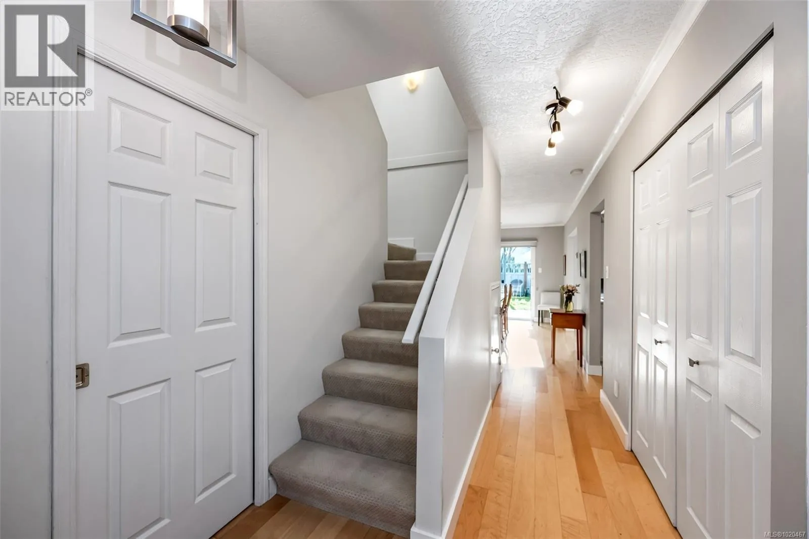 Fantastic 3 bedroom, 3 bathroom 1582 sq ft Townhome centrally located; close to Urban Grocer, Christies Pub and everyone's favourite, Goodside Pastries. Set back from the road this 2 level home is quiet and peaceful with a glorious south facing patio and garden. You enter into the cozy living room with new electric fireplace (gas available) and vaulted ceiling. Beyond the living room is the open kitchen, family room and dining room with patio doors to the back patio. Also on the main floor you will find the large laundry room/mudroom just off the garage & 2 piece bathroom. Upstairs are three bedrooms (primary with WI closet and ensuite (heated floors)) and a guest bathroom. The current owners have tastefully renovated their home over the years - new maple hardwood, new carpeting and paint throughout; new cupboards, quartz counters, backsplash and stainless appliances in the kitchen; bathrooms with porcelain tile. Homes in this 6 unit strata don't come available very often so make haste (id:27476)