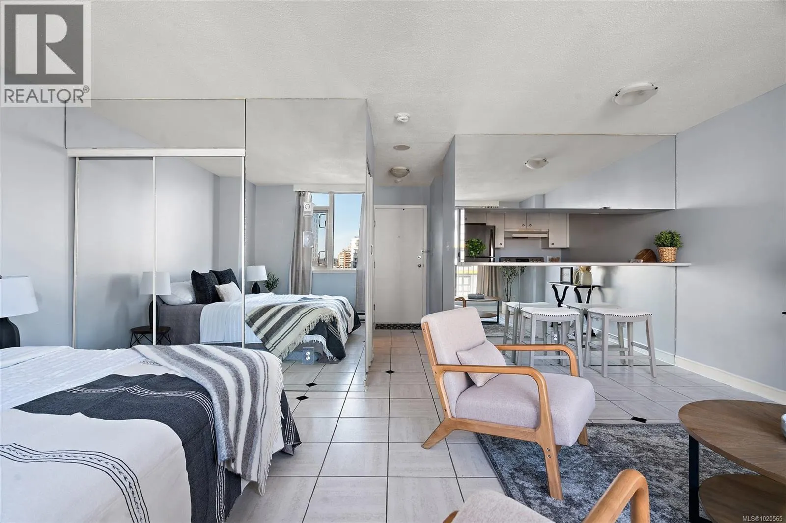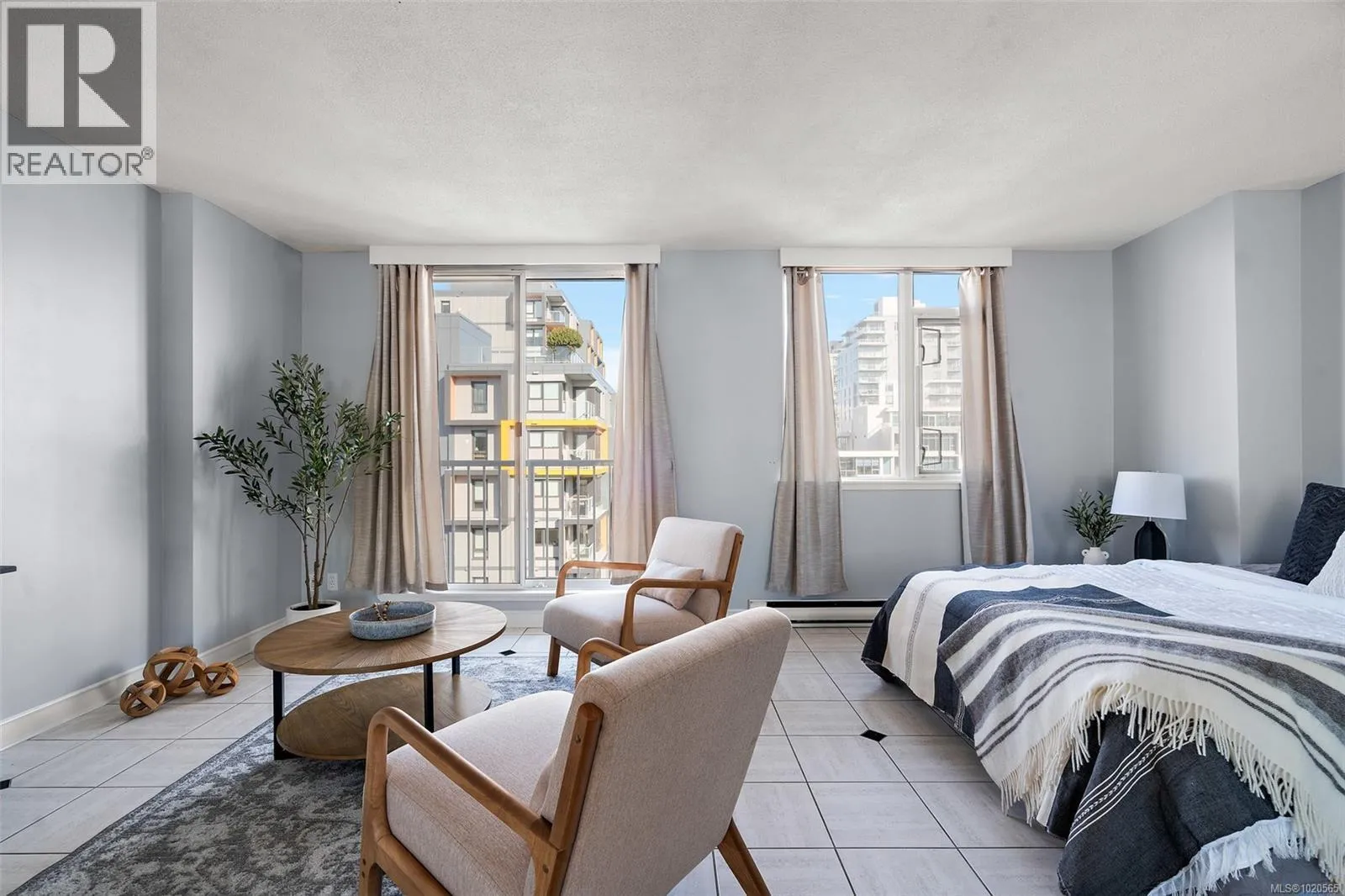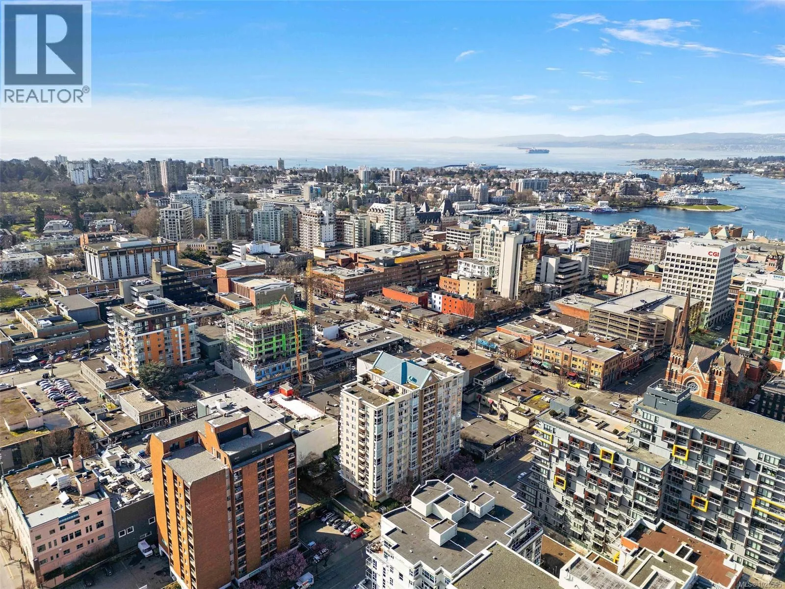 URBAN LIVING AT ITS BEST in this high floor suite at The Metropolitan, a solid steel and concrete building in the heart of downtown Victoria. This bright and easy care bachelor suite features tile floors throughout, in suite laundry, and a sliding glass door with a Juliet balcony that showcases beautiful city views. Step outside and enjoy everything downtown has to offer. Trendy cafes, restaurants, the famous Inner Harbour, historic Old Town, and Beacon Hill Park are all just a short walk away. This building is rentable and pet friendly, allowing one small dog up to 20 lbs, a cat, or other caged pets. Secure bike storage is included, and there is potential to rent underground parking which adds extra convenience. Perfect for first time buyers or investors, this suite is a smart opportunity in a very desirable location! (id:27476)
