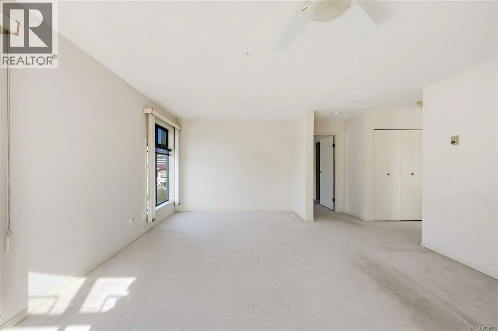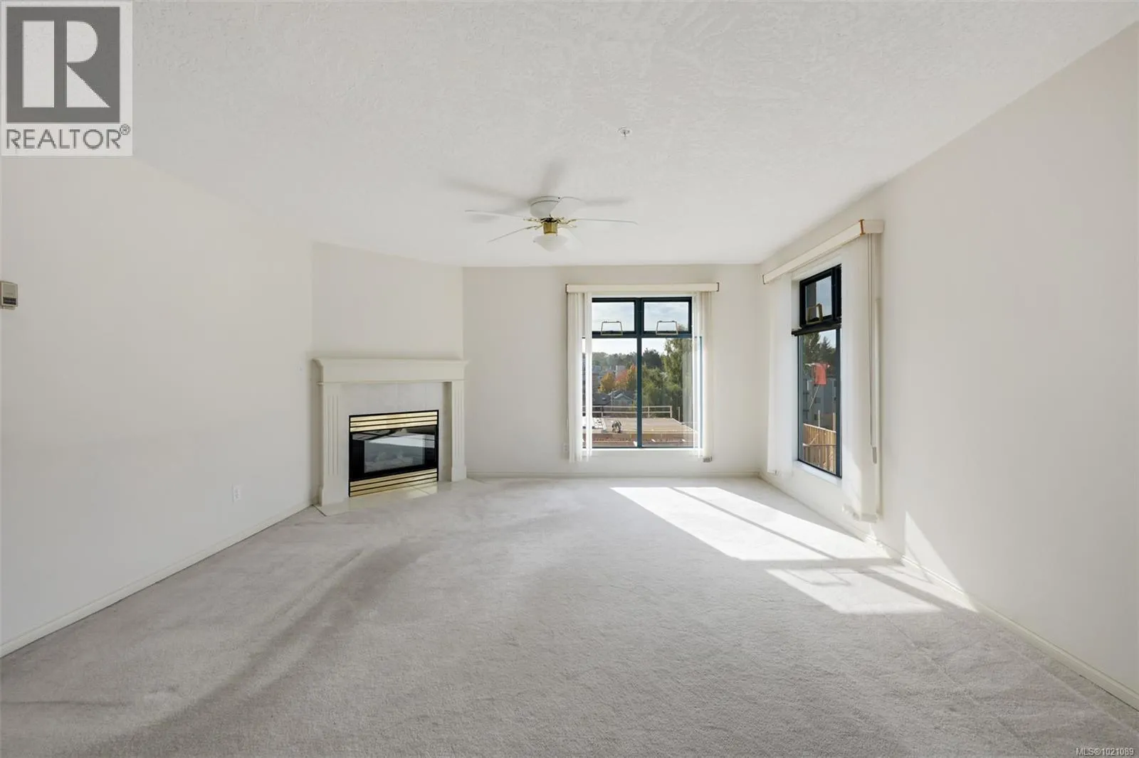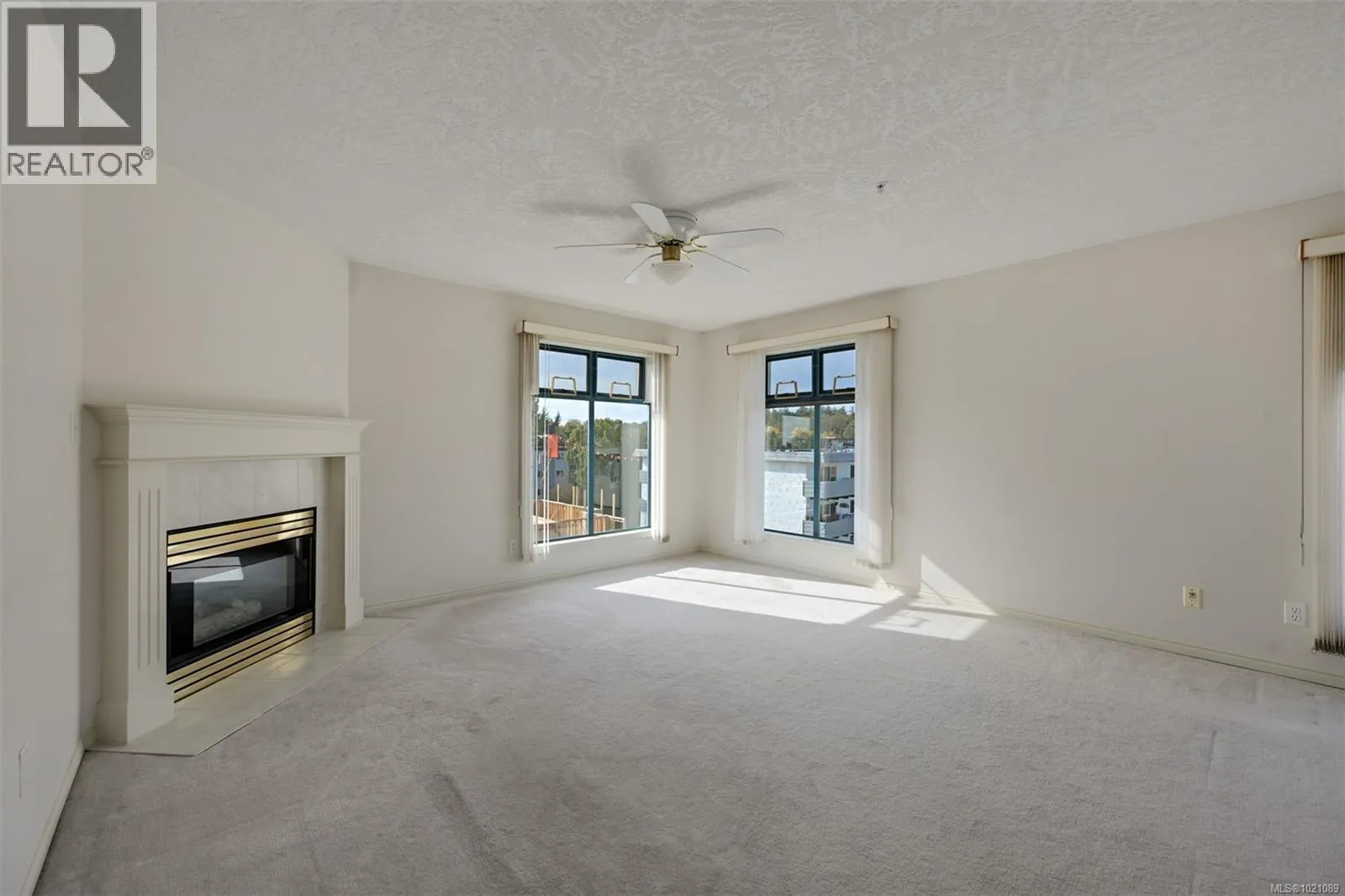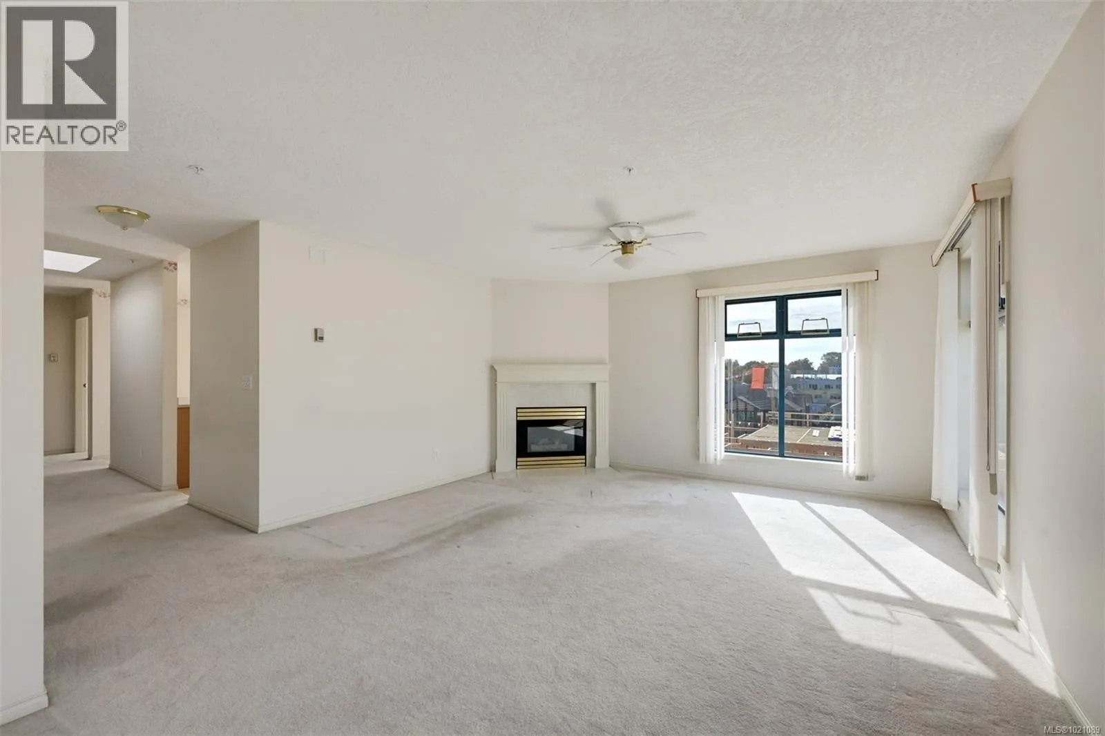 This beautiful Top Floor Corner Unit condo, right in the heart of Cook Street Village, is a unique opportunity to purchase within steps to every amenity, in one of the most vibrant, walkable areas of the city. This is a wonderful option for the mature Buyer who is looking to downsize or invest in a solid rental (one occupant must be 55+). This 2 bedroom, two full bathroom unit has been well cared for and pride of ownership is evident as soon as you enter the home. In the large living room, enjoy cozy evenings with your gas fireplace, room for entertaining, and a dining area fit for a large dining table. The kitchen has lots of cabinets and natural light and access to a deck. The spacious primary bedroom features an ensuite bathroom and 2 closets. Storage is plentiful with closets in the home, along with a separate storage locker. Enjoy the convenience of in-suite laundry & in-floor radiant heating (incl in strata fees). Located within walking distance of the Ocean, Dallas Road and Beacon Hill park, there is also Secure parking & pets welcome! All data approximate. (id:27476)