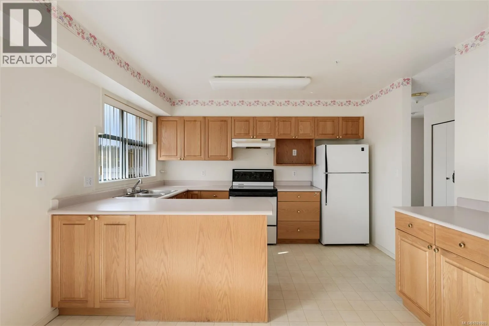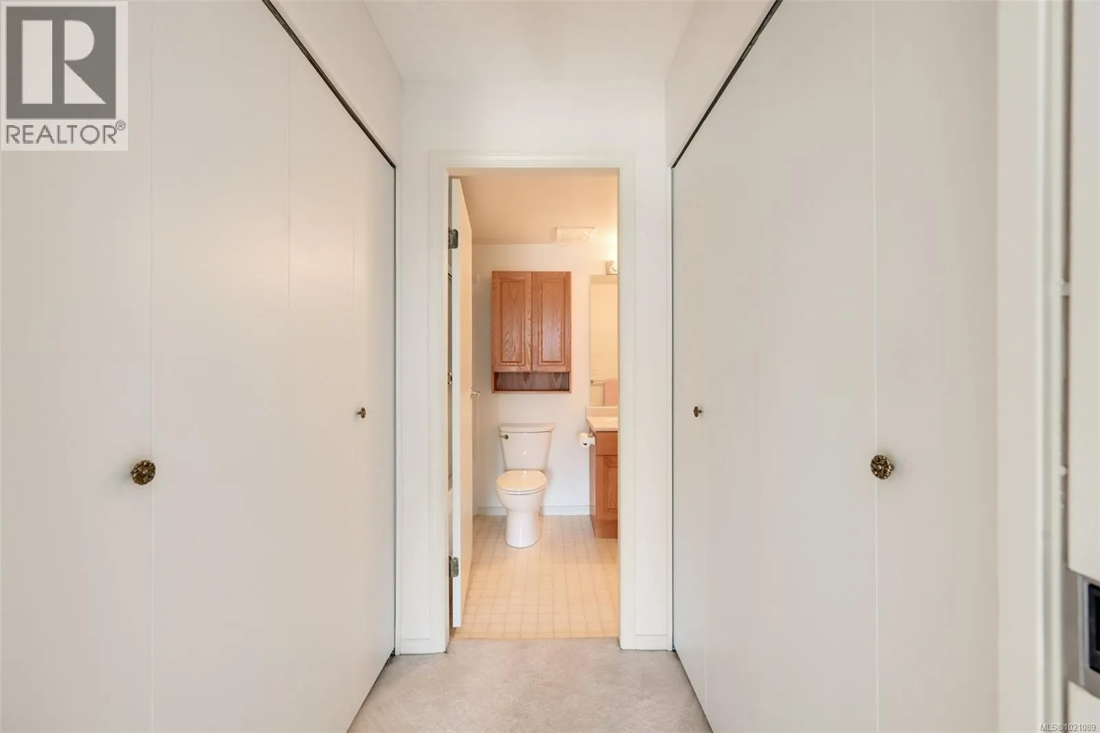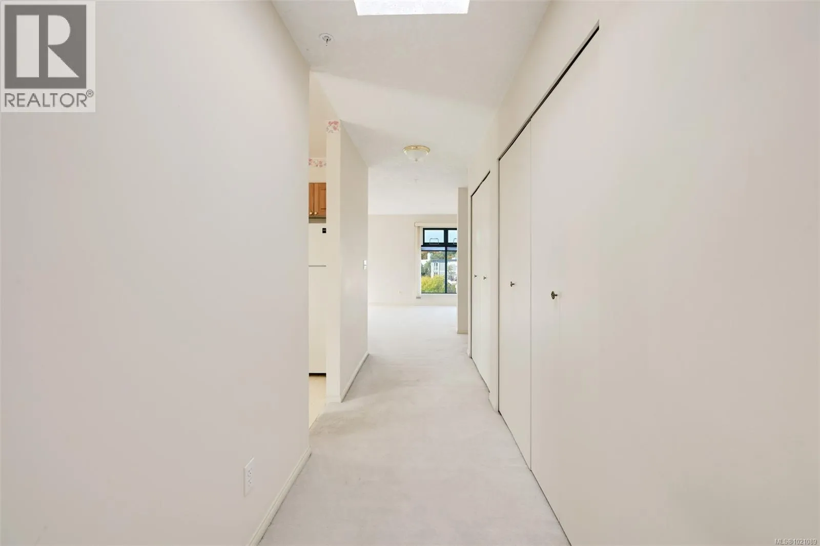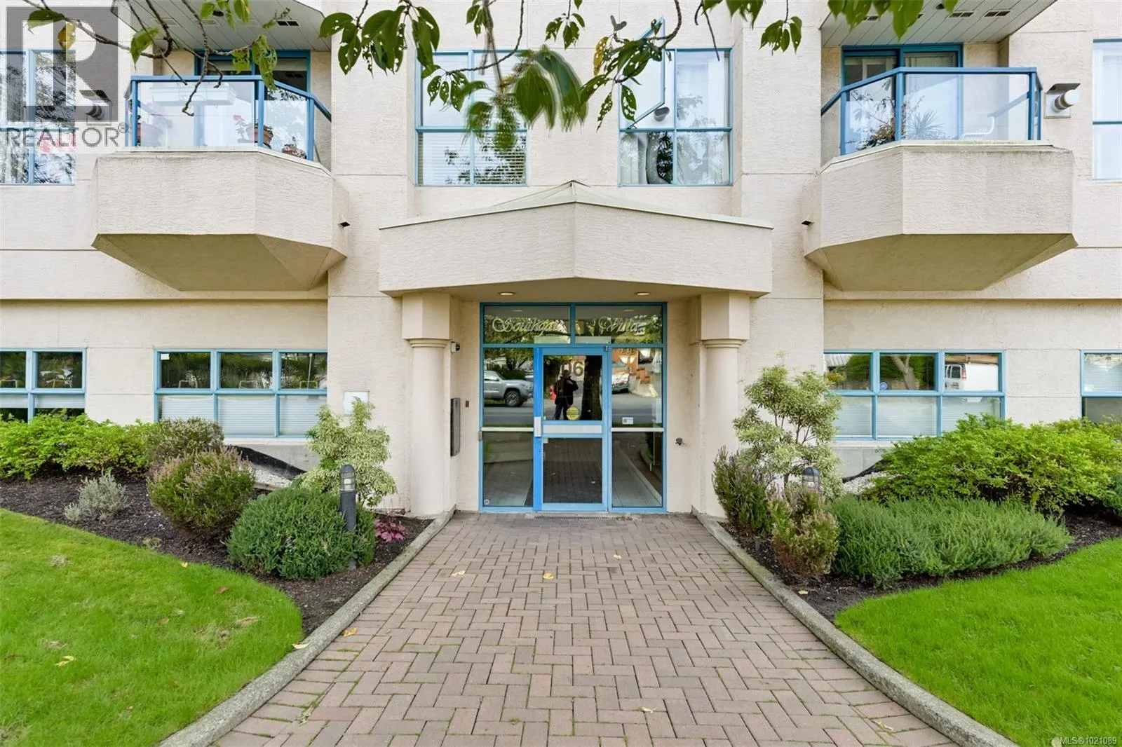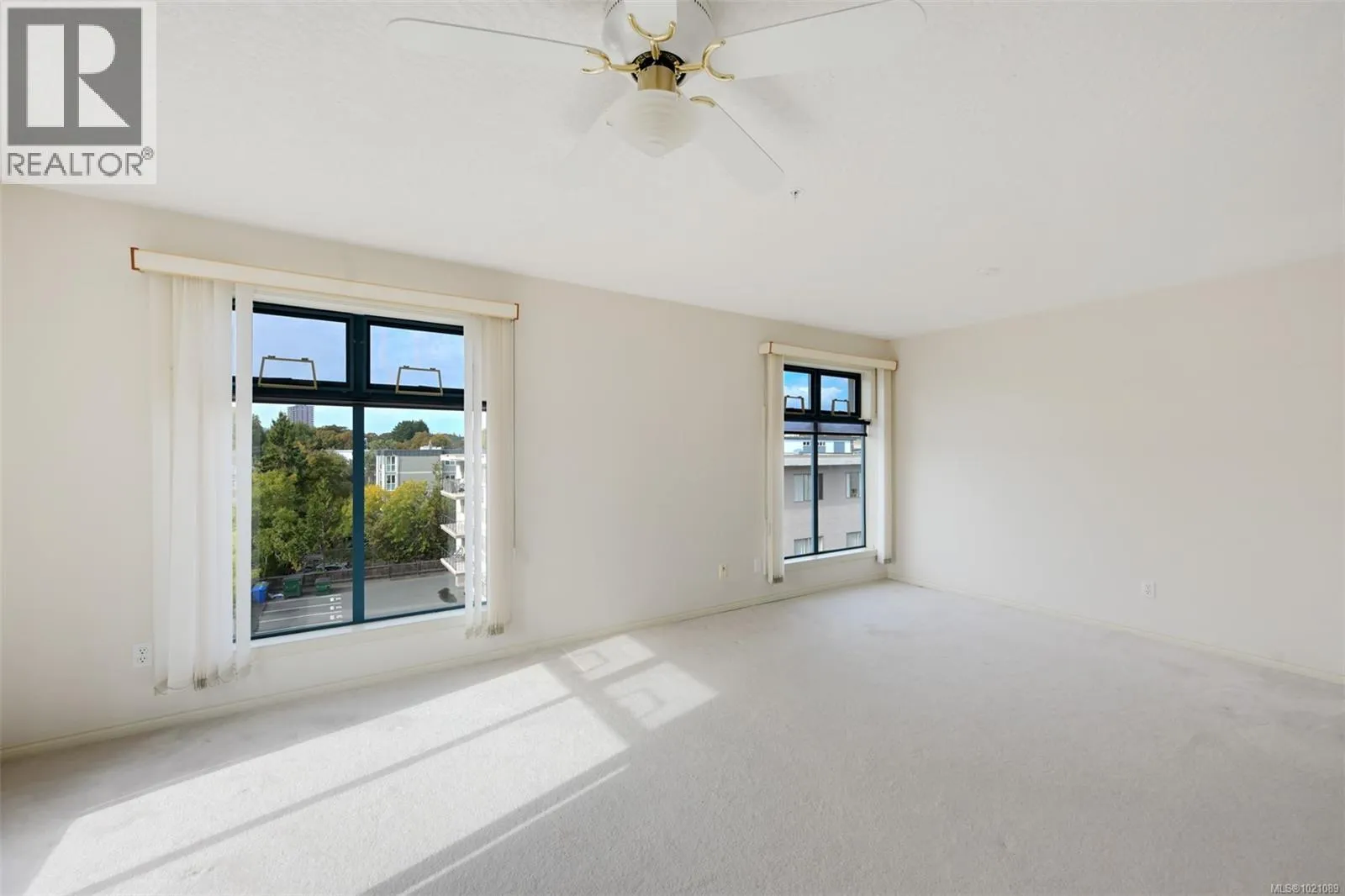 This beautiful Top Floor Corner Unit condo, right in the heart of Cook Street Village, is a unique opportunity to purchase within steps to every amenity, in one of the most vibrant, walkable areas of the city. This is a wonderful option for the mature Buyer who is looking to downsize or invest in a solid rental (one occupant must be 55+). This 2 bedroom, two full bathroom unit has been well cared for and pride of ownership is evident as soon as you enter the home. In the large living room, enjoy cozy evenings with your gas fireplace, room for entertaining, and a dining area fit for a large dining table. The kitchen has lots of cabinets and natural light and access to a deck. The spacious primary bedroom features an ensuite bathroom and 2 closets. Storage is plentiful with closets in the home, along with a separate storage locker. Enjoy the convenience of in-suite laundry & in-floor radiant heating (incl in strata fees). Located within walking distance of the Ocean, Dallas Road and Beacon Hill park, there is also Secure parking & pets welcome! All data approximate. (id:27476)