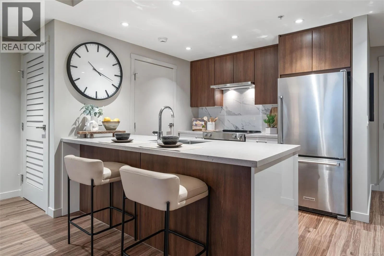 Welcome to Victoria Harbour by Chartwell. Enjoy amazing views of Beacon Hill Park, the mountains and ocean from this beautiful 11th-floor unit. The well-designed open layout with high ceilings and large windows gives this 1-bed home a bright, spacious feel. Steps from the Inner Harbour, this suite features a full modern kitchen, in-suite laundry, generous storage, and a balcony with stunning views! Known for its active 65+ community, Chartwell offers a full calendar of group and personalized programs. Amenities include a full amenities floor with an extensive fitness room, open-air patio, gardens, and BBQs. Weekly housekeeping with bed linen service, basic cable, health and wellness consultations, groups fitness classes, social and recreation programs, scheduled transportation, concierge, and 24-hr emergency response are all included. This luxury retirement community features extensive wellness services, social activities, guest suites, theatre, pub, and restaurant. (id:27476)