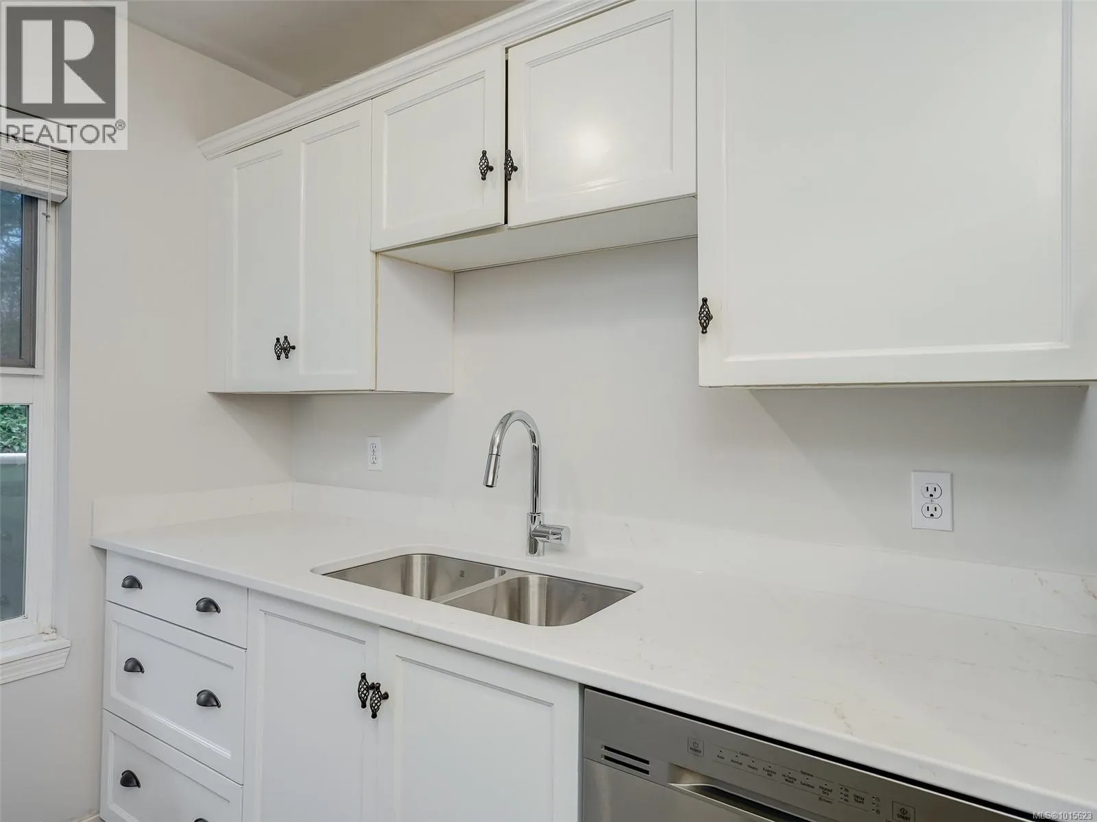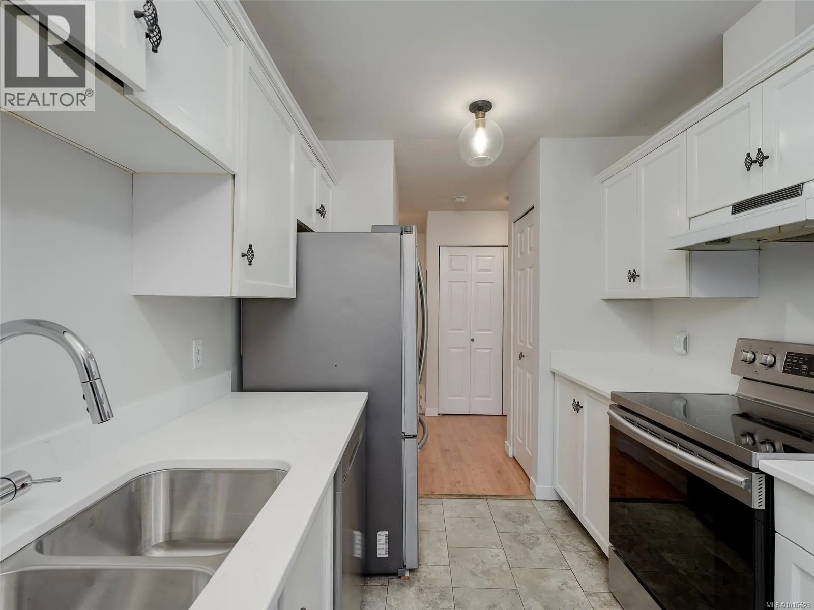 Welcome to this bright and spacious 2-bedroom, 2-bath corner condo in Victoriaâs desirable Hillside neighbourhood. Offering 1035 finished square feet, this home has been tastefully updated with fresh paint and modern countertops, creating a warm and inviting atmosphere. The large living area features a cozy gas fireplace and opens onto a sunny patio, ideal for enjoying your morning coffee or a quiet evening read. A smartly designed floor plan provides excellent flow, while the generous primary bedroom includes ample closet space to easily fit a coupleâs wardrobe. Additional highlights include in-suite laundry, secure underground parking with a car and dog wash station, and a separate storage locker. Kids and pets are welcome, and extra parking may be available to rent. Located close to shopping, parks, and public transit, this lovely condo offers both comfort and convenience in a central setting. (id:27476)
