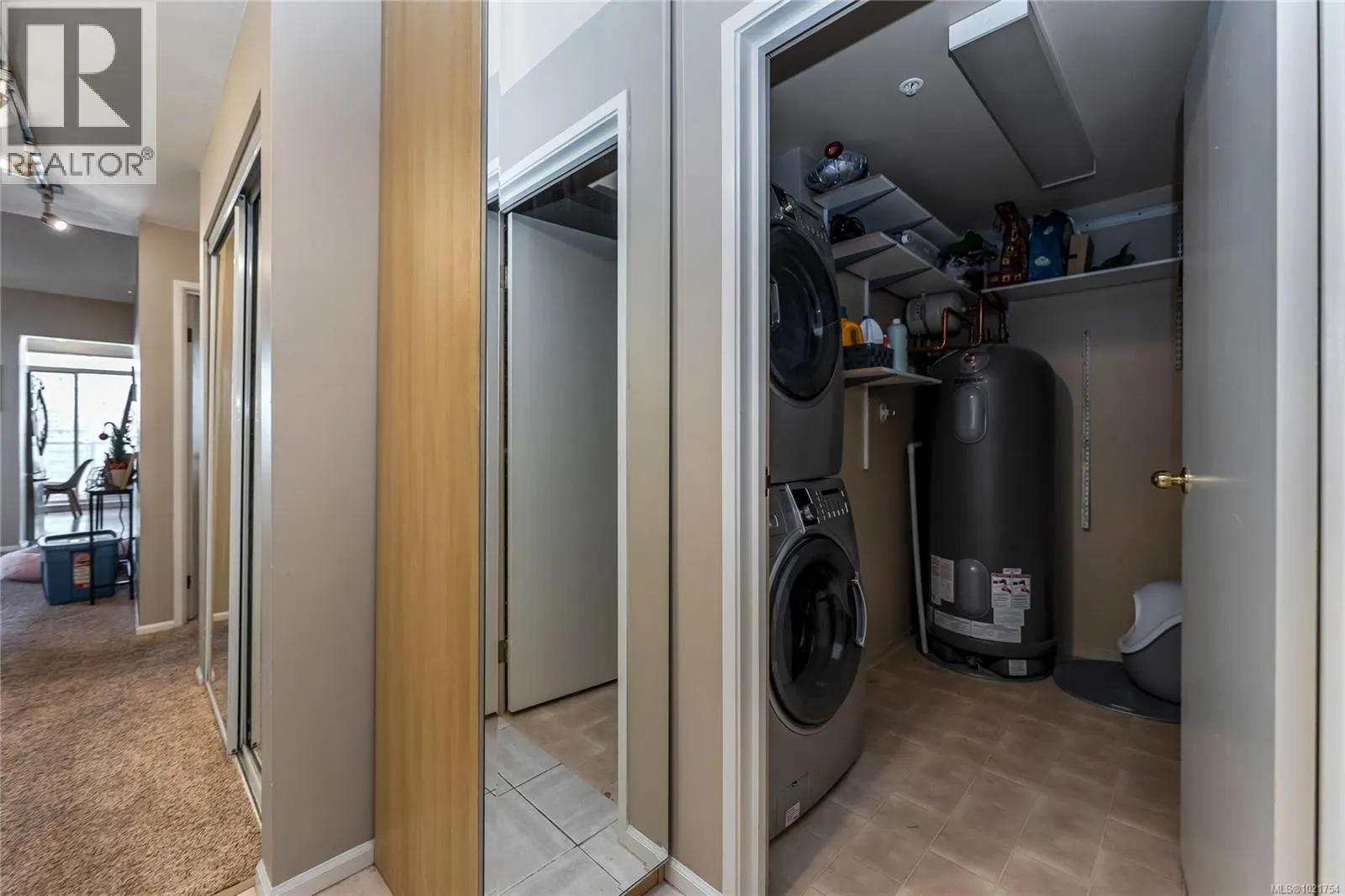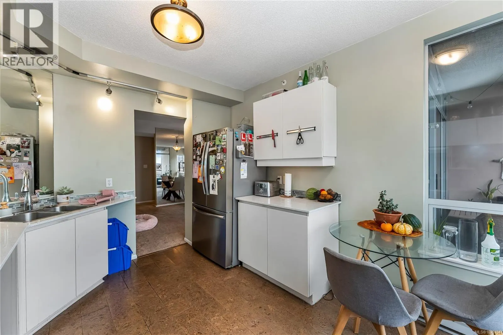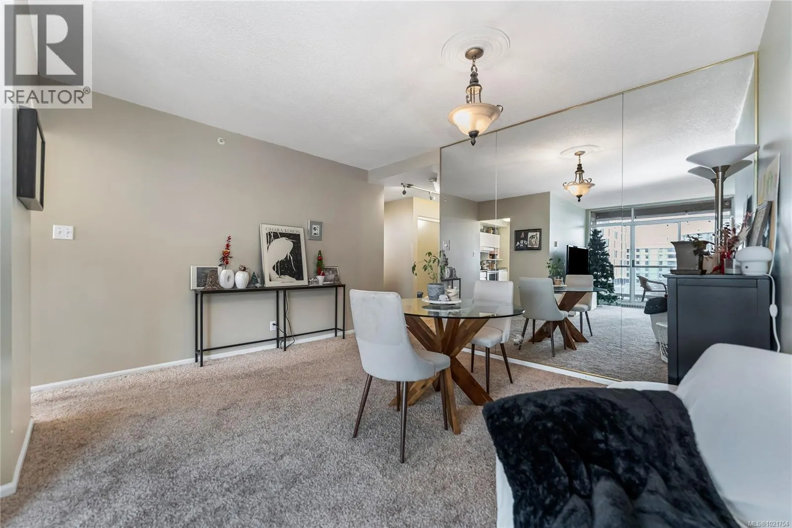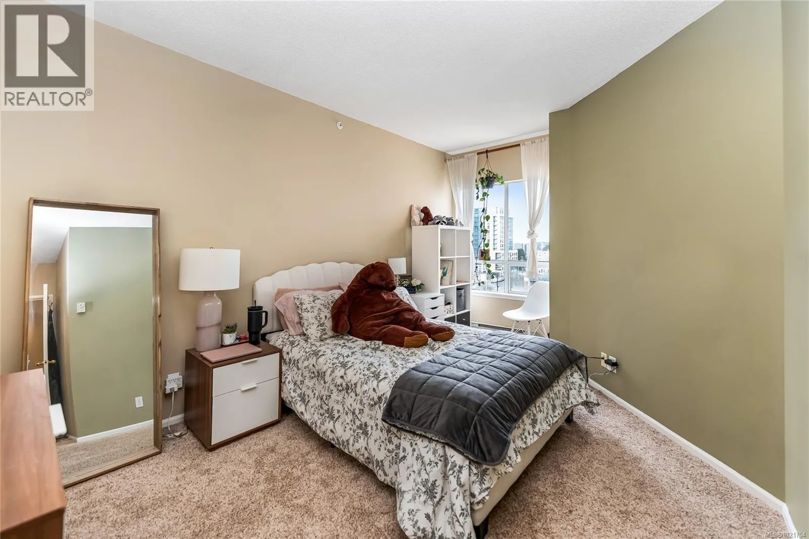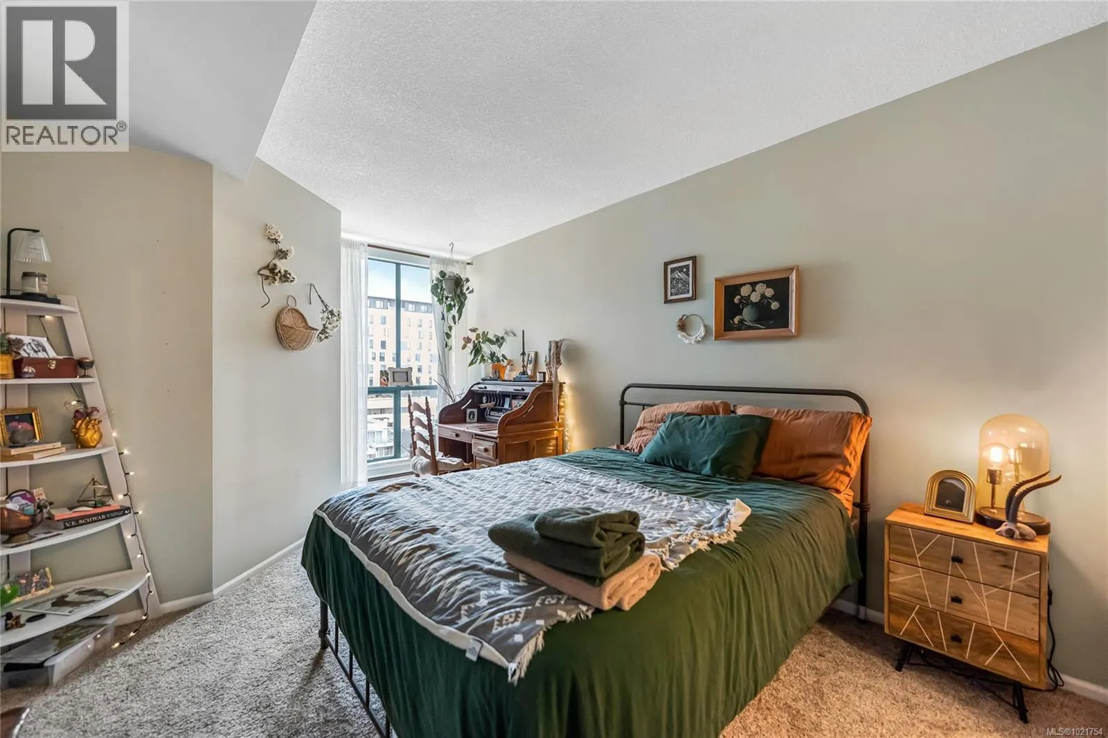 Experience exceptional value in this spacious and affordable 2-bedroom, 2-bathroom home in one of downtown Victoriaâs most sought-after steel and concrete buildings. Ideally located in vibrant Harris Green along the Cook Street corridor, youâre steps to cafés, restaurants, gyms, groceries, transit, and the Inner Harbour. The layout features a large, comfortable living room with ample space for full-sized furniture, complemented by a functional kitchen with clean white cabinetry and generous storage. The thoughtful split-bedroom floor plan offers excellent separation - perfect for roommates, guests, or a dedicated home office. The Primary bedroom includes a walk-through closet and a private ensuite. A standout feature is the fully covered balcony, providing year-round outdoor enjoyment. Additional conveniences include in-suite laundry, secure underground parking, and the support of an on-site caretaker. A great opportunity to secure value and space in a highly walkable urban location. (id:27476)