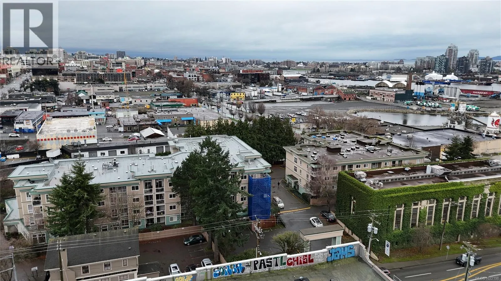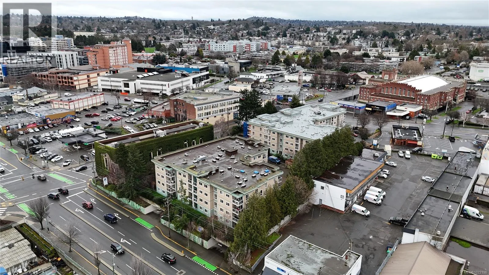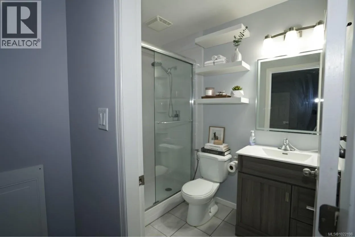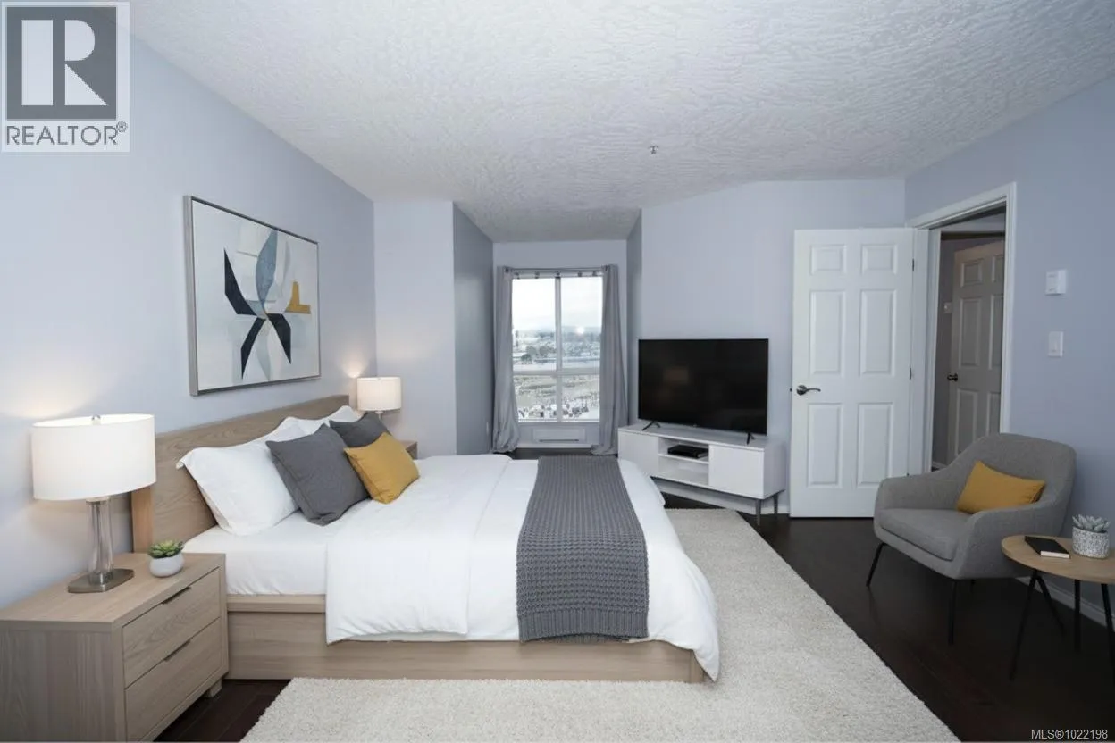 Enjoy bright, top-floor living with sweeping west-facing views in this beautifully updated home. Dramatic 15-foot vaulted ceilings, a skylight, and expansive windows fill the space with natural light, while engineered hardwood floors and a cozy gas fireplace create a warm, modern feel. The recently renovated kitchen features stone countertops, new appliances, and a tiled eat-in area that flows seamlessly into the formal dining space. Two generous bedrooms include a spacious primary with walk-in closet, updated ensuite, bonus office nook, and access to a covered deck, perfect for taking in the sunset views. Set in a well-managed building with a resident caretaker, secure underground parking, bike storage, and separate storage. Pet- and family-friendly, and ideally located within walking distance to downtown, Mayfair Mall, and Vic West. This move-in-ready home checks all the boxes. (id:27476)