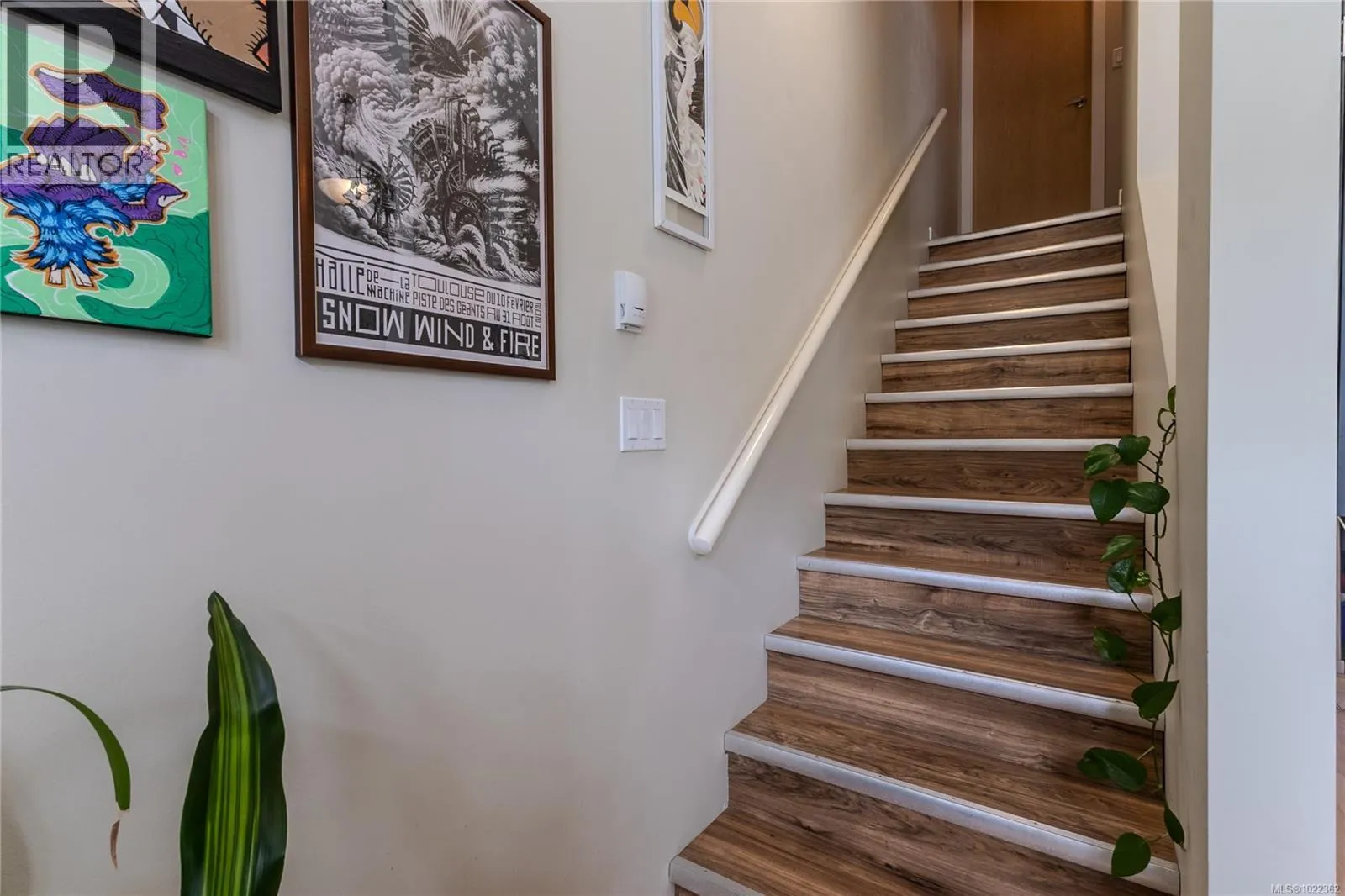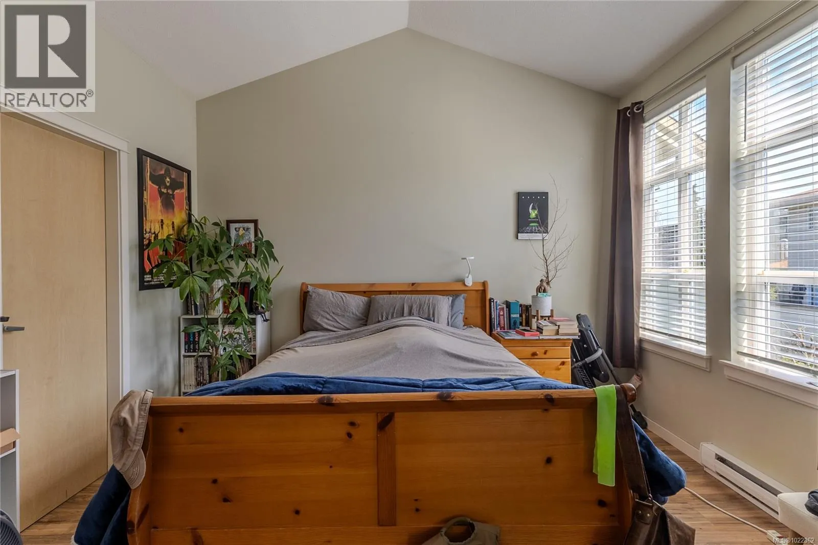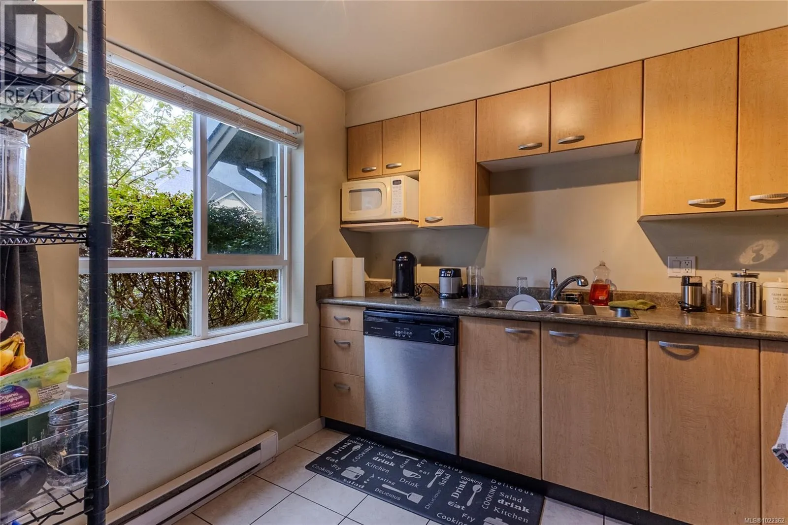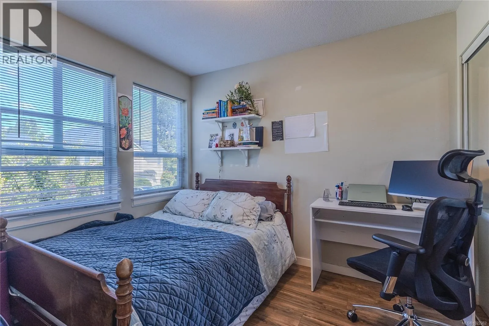 Don't miss this centrally located 3 bedroom and 2 bath townhome in excellent condition. Built in 2002, this home offers all the comforts one needs in a compact floor plan over 3 levels. In a quiet complex with beautiful private gardens, this home boasts 1,290 sq ft of convenient living space. A bright kitchen, and a cozy living/dining room featuring Vaulted ceilings and an energy efficient gas fireplace to warm the space. Bonus: gas included in strata fee! Wander upstairs into the spacious master suite complete with ensuite & large closet along with a second bedroom, bathroom and laundry. The top level you will find another bedroom perfect for guests! Through the bright living room onto the back patio, enjoy the space for a summer BBQ! In a pet & children friendly complex, this townhome is an ideal starter home for a young family! Extremely close to many amenities, including coffee shops, schools, Crystal Pool, Save-on-Foods grocery store walking distance away, & more! (id:27476)