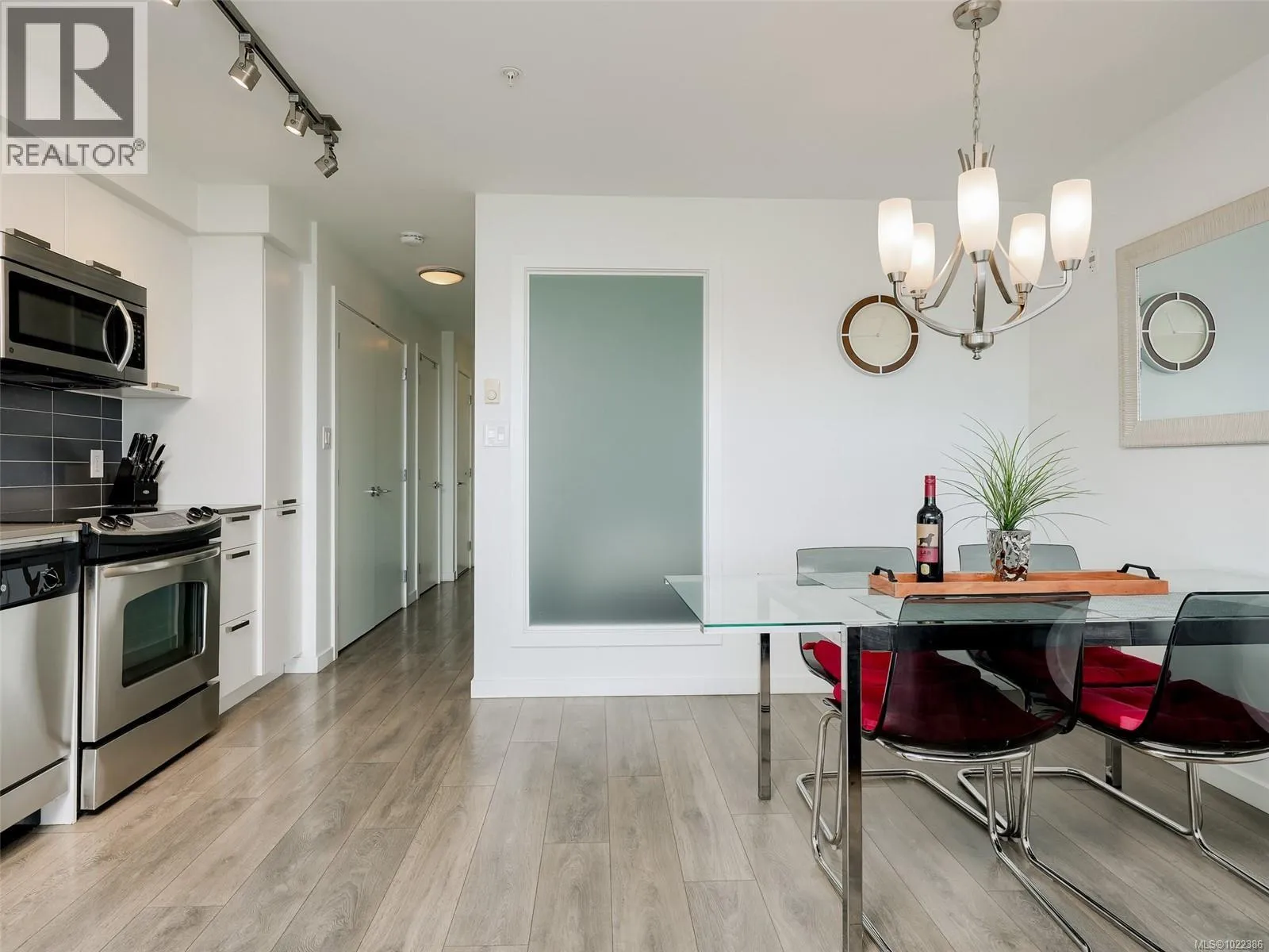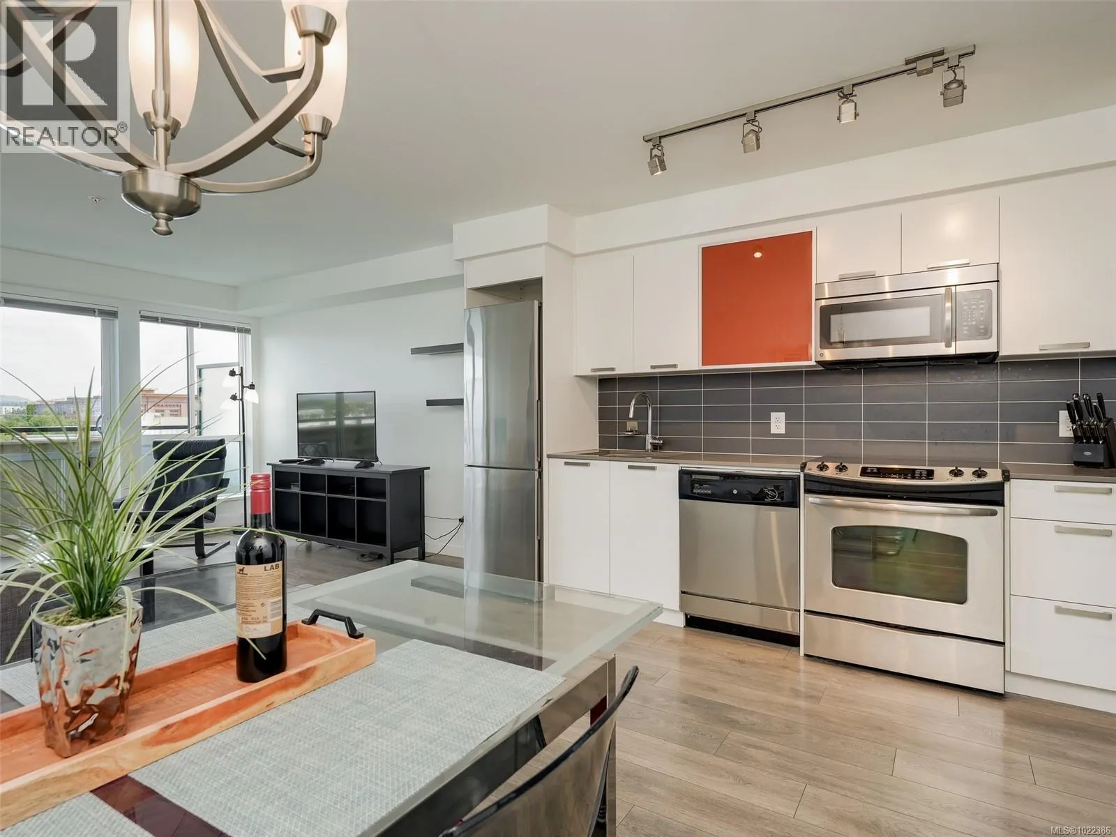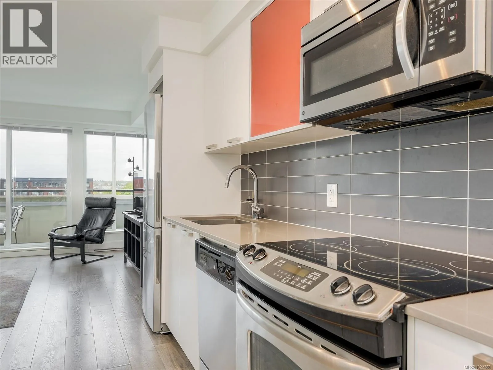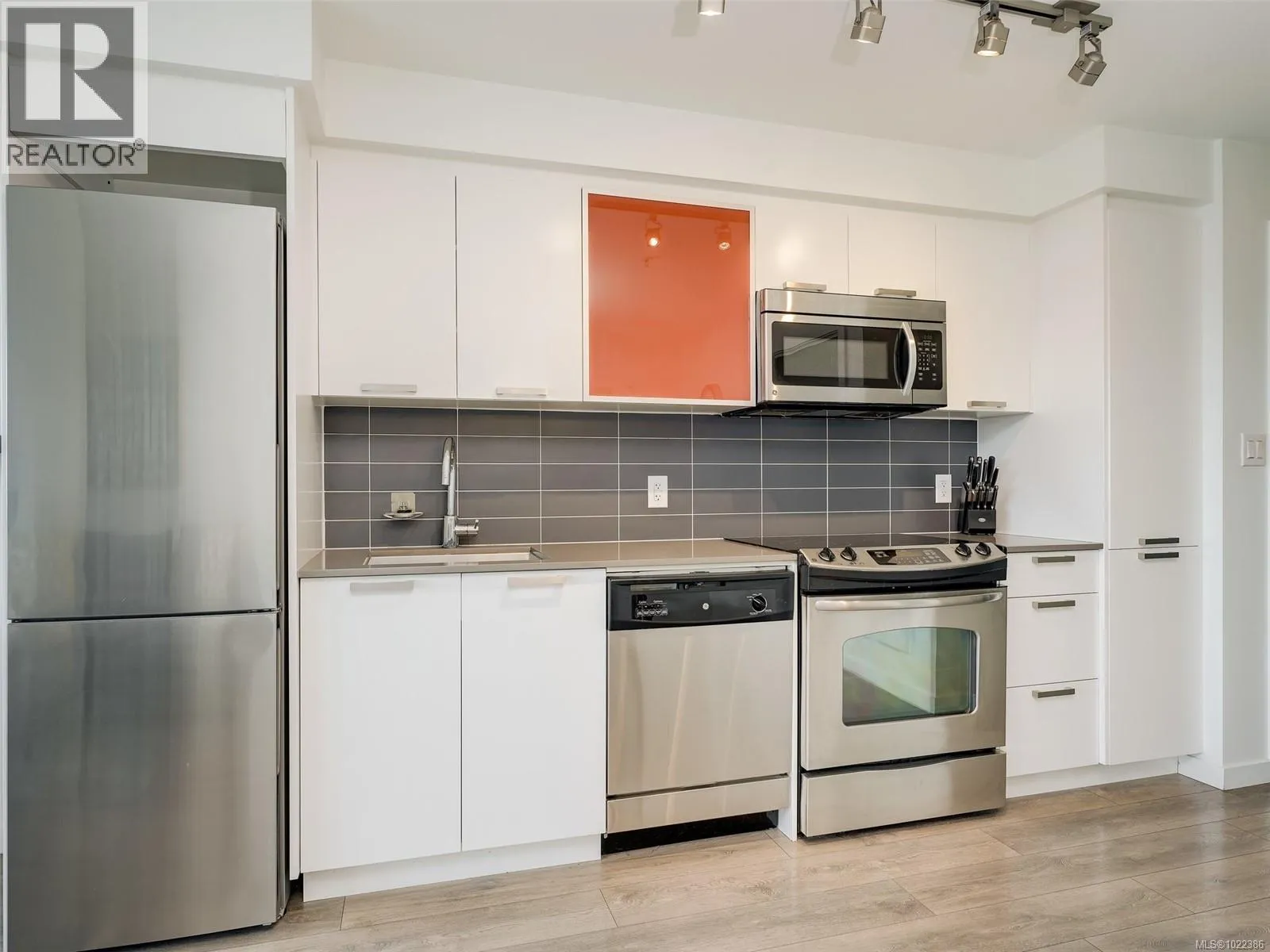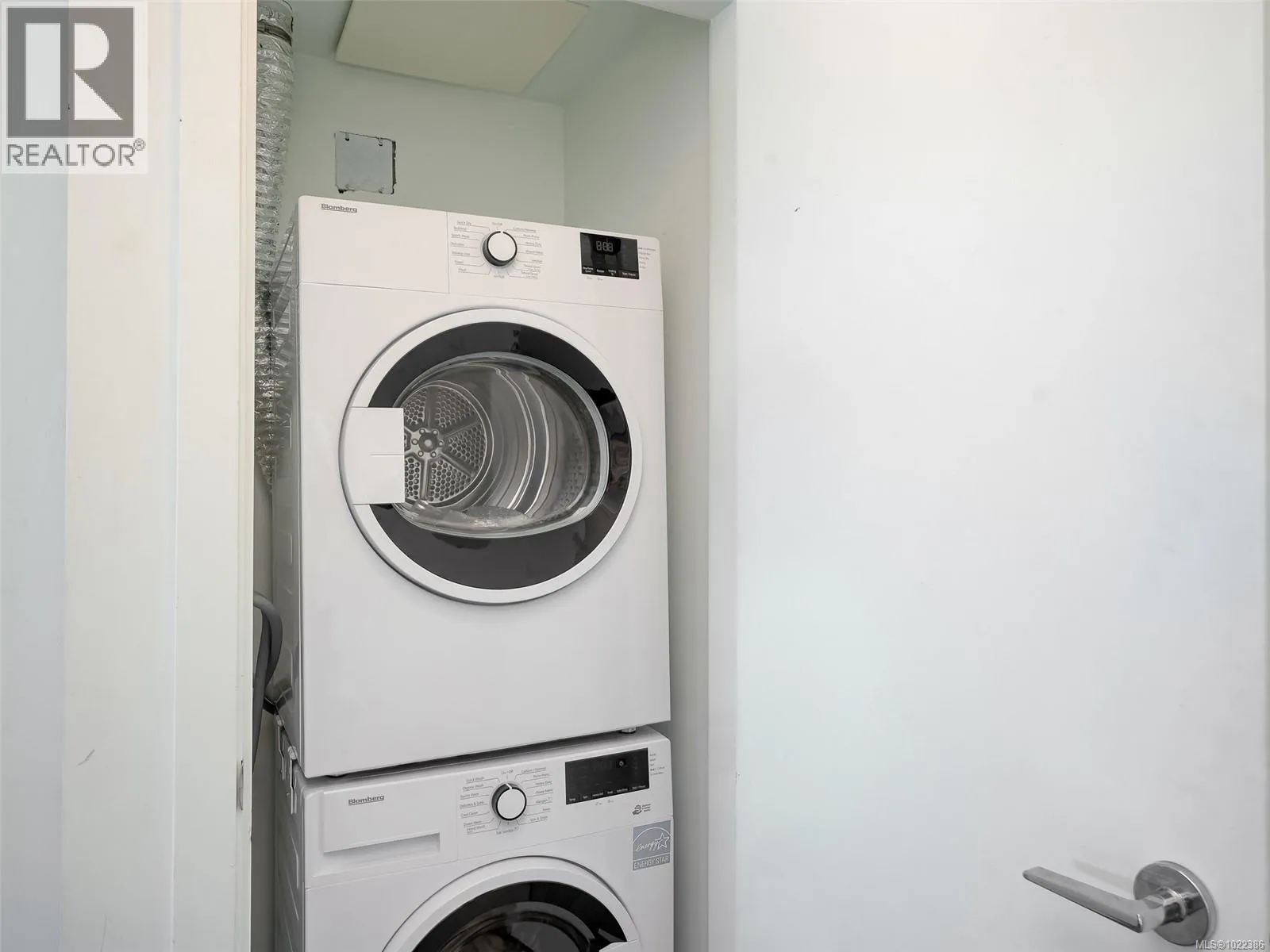 BEST VALUE IN THE BUILDING - LARGE BALCONY WITH MOUNTAIN VIEWS AND CHINA TOWN - UNDERGROUND PARKING - SEPARATE STORAGE. Situated in the heart of Chinatown this property is steps away from all amenities such as gyms, shopping, coffee shops, restaurants, the inner harbour and so much more. Boasting a modern aesthetic this condo includes an upscale kitchen with stainless steel appliances, quartz countertops, laminate flooring, floor to ceiling windows, New in-suite washer and dryer, ample storage space, 1 underground parking stall, exterior storage, and a generous private patio that looks over Chinatown. You don't want to miss taking a tour of this open concept living home. (id:27476)