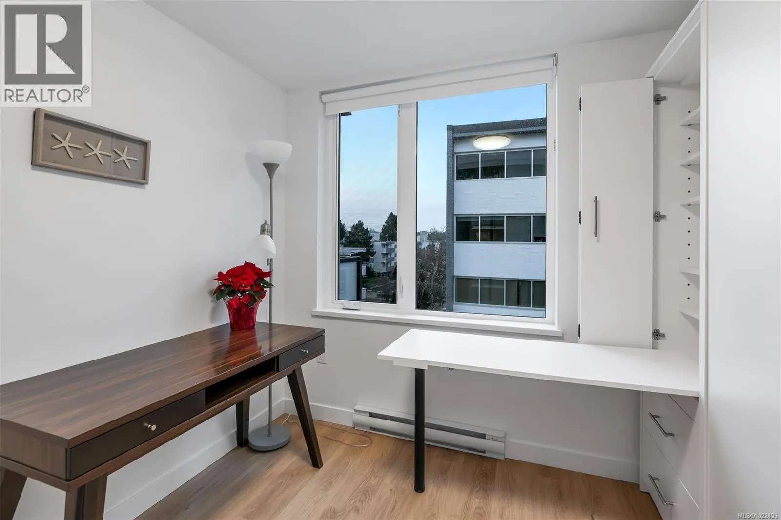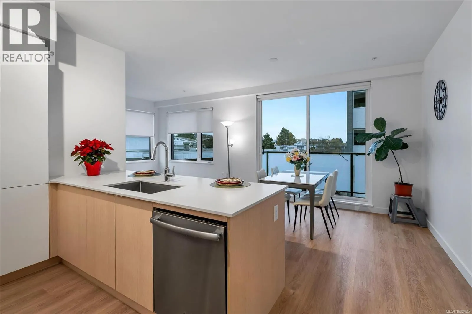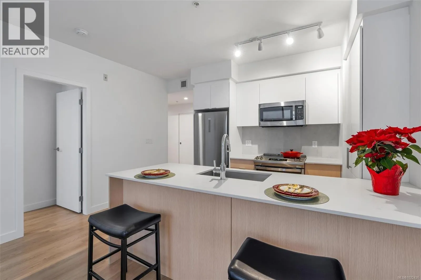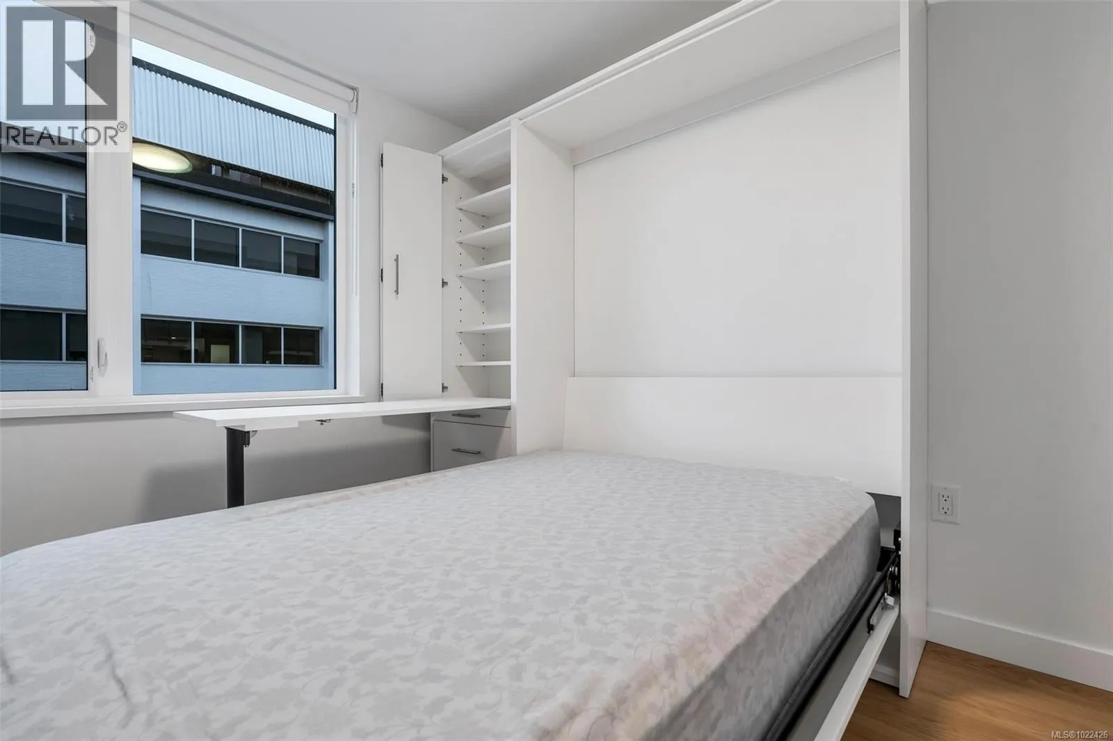 Step into contemporary living at Haven, a boutique development by award-winning Chard Developments. This like-new, southeast corner 2bed, 2bath home is filled with abundant natural light and offers a thoughtfully designed layout with separated bedrooms for enhanced privacy.Inside, enjoy 8'9'' ceilings, sleek flat-panel cabinetry, stainless steel appliances, and a solid surface countertop complemented by a stylish porcelain tile backsplash. Durable, wood-look wide-plank vinyl flooring flows throughout the bright, open-concept living space. The second bedroom features custom built-in Murphy bed and desk, maximizing flexibility for guests, a home office, or everyday living.Additional highlights include in-suite laundry, roller blinds, secure underground parking with a designated EV charger (one of only a few in the building), and a separate storage locker. This well-managed strata offers exceptional amenities including assigned bike storage, an e-bike share program, pet run & wash station, childrenâs playground, and a residentsâ lounge with a large outdoor deckâtruly living up to the name Haven.Enjoy an unbeatable walkable lifestyle just steps to Fernwood Village, Victoriaâs Inner Harbour, nearby parks, cafés, and more. (id:27476)