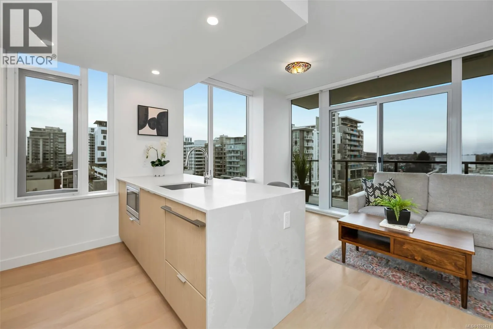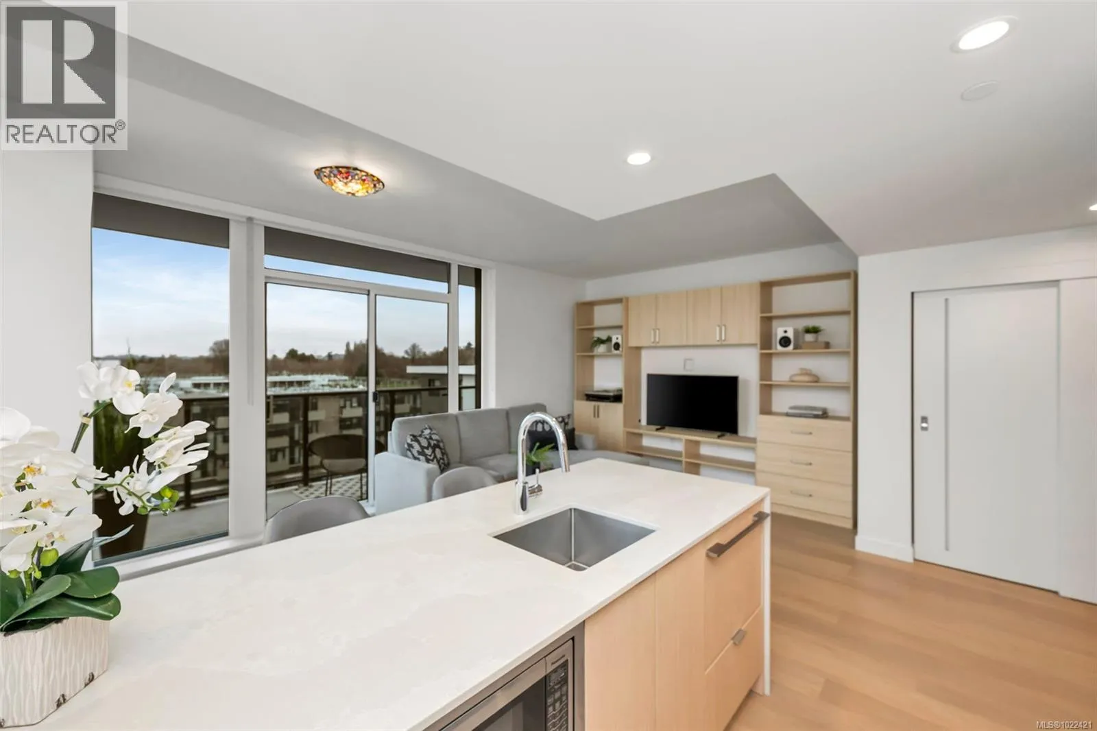 Listed below BC Assessed value! Newly-built in 2024 - 675 sq ft condo - including a 95 Sq Ft balcony on the 7th Floor of the Nest by Chard. Fully air conditioned 1 bed 1 bath luxury corner unit with a huge North-facing balcony. Inside, find an amazing layout with open concept living space and floor to ceiling windows to the North. Enjoy watching sunsets out of the expansive windows to the West. The âUâ shaped kitchen is spacious with quartz counter tops/backsplash and has Fisher & Paykel appliances including a panel ready refrigerator, dishwasher, induction stove stop, built-in oven, built-in microwave and ample drawer/cabinet storage. Additional $10K of upgrades including built-in closets and wall unit in the living room. There is full-sized separate storage locker (#60), underground parking (owners renting stall #61), secure bike storage - private pedestal (#57), workout gym, dog wash, MODO. Enjoy the convenience of living in Downtown Victoria and all the amenities it has to offer! (id:27476)