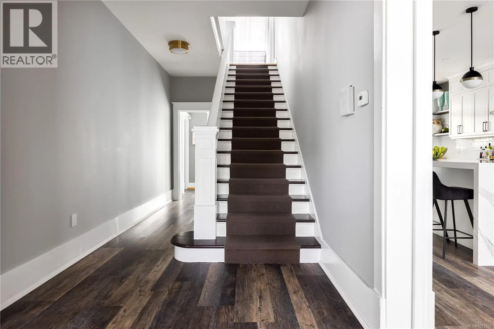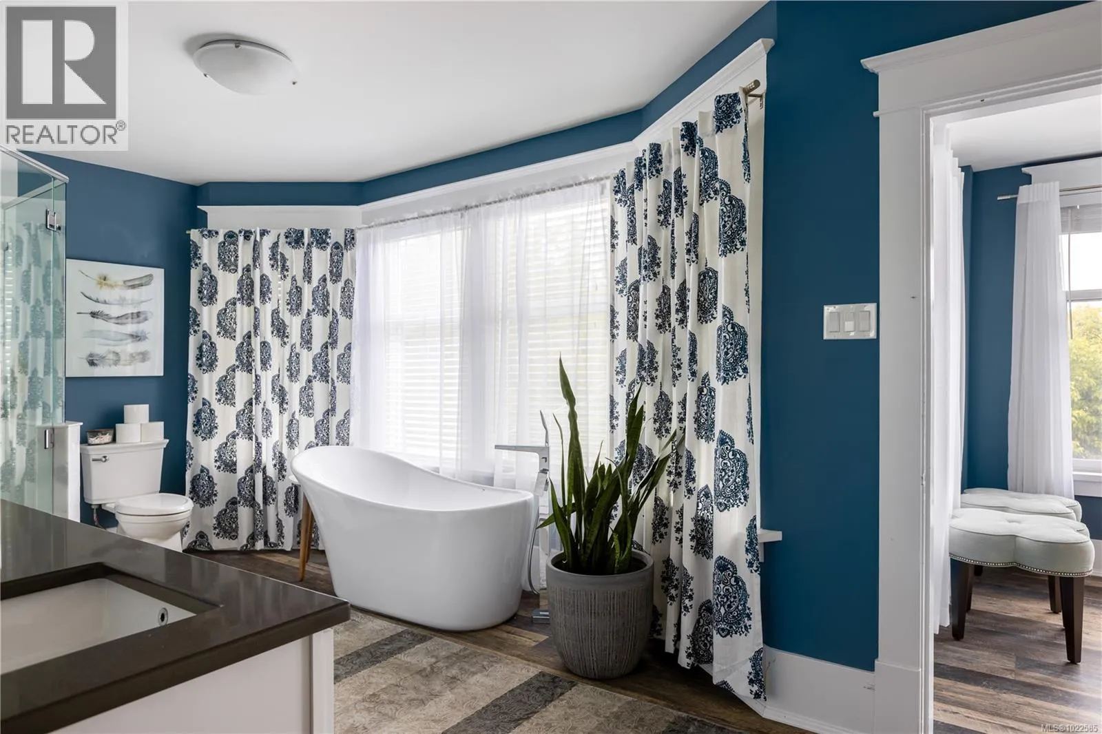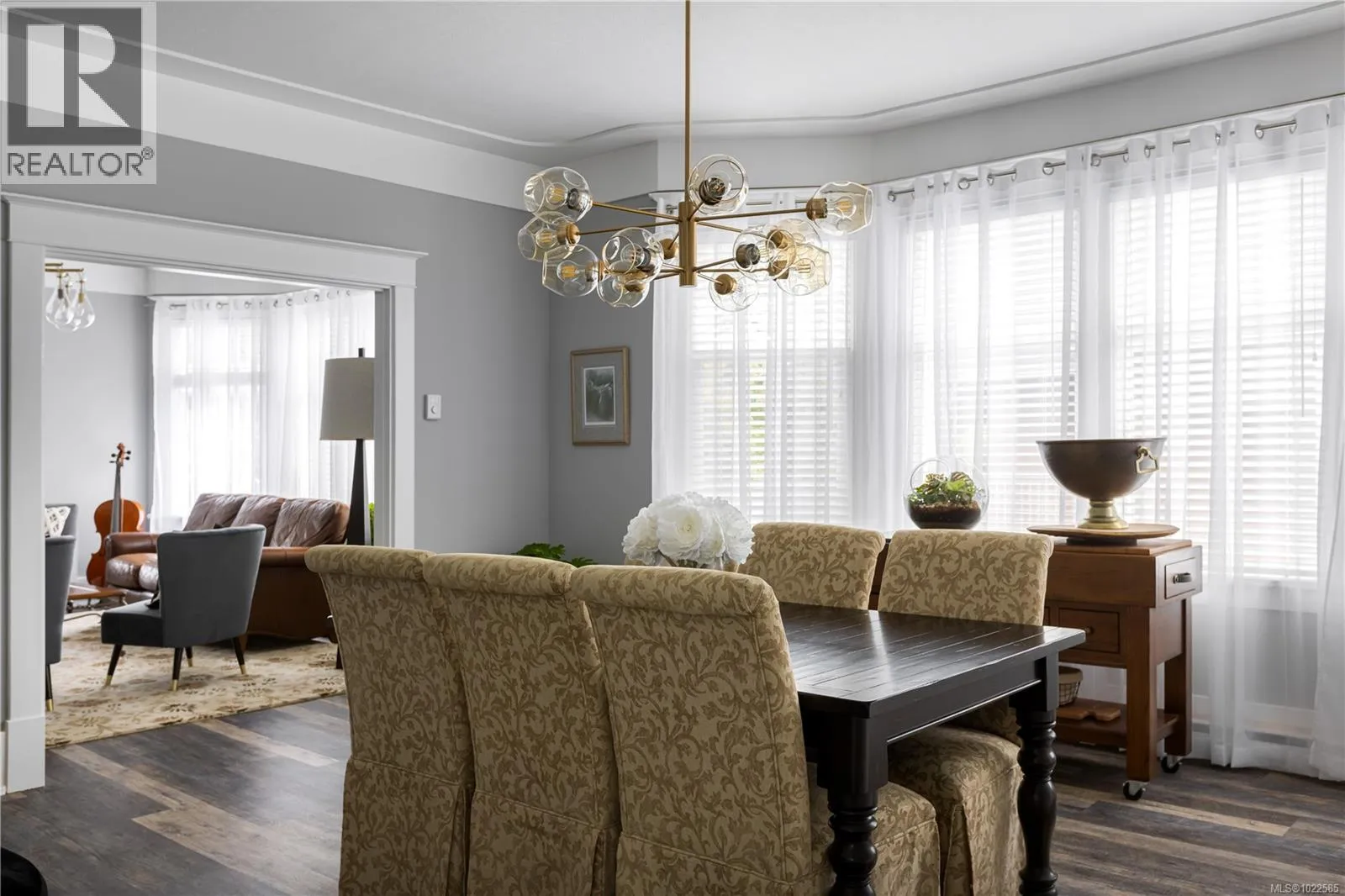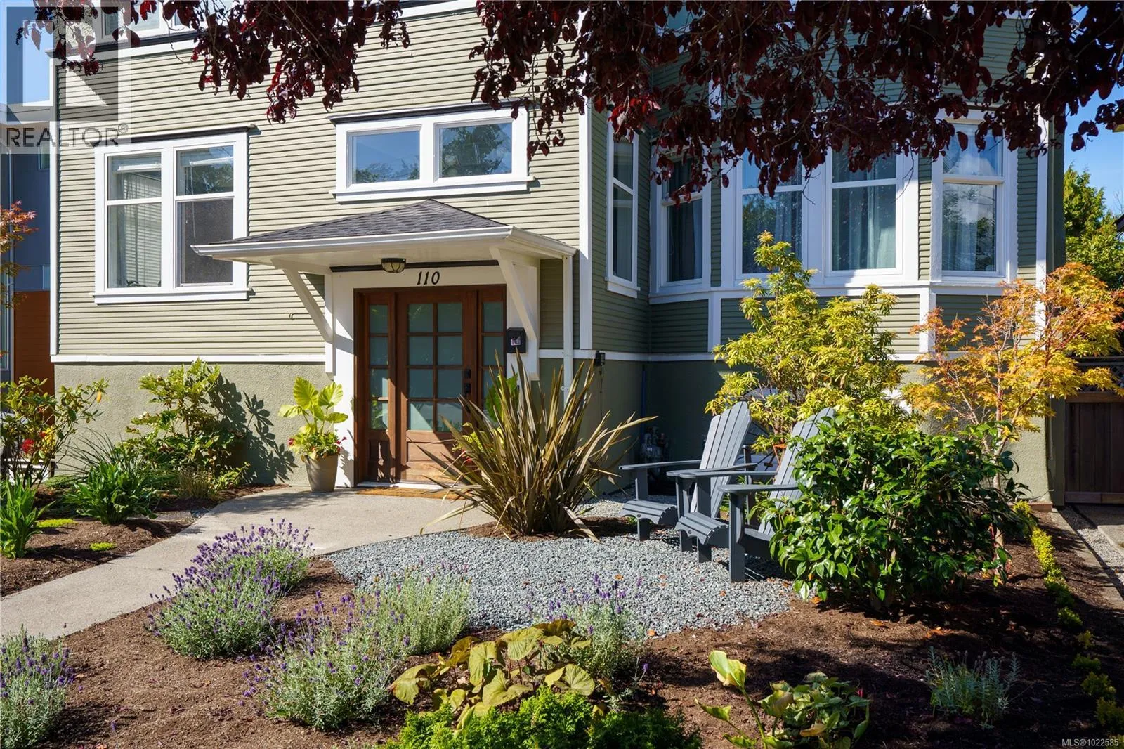 Tucked just off one of Victoriaâs most iconic roads, 110 Eberts Street is a private oasis in the city. Thoughtfully renovated while preserving its 1913 character, this 4-level home offers timeless charm and quality finishes throughout. The kitchen stands out with a striking 10-foot quartz island with waterfall edges and sleek, modern design. Built for entertaining, the layout features a blend of formal and informal spaces, including inviting sitting and lounge areas. The fully renovated lower level includes a legal 2-bedroom suite with separate laundry. Enjoy a west-facing backyard, detached garage, plenty of storage, ocean views, and an unbeatable location. Just steps to the beach, Cook Street Village, and directly across from Bushby Park, plus easy access to downtown Victoria for all your shopping, dining, and entertainment needs. This home offers ample space for the whole family to live, work, and relax. Donât miss your chanceâcall to view! (id:27476)