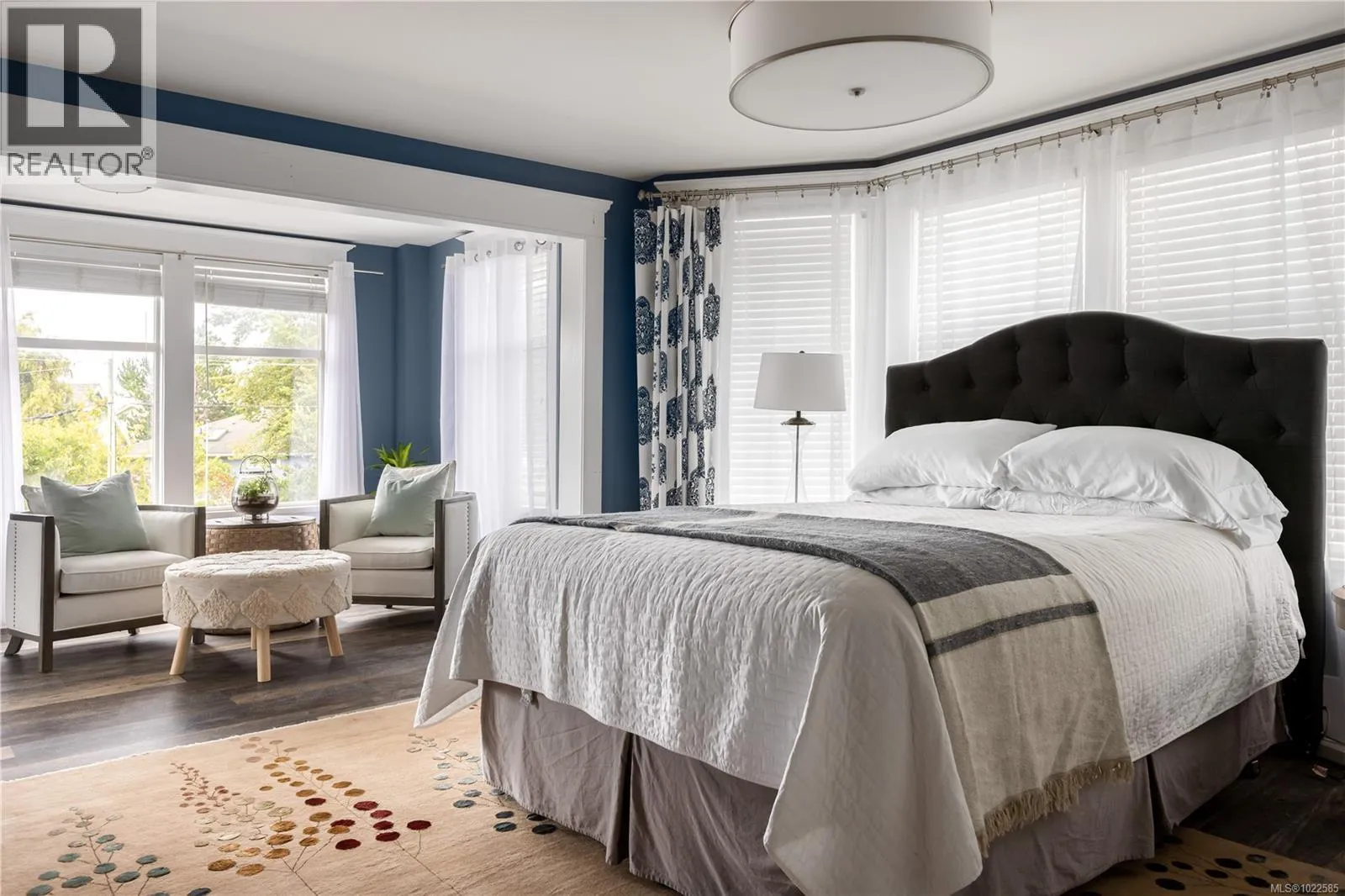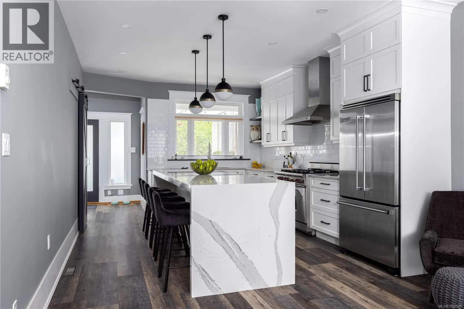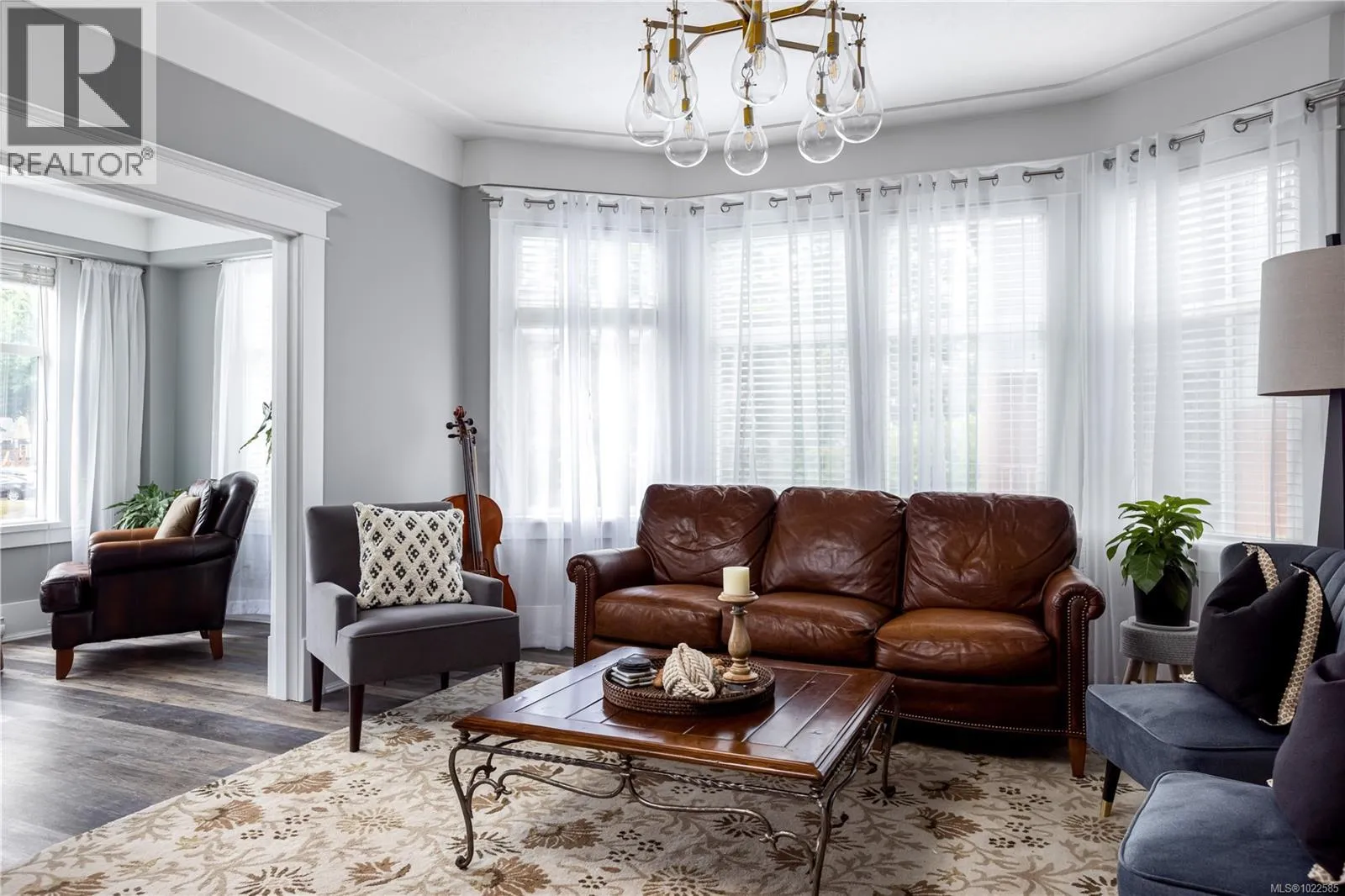 Tucked just off one of Victoriaâs most iconic roads, 110 Eberts Street is a private oasis in the city. Thoughtfully renovated while preserving its 1913 character, this 4-level home offers timeless charm and quality finishes throughout. The kitchen stands out with a striking 10-foot quartz island with waterfall edges and sleek, modern design. Built for entertaining, the layout features a blend of formal and informal spaces, including inviting sitting and lounge areas. The fully renovated lower level includes a legal 2-bedroom suite with separate laundry. Enjoy a west-facing backyard, detached garage, plenty of storage, ocean views, and an unbeatable location. Just steps to the beach, Cook Street Village, and directly across from Bushby Park, plus easy access to downtown Victoria for all your shopping, dining, and entertainment needs. This home offers ample space for the whole family to live, work, and relax. Donât miss your chanceâcall to view! (id:27476)
