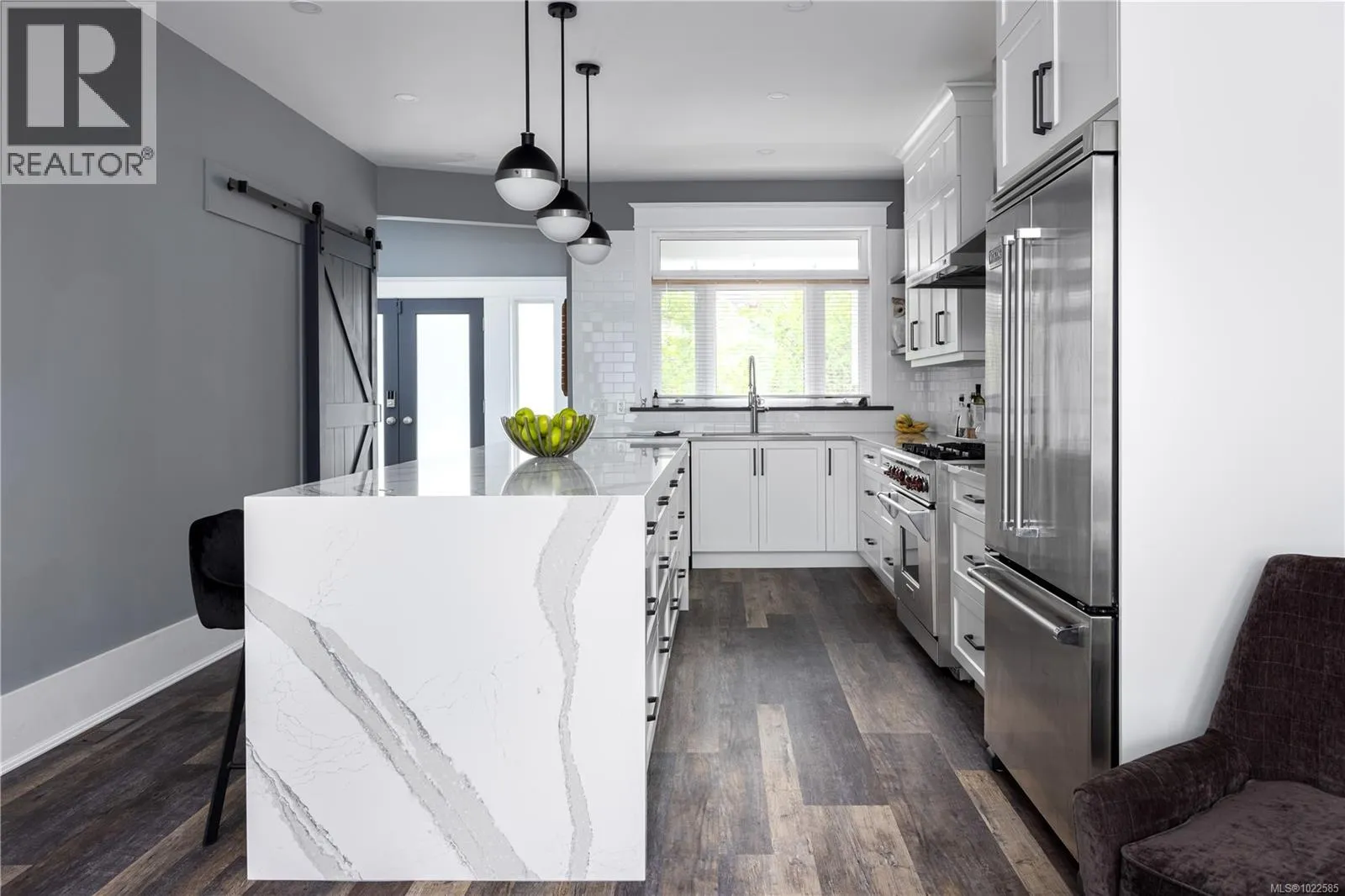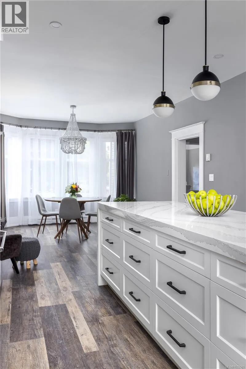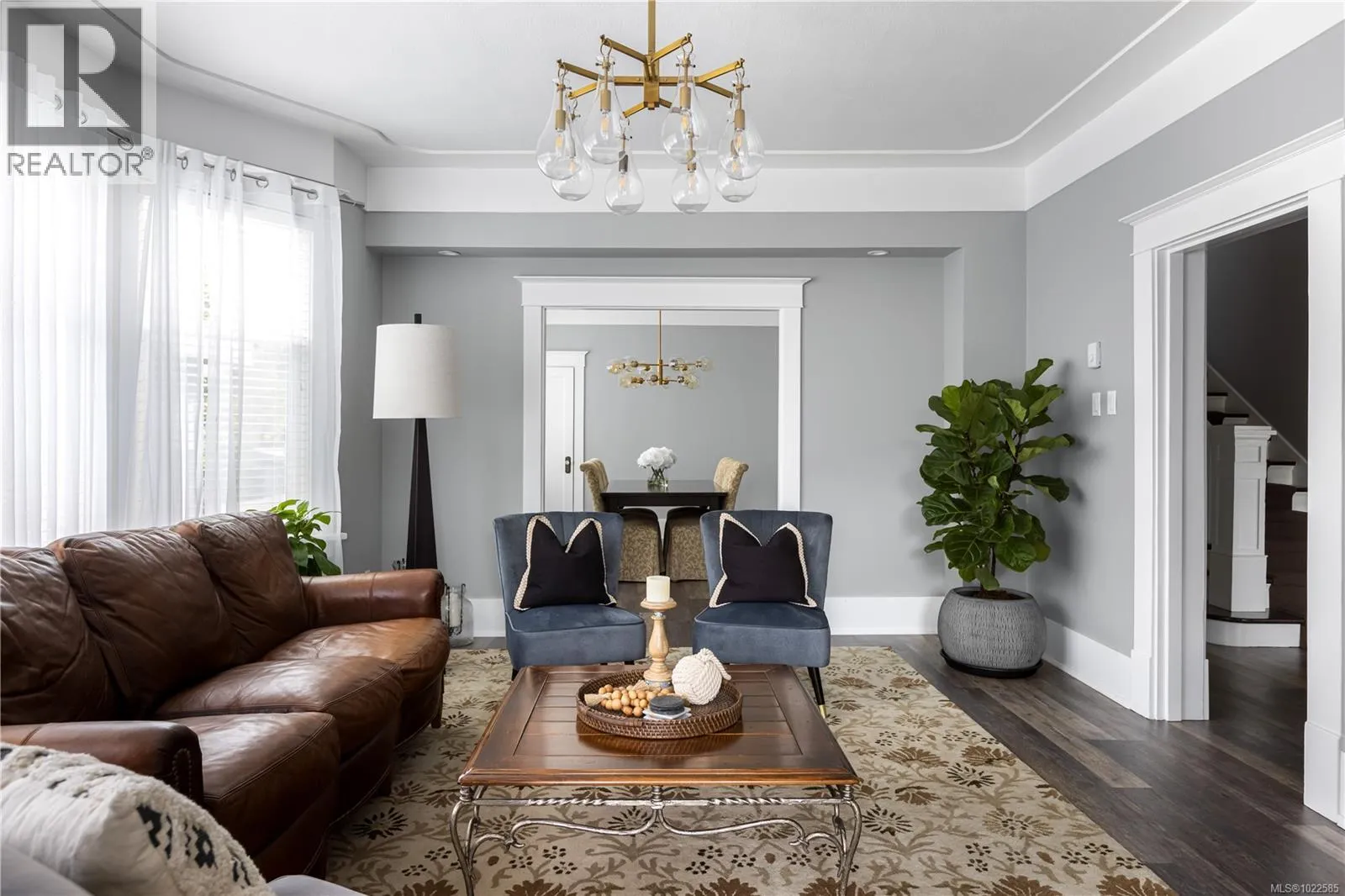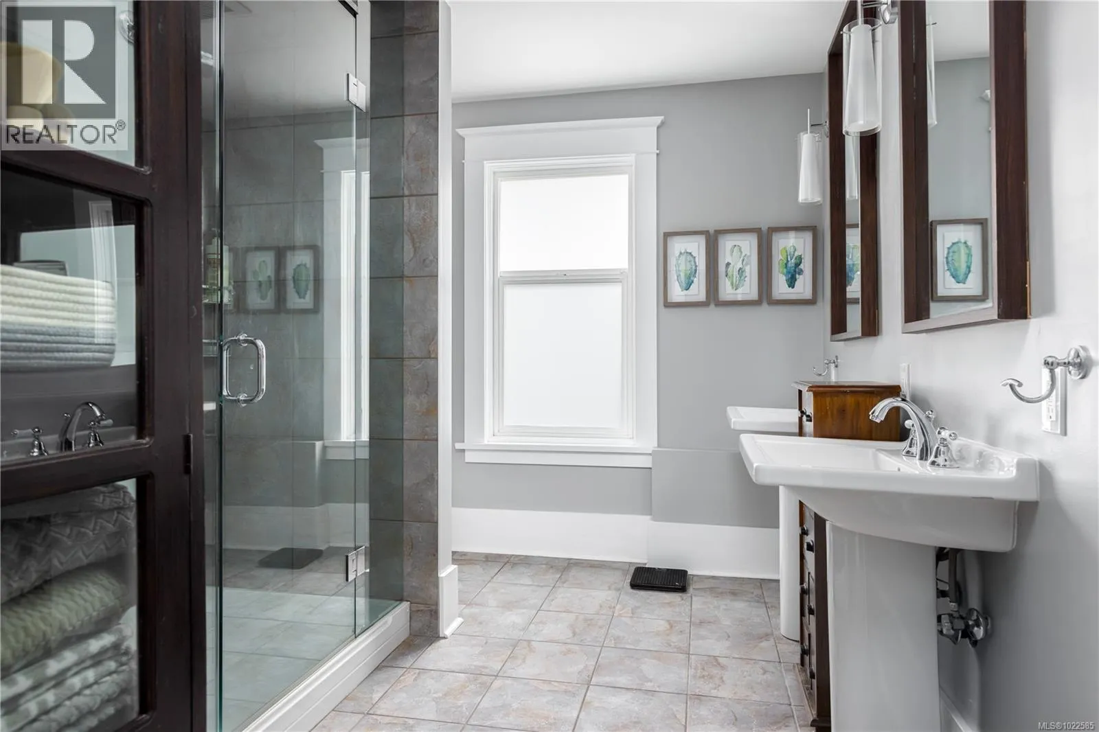 Tucked just off one of Victoriaâs most iconic roads, 110 Eberts Street is a private oasis in the city. Thoughtfully renovated while preserving its 1913 character, this 4-level home offers timeless charm and quality finishes throughout. The kitchen stands out with a striking 10-foot quartz island with waterfall edges and sleek, modern design. Built for entertaining, the layout features a blend of formal and informal spaces, including inviting sitting and lounge areas. The fully renovated lower level includes a legal 2-bedroom suite with separate laundry. Enjoy a west-facing backyard, detached garage, plenty of storage, ocean views, and an unbeatable location. Just steps to the beach, Cook Street Village, and directly across from Bushby Park, plus easy access to downtown Victoria for all your shopping, dining, and entertainment needs. This home offers ample space for the whole family to live, work, and relax. Donât miss your chanceâcall to view! (id:27476)