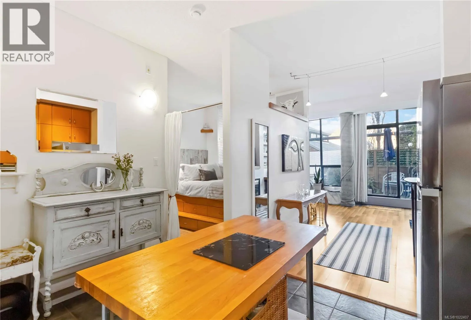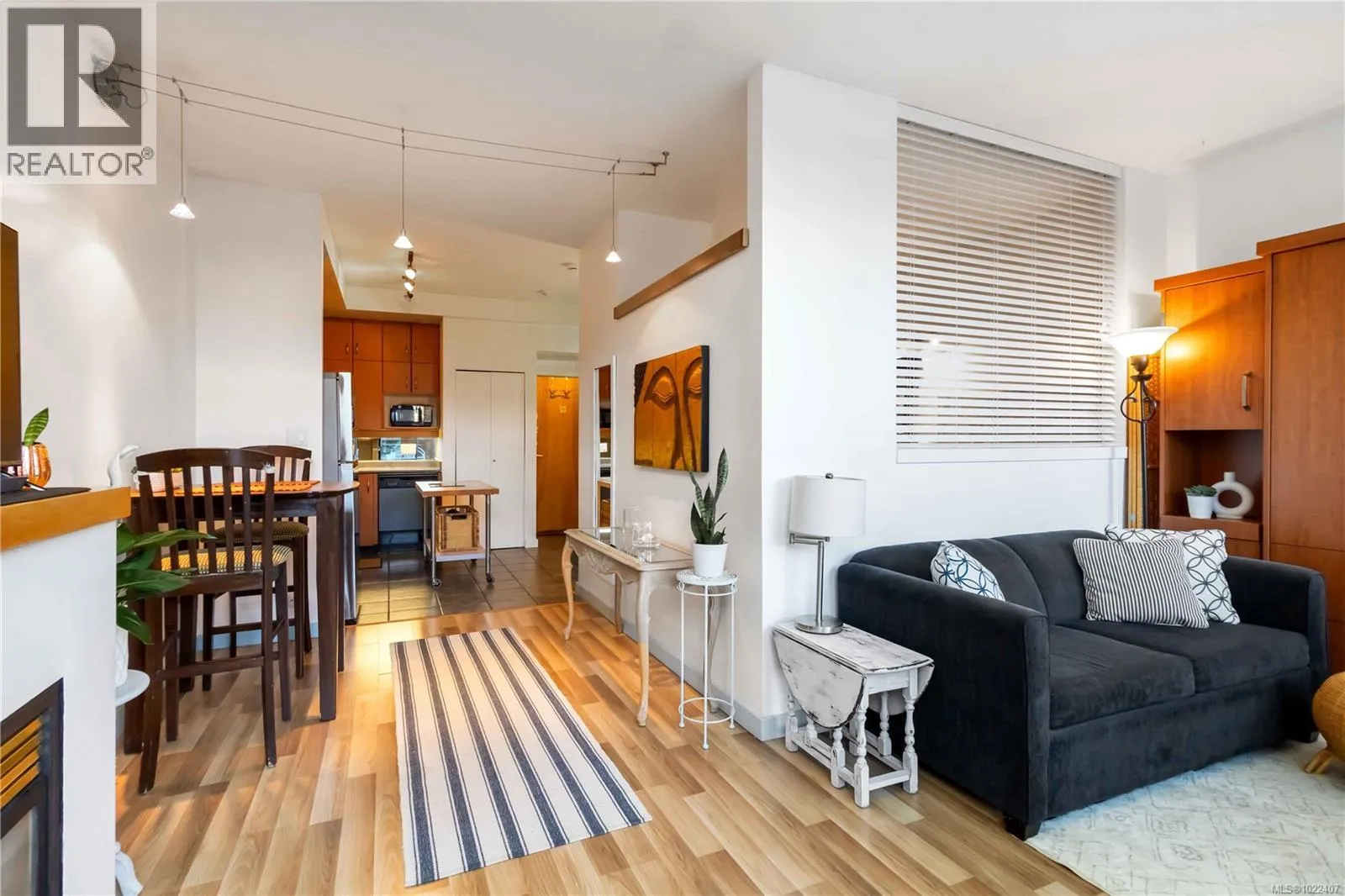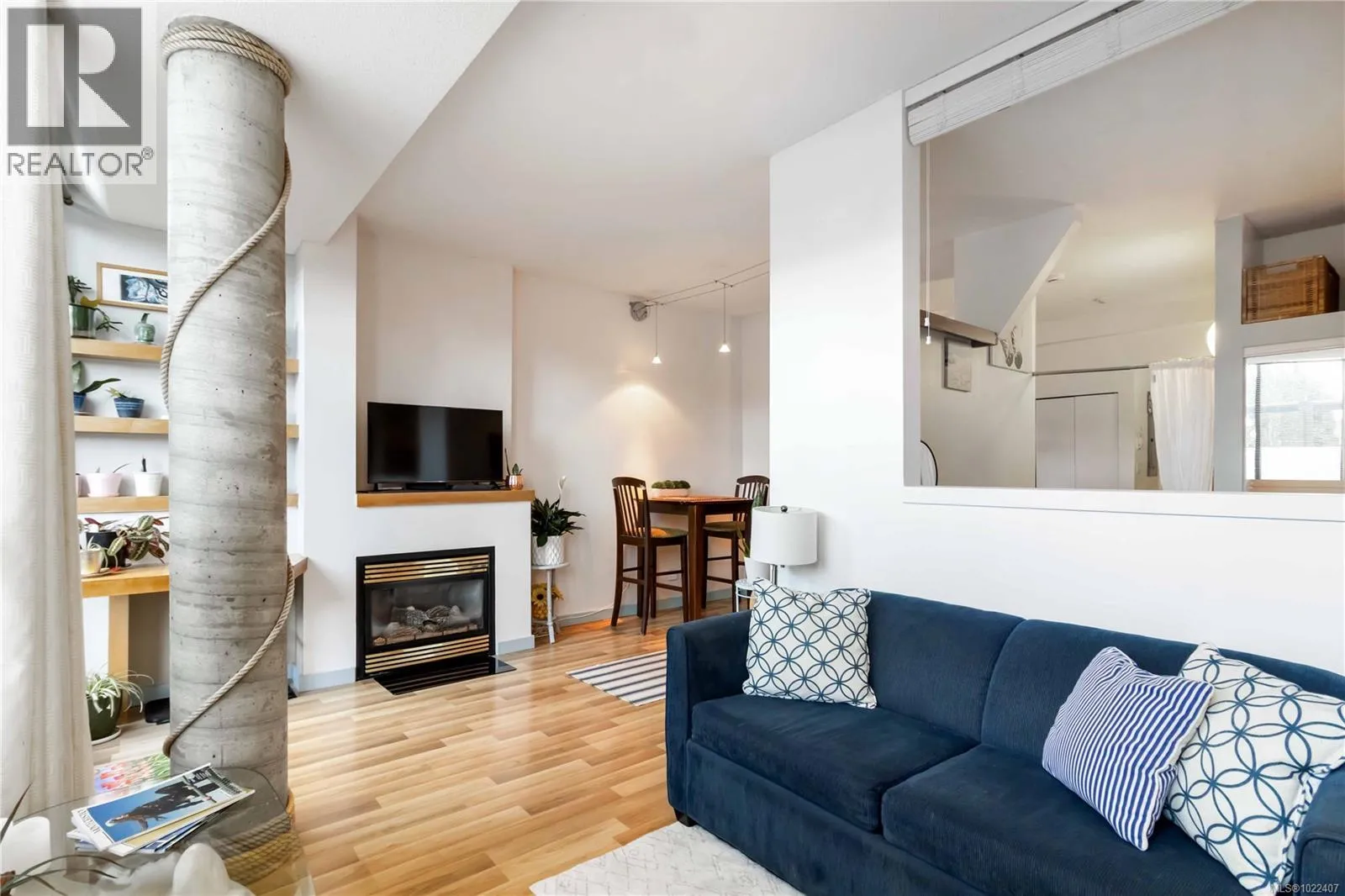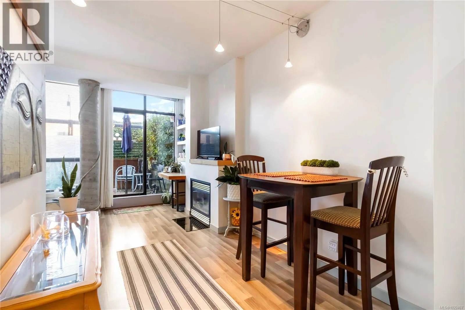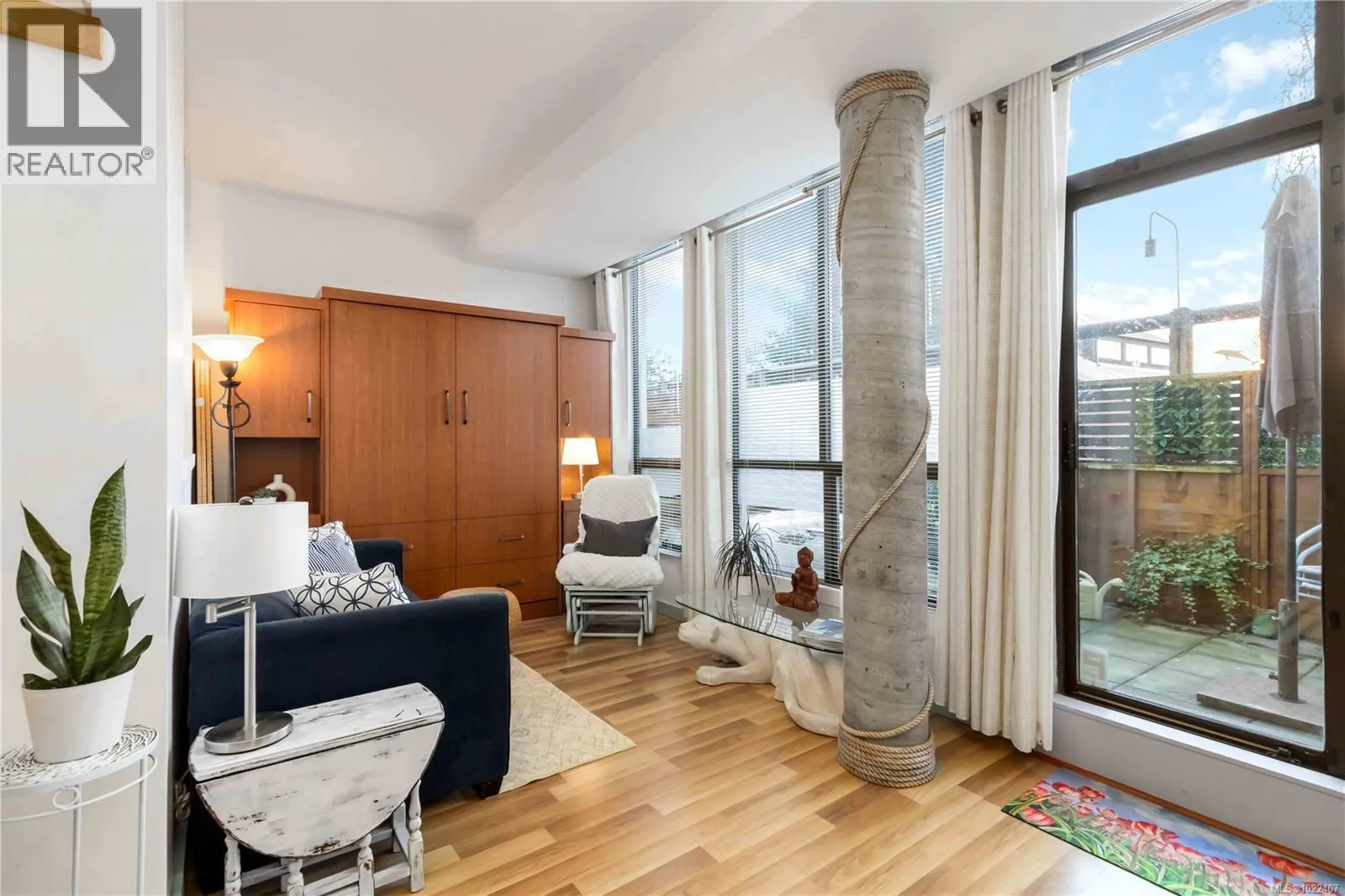 Waterfront lifestyle condo with a large ground-floor patio in Victoriaâs iconic Mermaid Wharf. Enjoy an active, coastal way of life with kayaking, paddle boarding, bike paths, and waterfront strolls just steps from your door. Thoughtfully designed to maximize space and functionality, featuring high ceilings with floor to ceiling windows, gas fireplace, in-suite laundry, expanded bedroom layout with platform bed/storage, murphy bed, built-in desk/shelves. Convenient gated street level access to large patio, and secure underground parking/storage. This steel and concrete, pet-friendly, professionally managed building offers bike/kayak storage, dock access, and a roof top patio with harbour/city. Monthly strata fee includes gas & hot water. A walkable location to Downtown Victoriaâs restaurants, cafés, shopping, entertainment, Chinatown, water taxis, and walkways. Great waterfront lifestyle living as a residence, urban retreat, or investment property. (id:27476)
