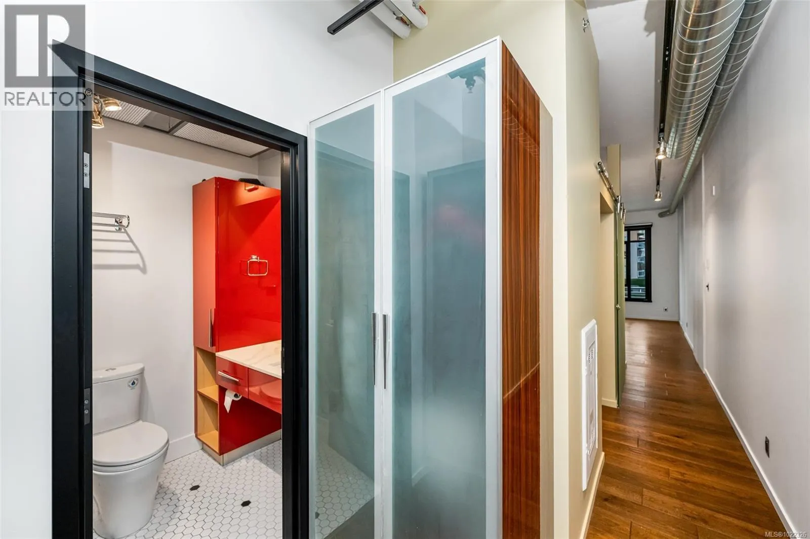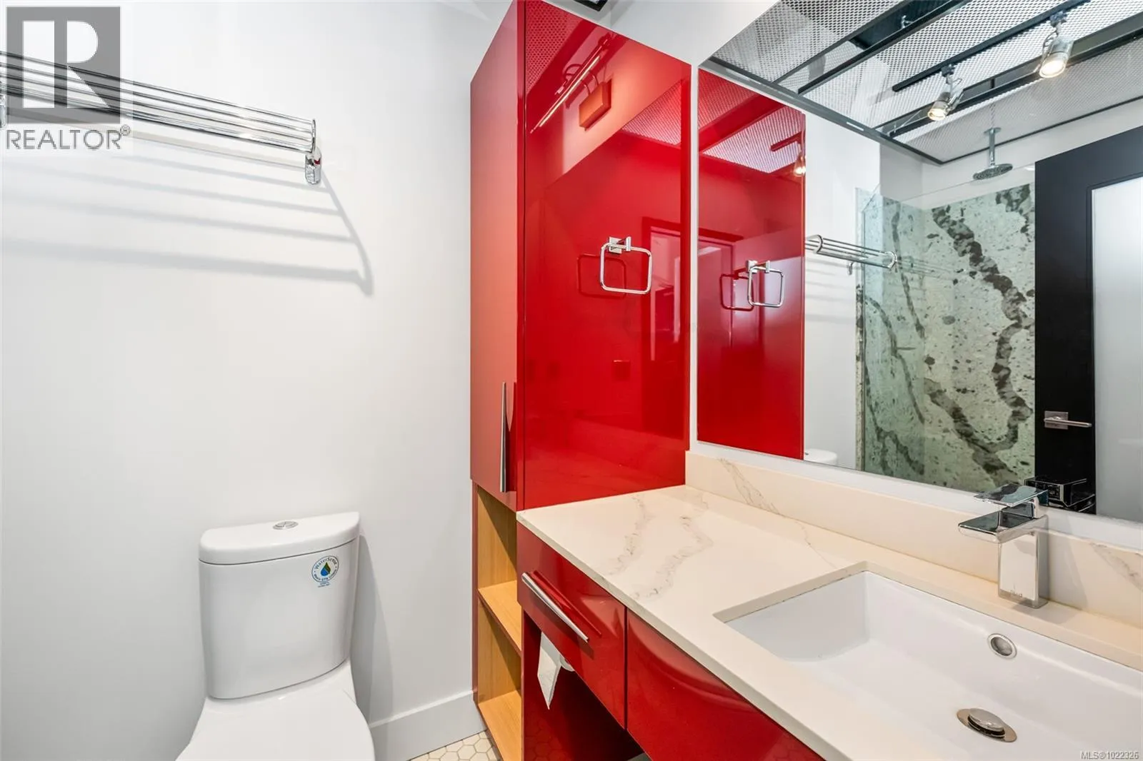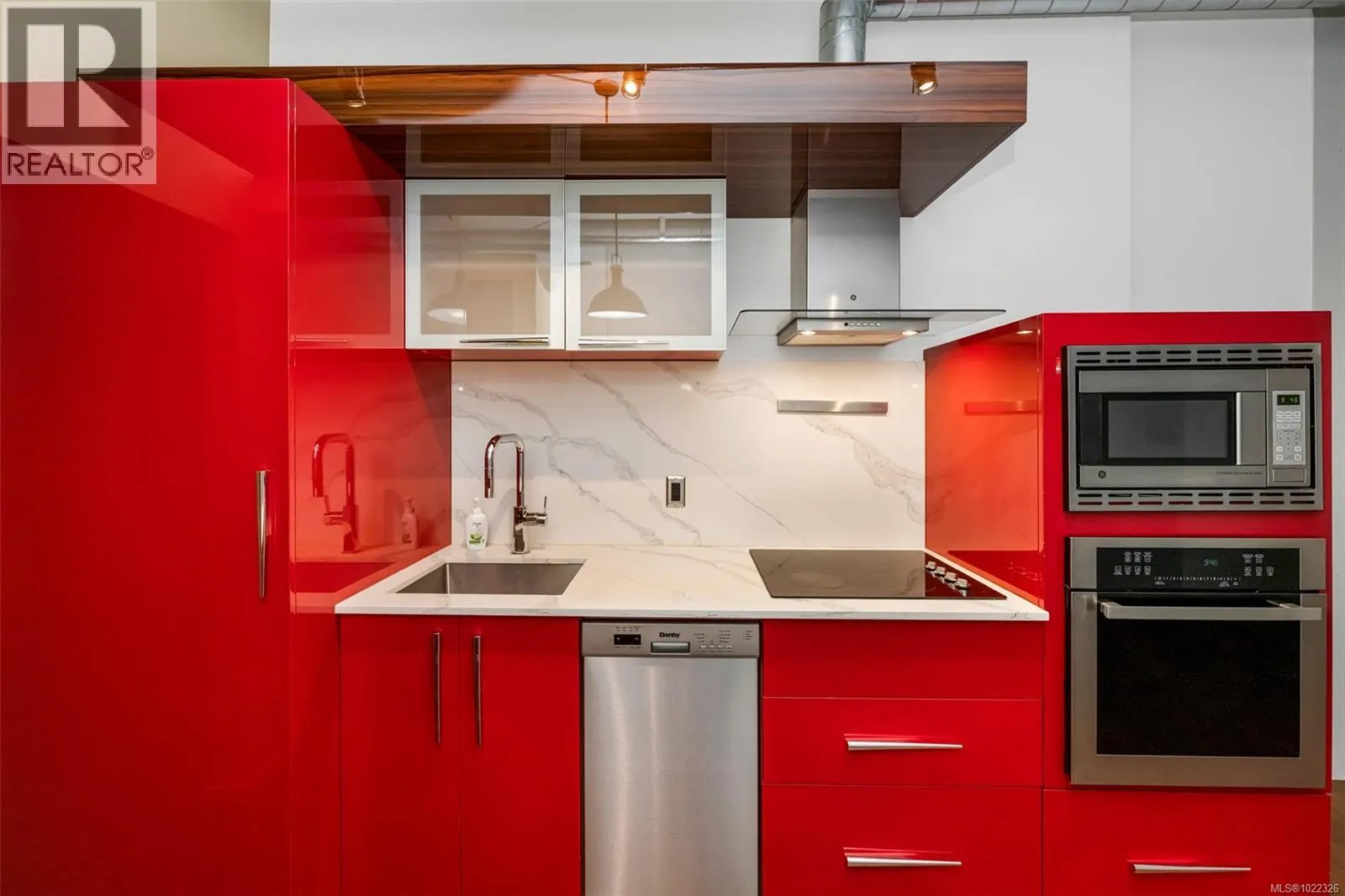 OPEN HOUSE JAN 11, 1-3 - LOCATION, LOCATION, LOCATION! You will love the convenient urban lifestyle at the Jukebox. Walk & bike scores of 98 make it easy to get around. Easy bus ride to UVIC with transit score of 90. Stylish like a NY city loft you will enjoy the steel & concrete construction with almost 10' ceilings & exposed ductwork. Well designed eat-in kitchen is modern funky with red cabinetry, stainless appliances & quartz counters. Bathroom offers full sized shower with attractive & easy to maintain quartz surround. Well laid out with good room sizes. Conveniently located just a few steps down the hall from the well equipped gym & peaceful Zen Garden & Patio. Includes one secured underground PARKING STALL & separate storage locker. The superb location can not be over stated as you are steps from some of Victoria's best cafes, restaurants, shopping, concert venues & more! Well maintained owner occupied property. FRESHLY PAINTED, CLEAN AS A WHISTLE & MOVE IN READY! (id:27476)