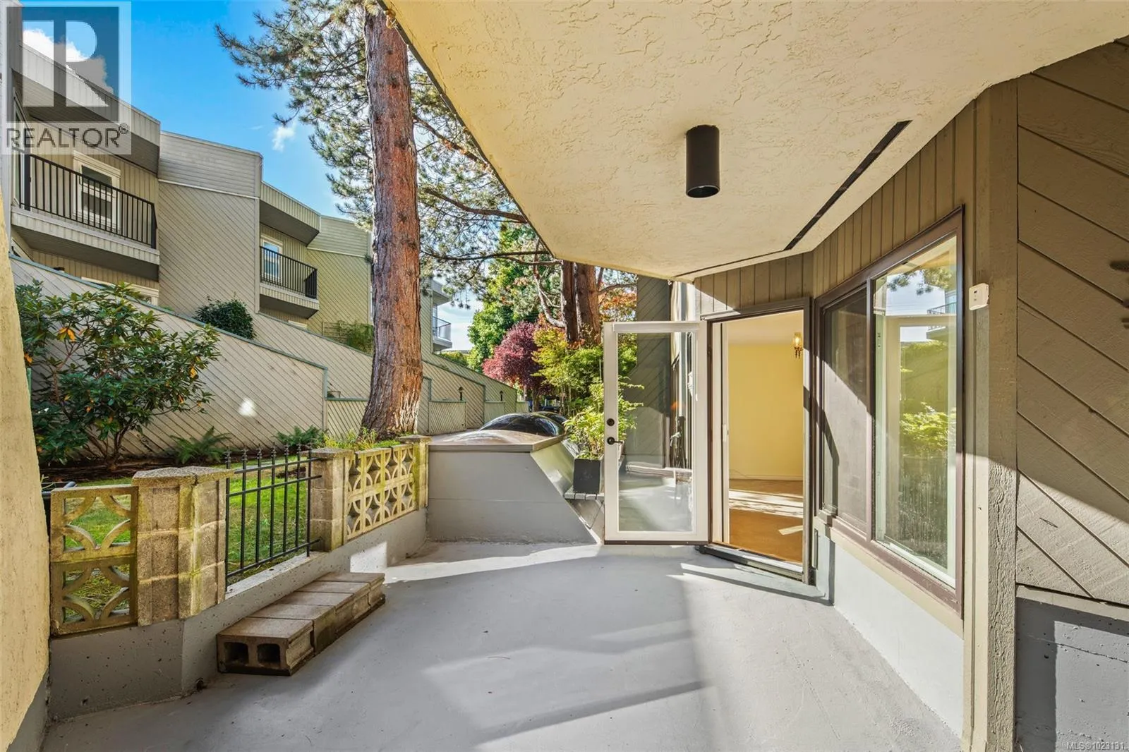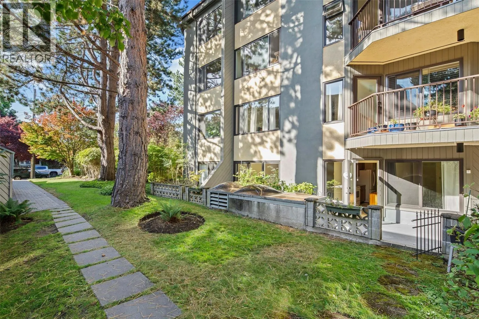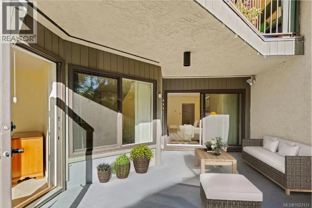 Open House Sun 13/ 11.30 - 1 . Looking to downsize without compromising your lifestyle? Discover this rare 1,309 sq. ft. ground-floor condo, designed for space, privacy, and ease. Enjoy a unique ''house-like'' autonomy with two points of entry: through the formal lobby or your own private gated patio entranceâperfect for quick departures and pet owners. The expansive Primary Suite features a walk-in closet and extra storage, while the large, open-concept living area offers enough room for a home office or media room. You choose the layout that fits your life! This building is exceptionally pet-friendly (up to 10kg), and the private entrance makes daily walks a breeze. Enjoy a well-run strata and great amenities: fitness room, well appointed workshop, car wash station, & EV charging. Unwind on the common rooftop patio, take a scenic stroll to the Inner Harbour, the ocean on Dallas Rd, Cook Street Village or explore the nearby grounds of Government House. Love where you live! (id:27476)