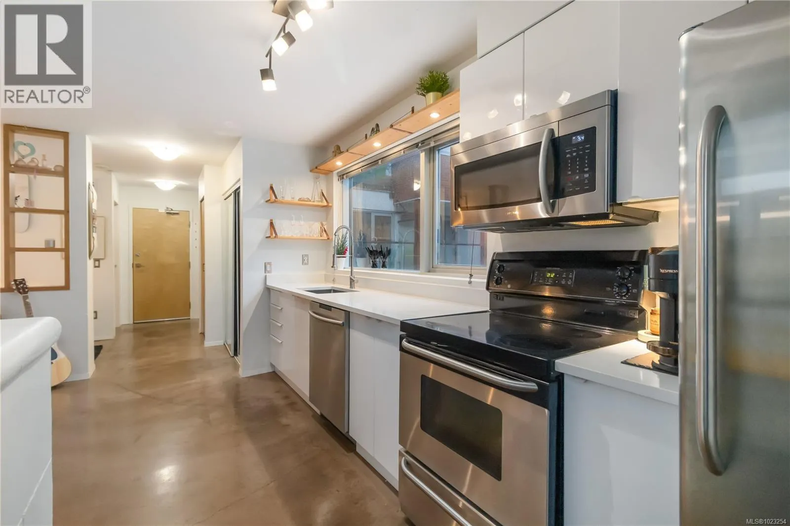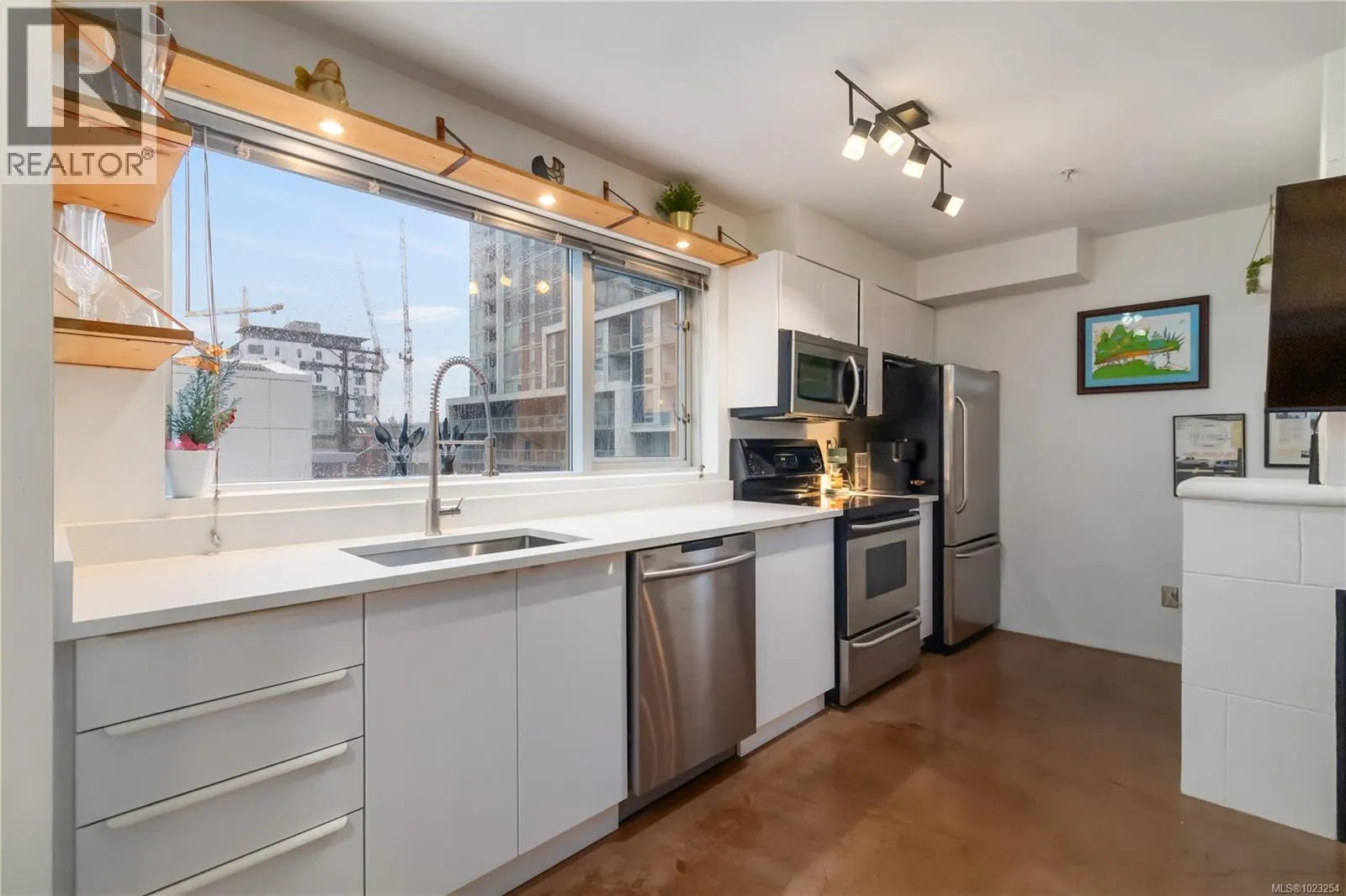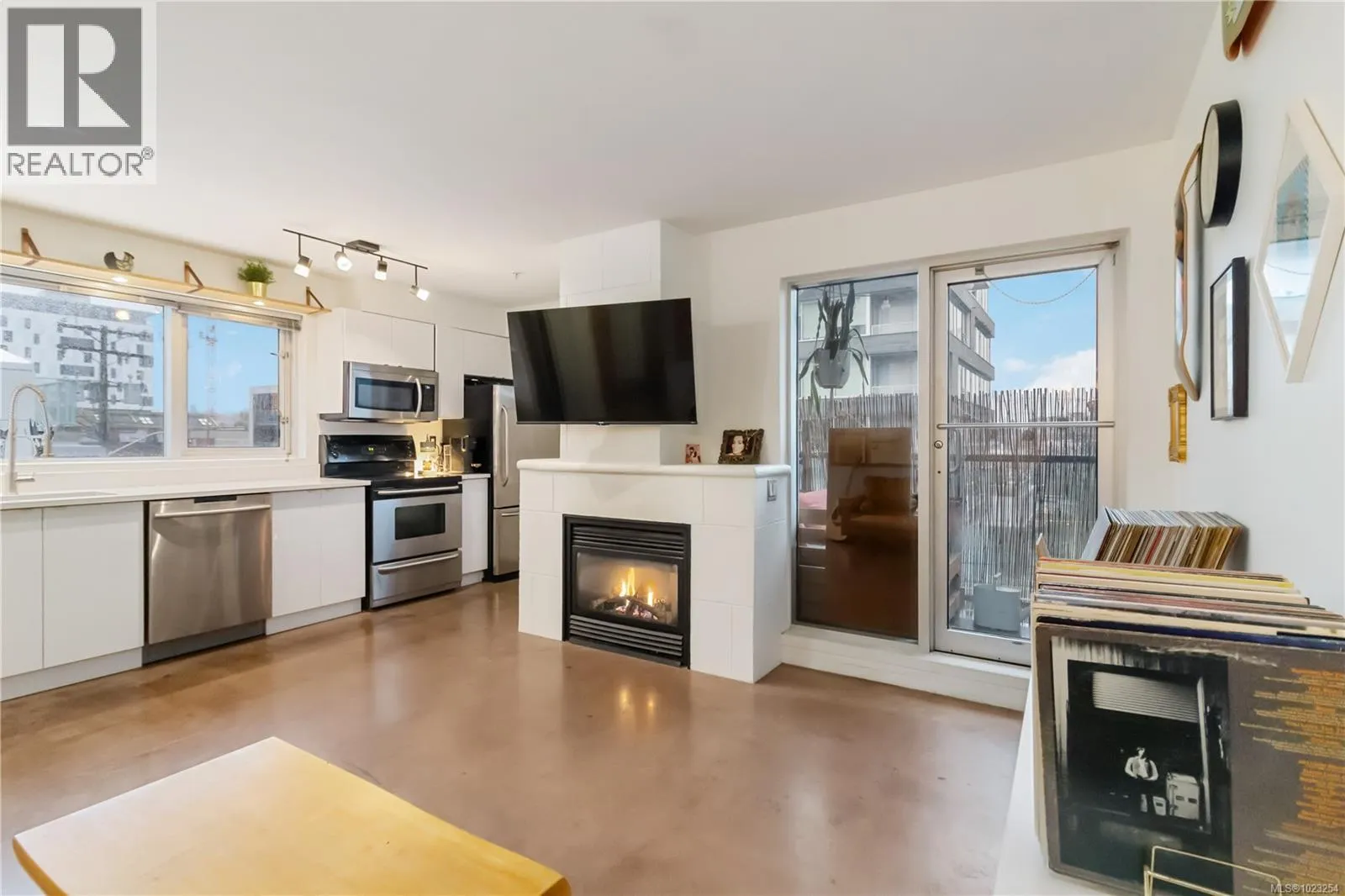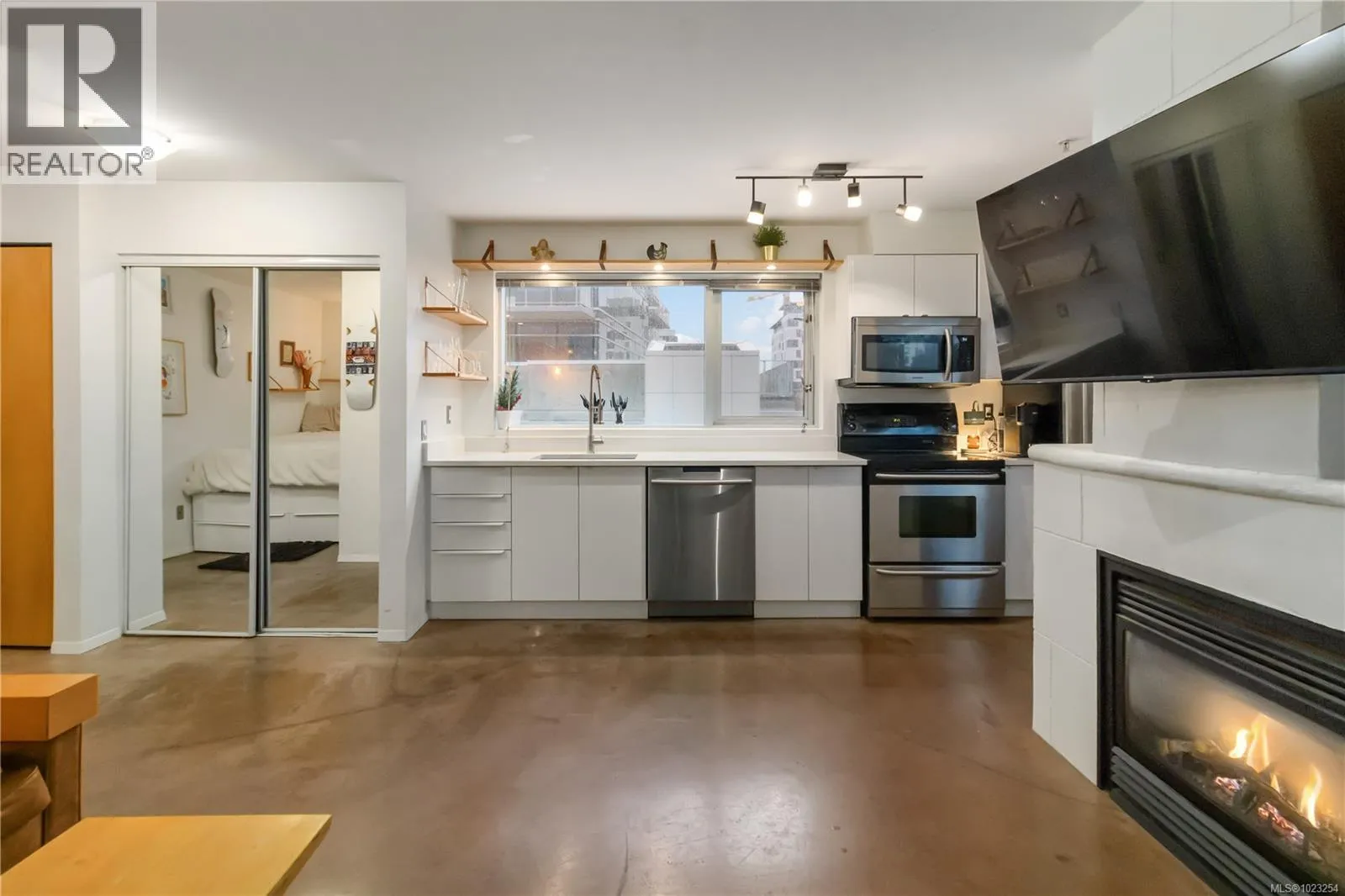 Unbeatable value in the heart of downtown Victoria, and truly one of a kind. This beautifully updated studio at The Urban stands apart with its modern, clean design and exceptional use of space. Quartz counters, stainless steel appliances, and a custom built-in desk with a window directly in front create a functional work-from-home or study space. Windows on two sides of the unit create a bright and open feel. The bathroom has been tastefully updated with a modern vanity and magazine-worthy finishes. In-suite laundry, secure bike storage, private locker, and communal rooftop patio. Cozy gas fireplace included in the strata fee keeps ownership costs low. Zoned live/work, pets welcome with no size restrictions. Home to Loft & Ladder Cafe, and steps to restaurants, groceries, gyms, and the Victoria Conservatory of Music. A perfect first home or stylish pied-a-terre, move-in ready and even better in person! (id:27476)