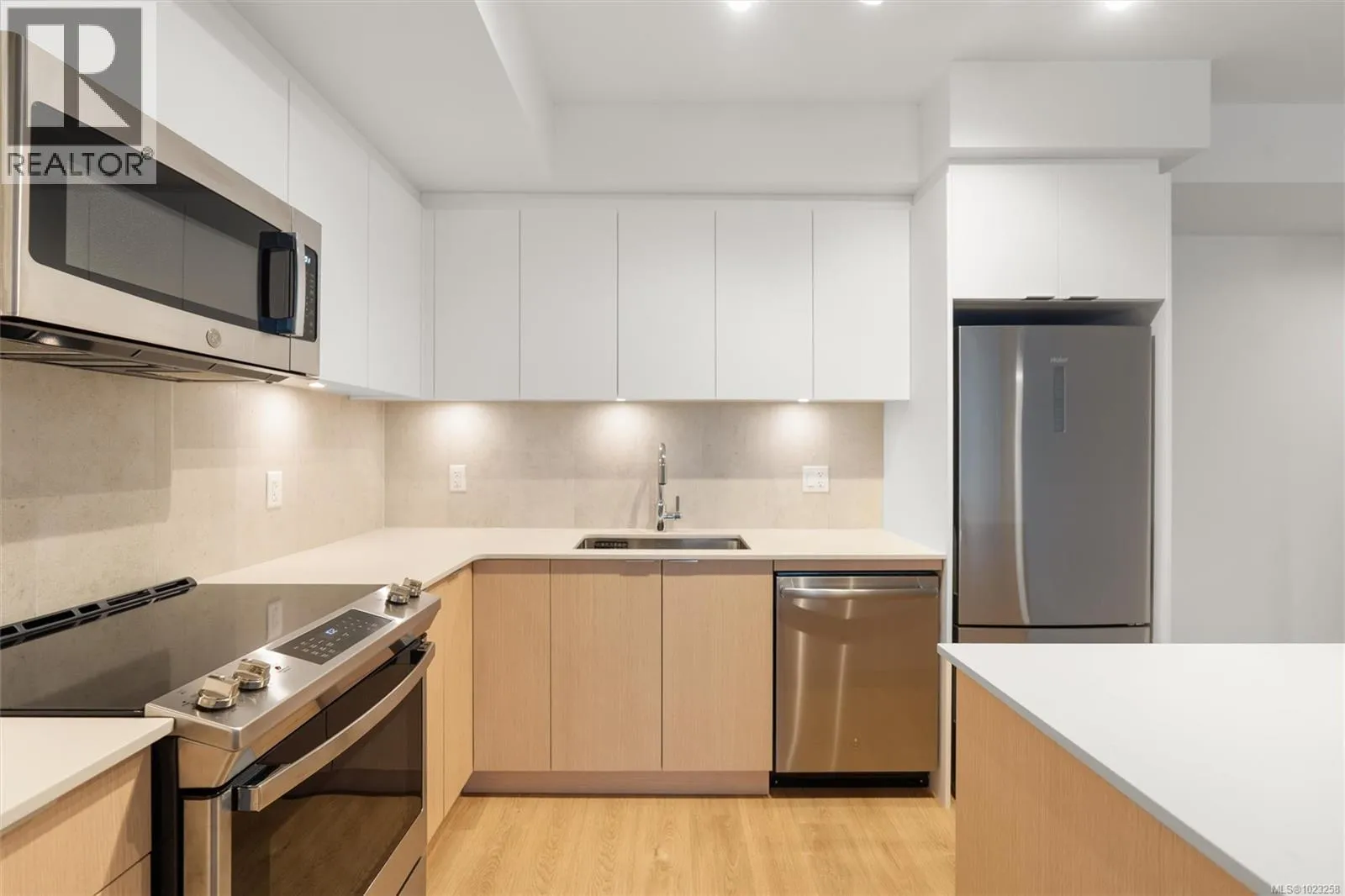 Welcome to Haven by award-winning Chard Developments. This 2 bedroom, 2 bathroom home offers one of the larger floor plans in the building and is located on the quiet side of the complex, creating a calm and private setting. Enjoy bright, open-concept living and dining. The contemporary kitchen features stainless steel appliances and a porcelain tile backsplash, flowing seamlessly into the main living space, ideal for entertaining or relaxed day-to-day living. Bedrooms are positioned on opposite sides of the suite for added privacy. The second bedroom is perfect for a home office, guests, or flexible use. Additional highlights include in-suite laundry, roller blinds, one secure underground parking (wired for EV charger), and storage locker. Building amenities include guest parking, car share, bike storage, pet wash station, playground, community garden, and a resident lounge. Ideally located between Fernwood Village and Downtown Victoria, close to cafés, shops, parks, and transit. (id:27476)