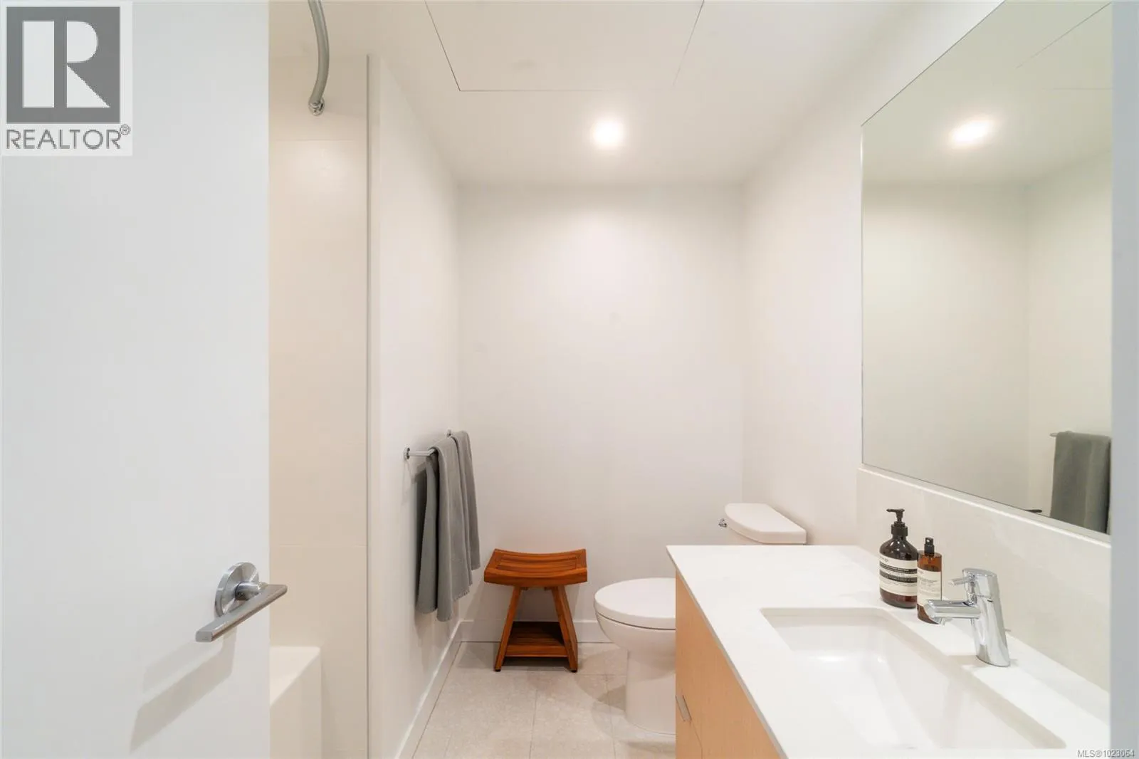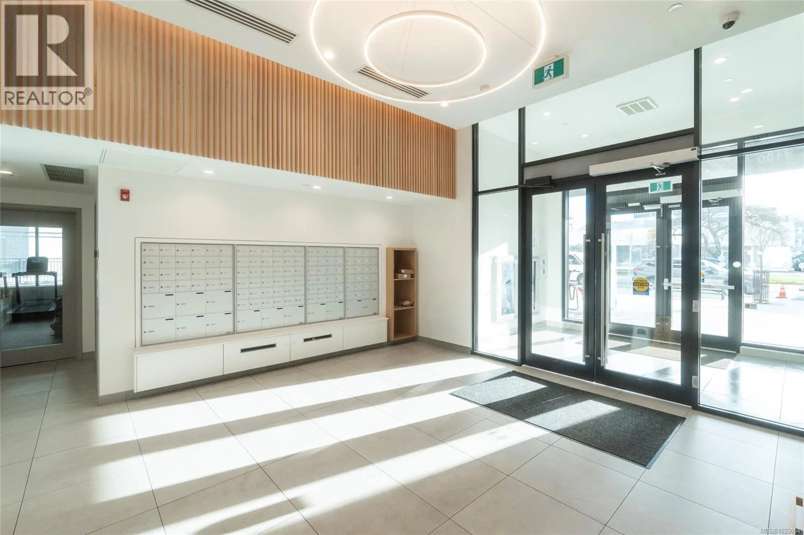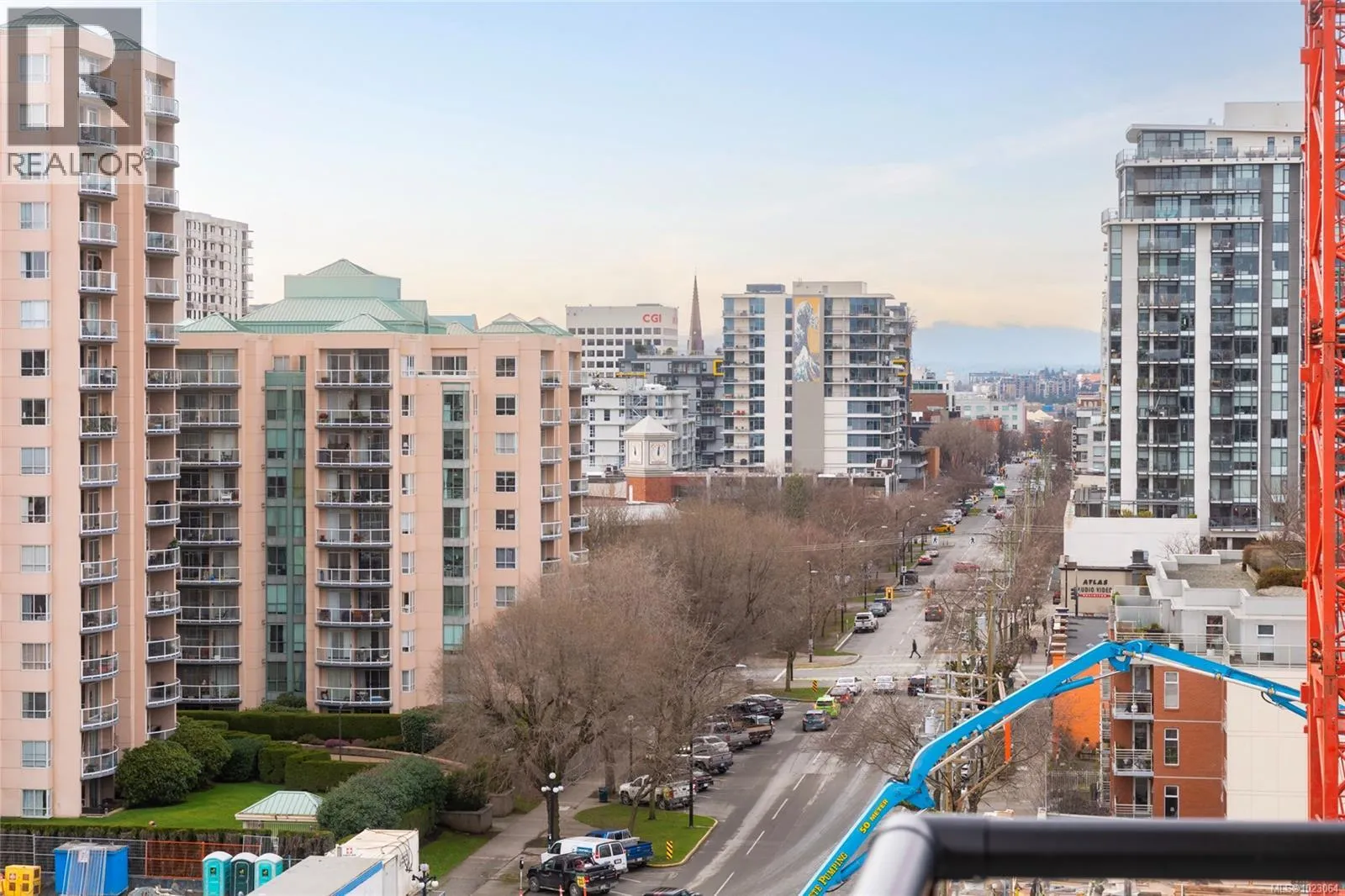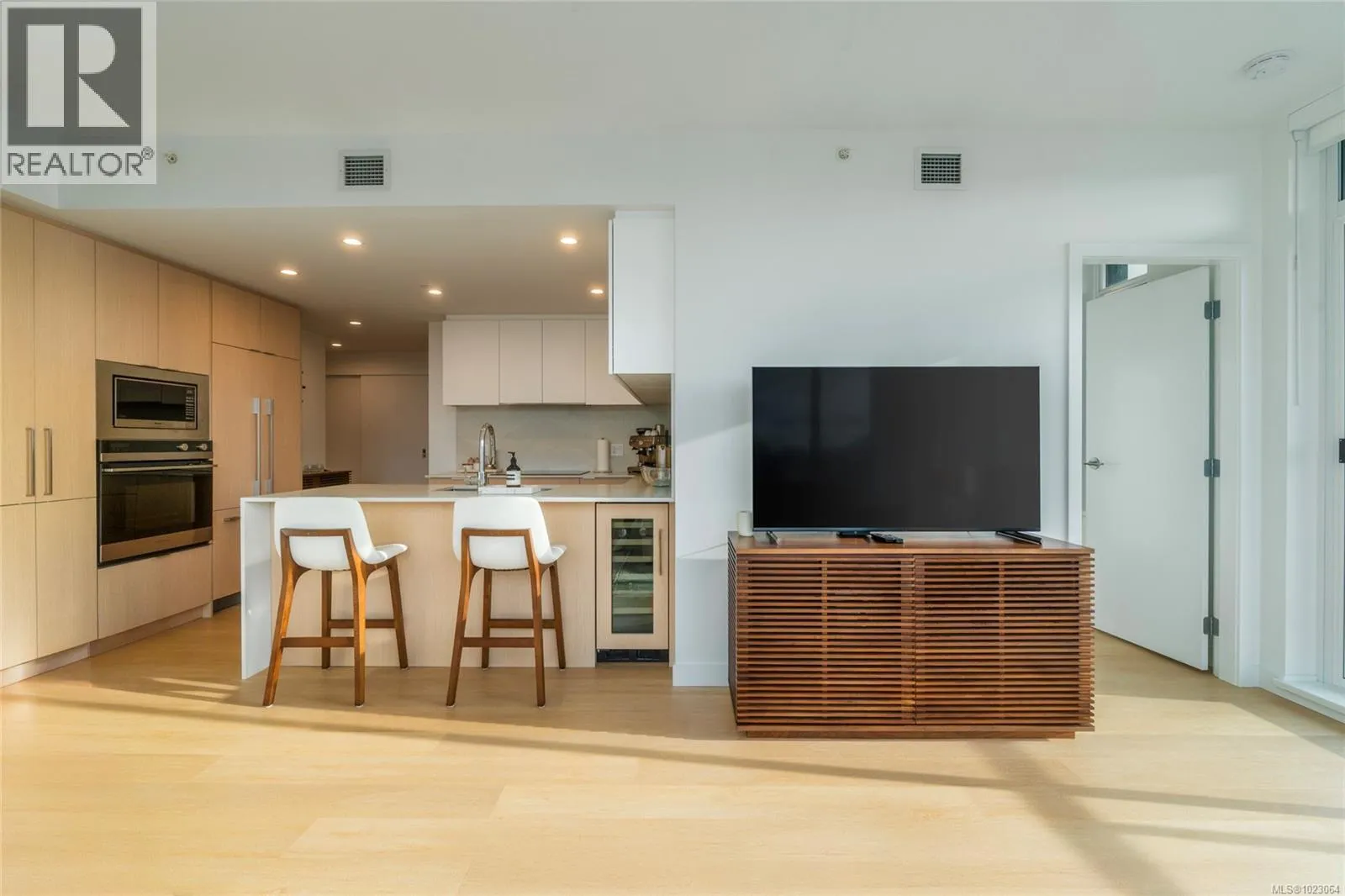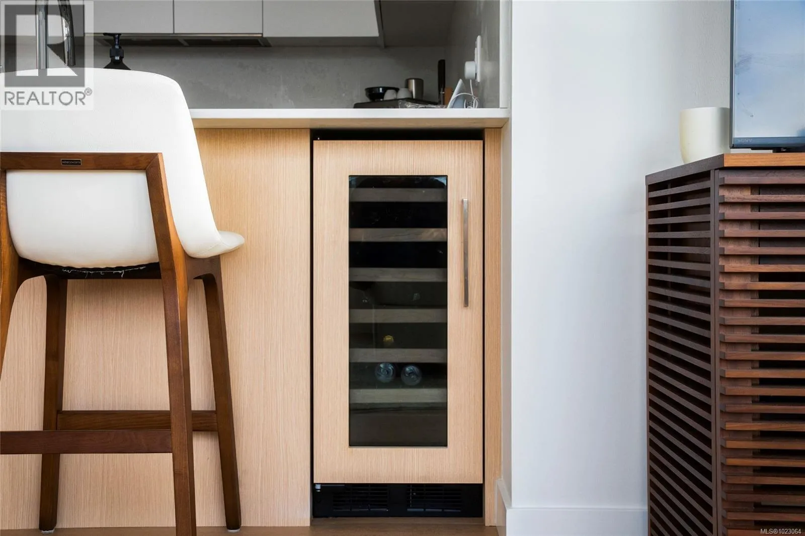Nest by Chard presents the latest condominium offering from one of Victoriaâs most respected developers. Tucked into Fernwoodâs desirable southwest corner and cast in solid concrete, this boutique 12-storey midrise was completed in 2024 and offers refined urban living just a stoneâs throw from Downtownâclose to everything, yet quietly removed from the bustle. This signature southwest corner two-bedroom, two-bath residence is designed for year-round comfort with in-suite air conditioning and a continuous fresh air supply system. Expansive floor-to-ceiling windows bathe the interior in natural light, while the oversized south-facing balcony extends the living space outdoors, offering ocean views and an ideal setting for morning coffee or evening entertaining. The chef-inspired kitchen is both elegant and functional, featuring fully integrated Fisher & Paykel appliances, quartz waterfall countertops, a wine fridge, and a full-height pantry. Bedrooms are thoughtfully separated for privacy, each with generous walk-in closets and custom built-ins. The secondary bedroom is enhanced by a custom-built double Murphy bed with integrated bookshelf, storage cabinetry, and recessed lighting with remote controlâperfect for guests or a sophisticated home office. Spa-like bathrooms showcase heated tile floors, while a striking Bocci 28-series designer light fixture anchors the dining area. Additional custom closets extend through the front hall and laundry space for seamless organization. Included are parking, a large individual storage space, and bike lock-up, with a sought-after parking stall conveniently located near the main elevator and parkade entry. Building amenities include a gym, dog wash station, outdoor play area and MODO car share. Enjoy the ultimate convenience of downtown Victoria living, surrounded by acclaimed dining, boutique shopping, and cultural attractions. (id:27476)