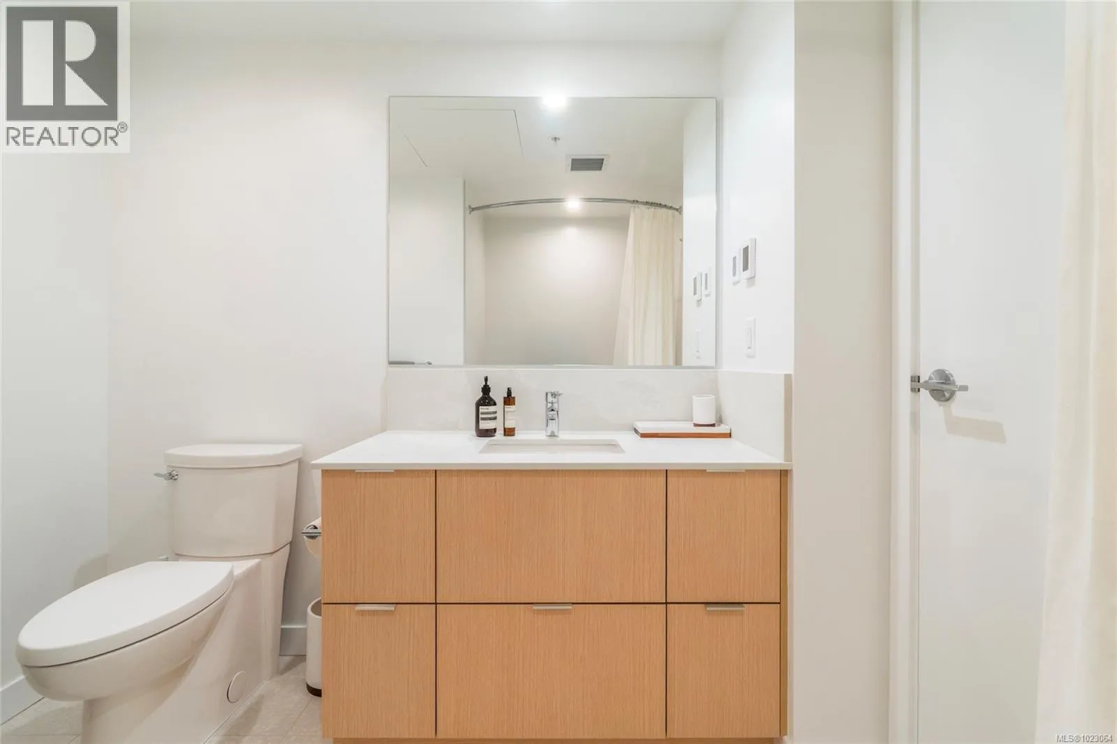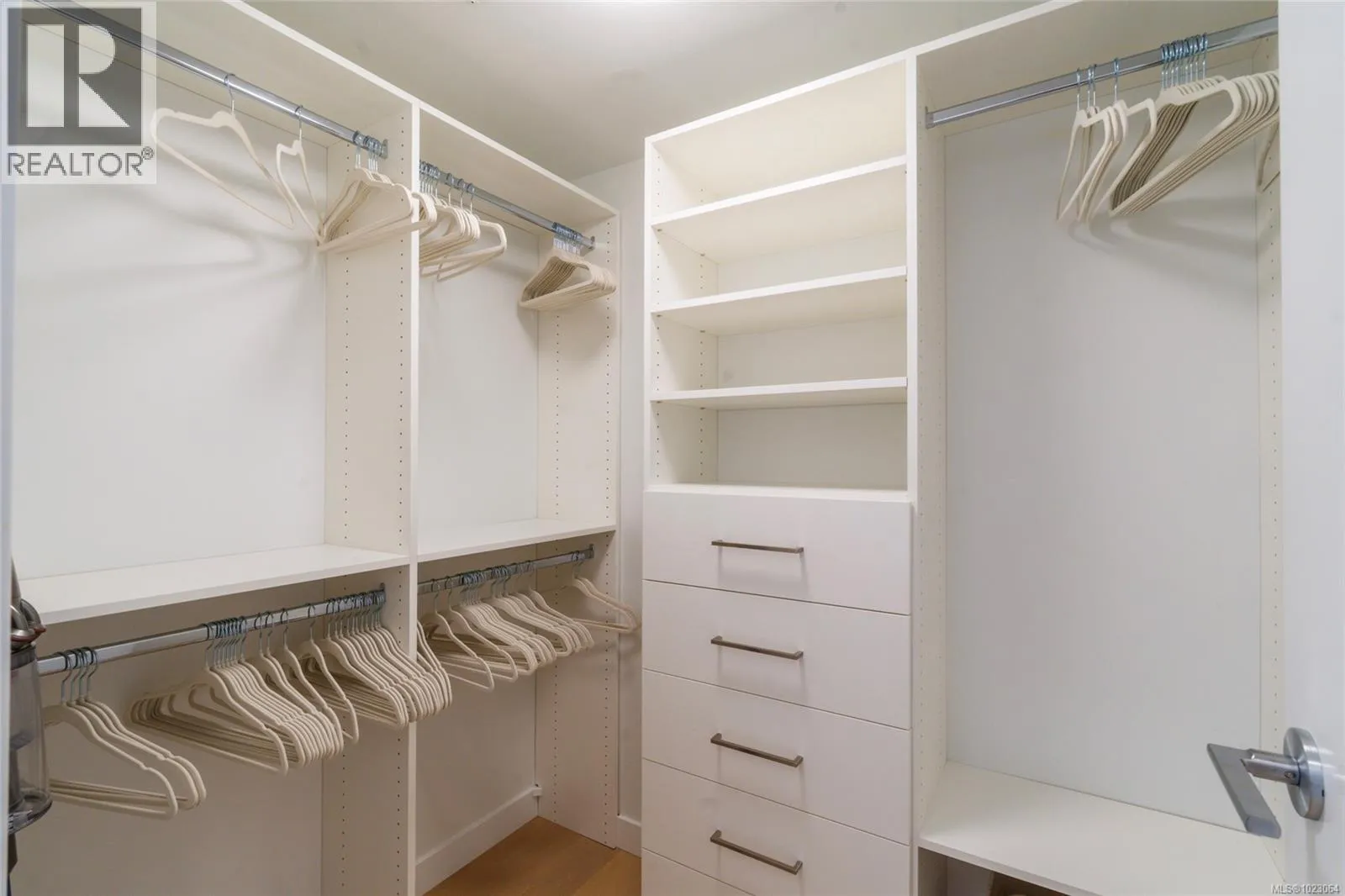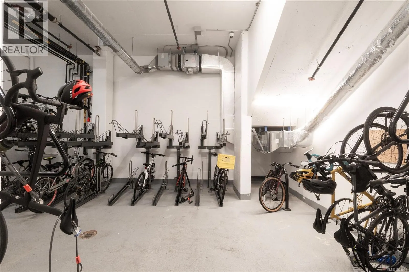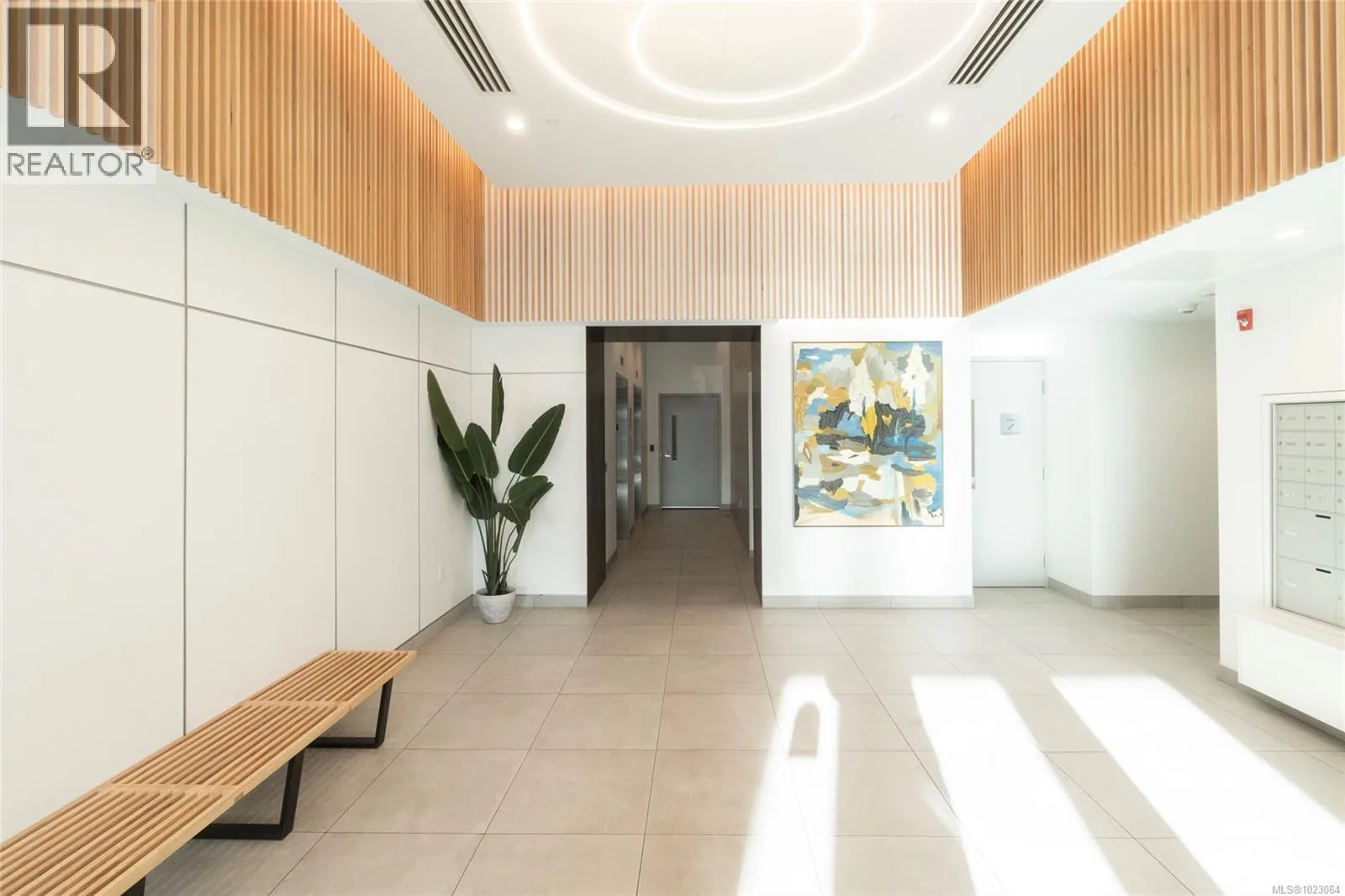 Nest by Chard presents the latest condominium offering from one of Victoriaâs most respected developers. Tucked into Fernwoodâs desirable southwest corner and cast in solid concrete, this boutique 12-storey midrise was completed in 2024 and offers refined urban living just a stoneâs throw from Downtownâclose to everything, yet quietly removed from the bustle. This signature southwest corner two-bedroom, two-bath residence is designed for year-round comfort with in-suite air conditioning and a continuous fresh air supply system. Expansive floor-to-ceiling windows bathe the interior in natural light, while the oversized south-facing balcony extends the living space outdoors, offering ocean views and an ideal setting for morning coffee or evening entertaining. The chef-inspired kitchen is both elegant and functional, featuring fully integrated Fisher & Paykel appliances, quartz waterfall countertops, a wine fridge, and a full-height pantry. Bedrooms are thoughtfully separated for privacy, each with generous walk-in closets and custom built-ins. The secondary bedroom is enhanced by a custom-built double Murphy bed with integrated bookshelf, storage cabinetry, and recessed lighting with remote controlâperfect for guests or a sophisticated home office. Spa-like bathrooms showcase heated tile floors, while a striking Bocci 28-series designer light fixture anchors the dining area. Additional custom closets extend through the front hall and laundry space for seamless organization. Included are parking, a large individual storage space, and bike lock-up, with a sought-after parking stall conveniently located near the main elevator and parkade entry. Building amenities include a gym, dog wash station, outdoor play area and MODO car share. Enjoy the ultimate convenience of downtown Victoria living, surrounded by acclaimed dining, boutique shopping, and cultural attractions. (id:27476)