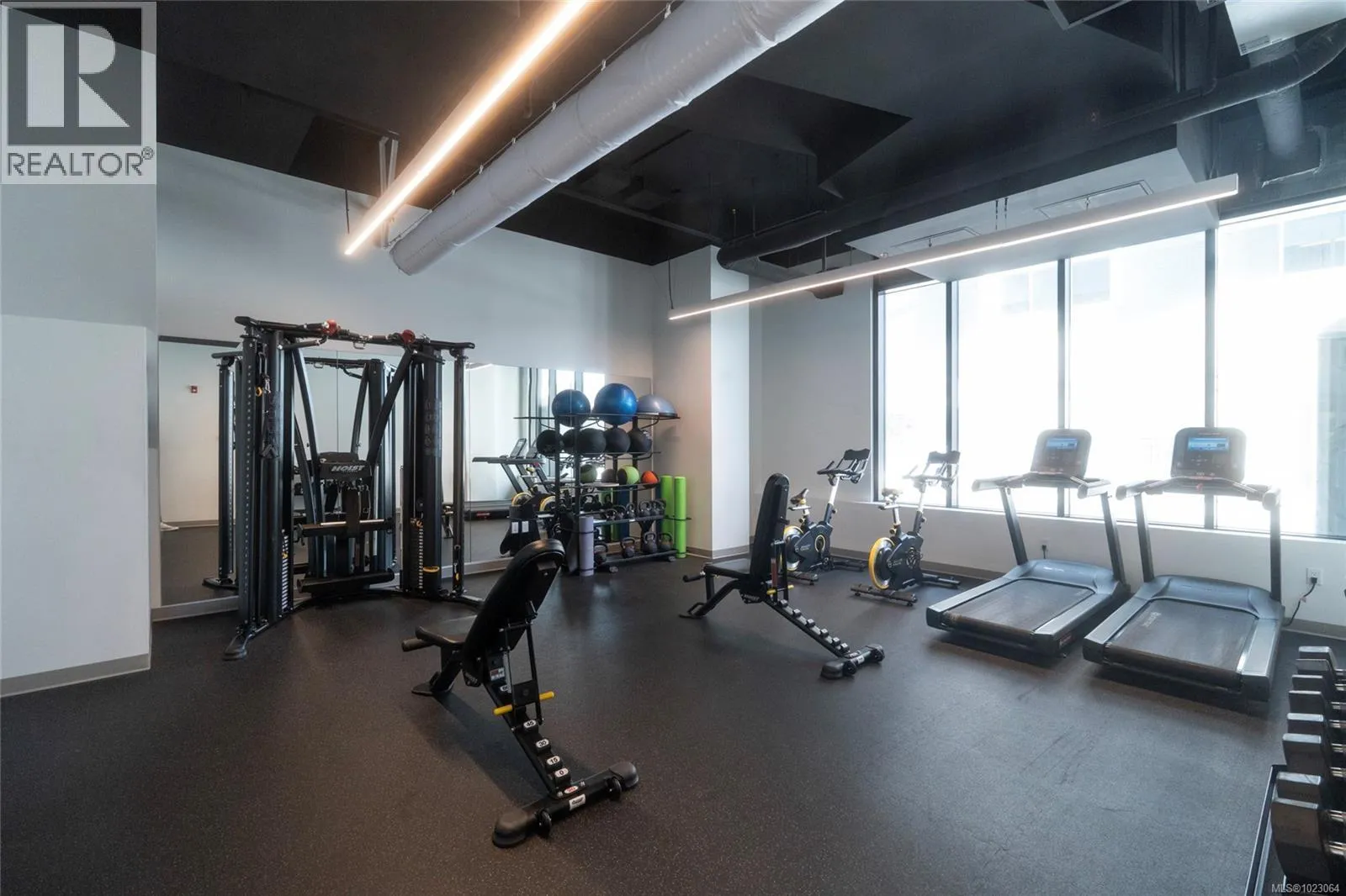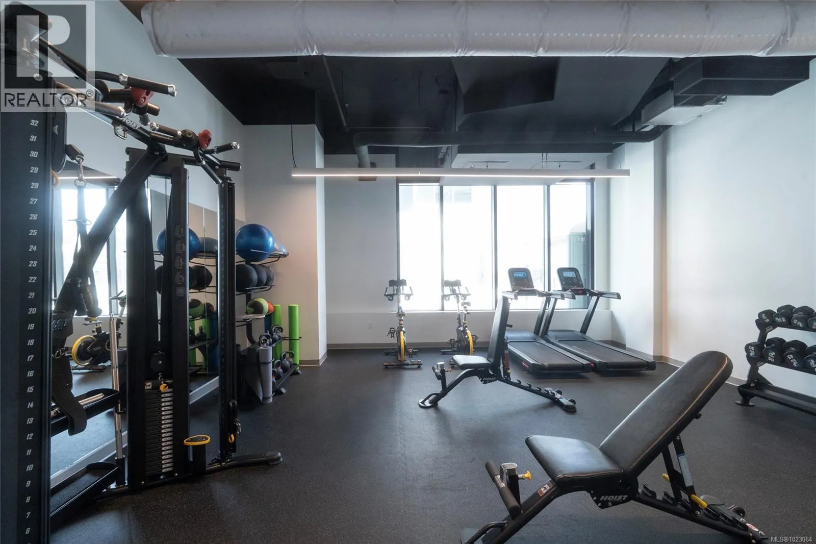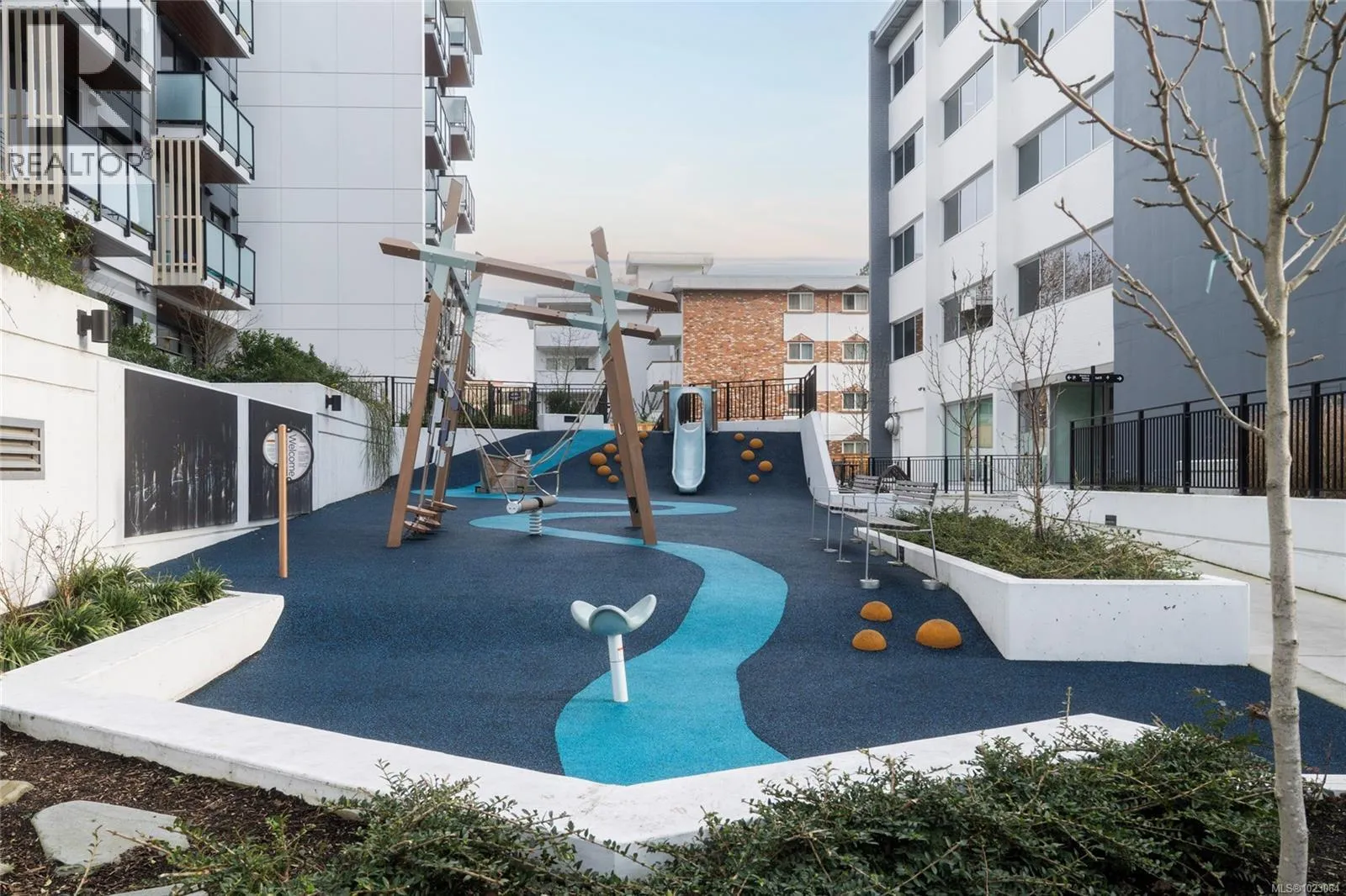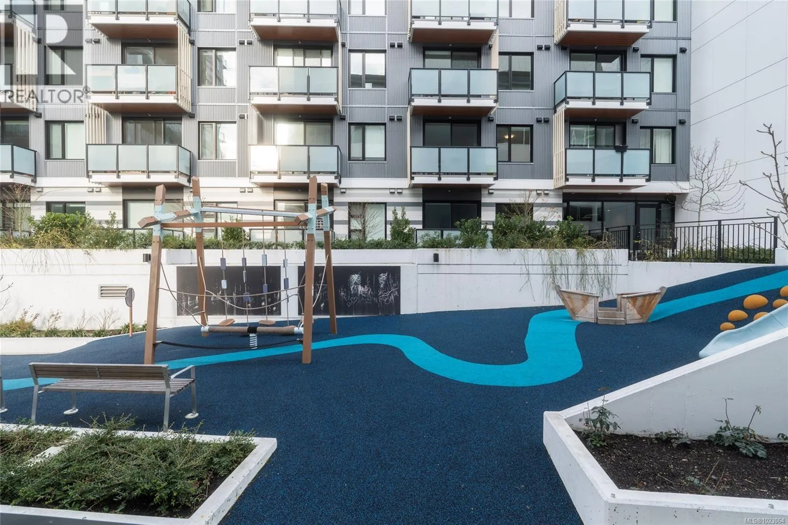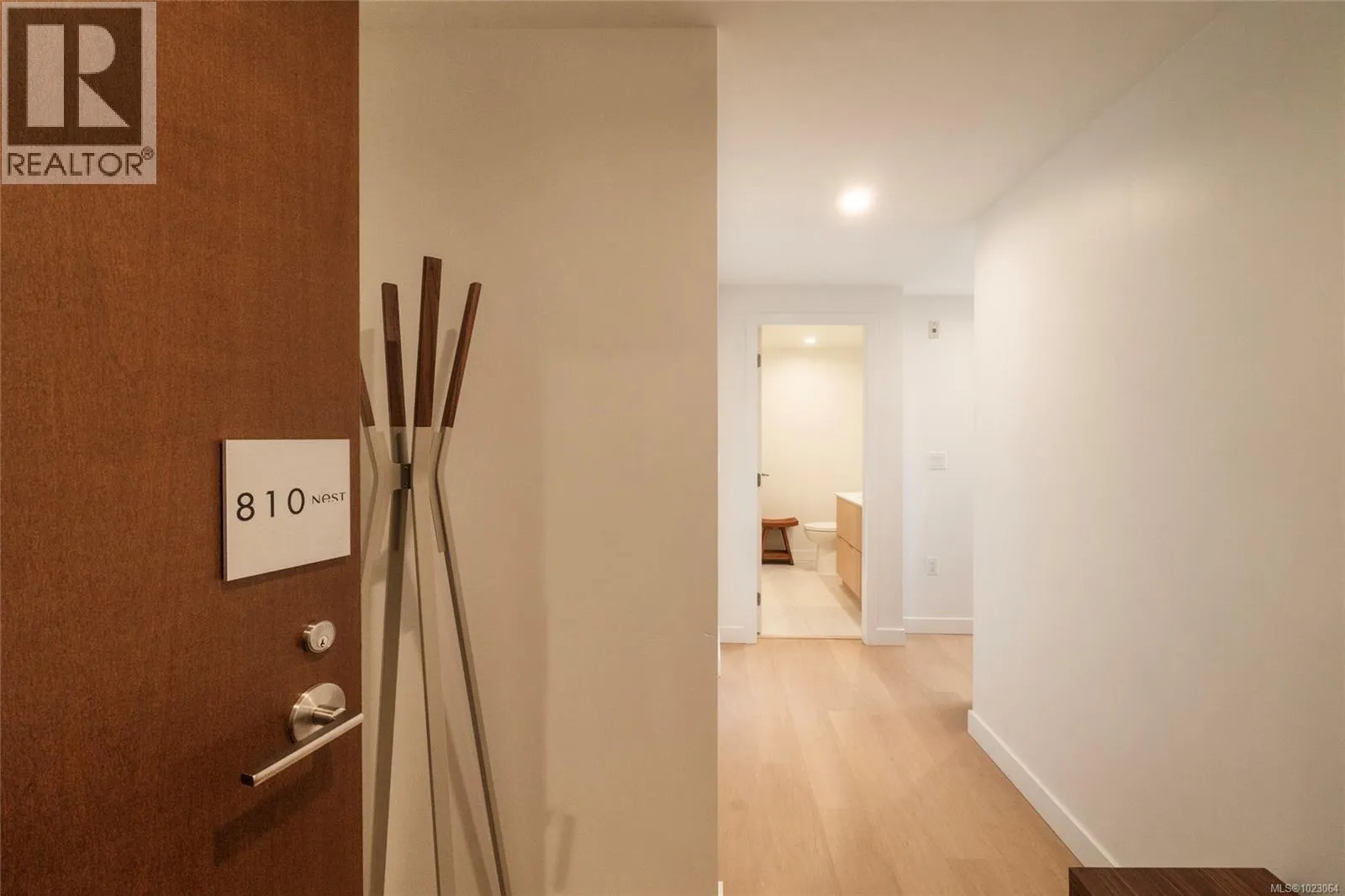 Nest by Chard presents the latest condominium offering from one of Victoriaâs most respected developers. Tucked into Fernwoodâs desirable southwest corner and cast in solid concrete, this boutique 12-storey midrise was completed in 2024 and offers refined urban living just a stoneâs throw from Downtownâclose to everything, yet quietly removed from the bustle. This signature southwest corner two-bedroom, two-bath residence is designed for year-round comfort with in-suite air conditioning and a continuous fresh air supply system. Expansive floor-to-ceiling windows bathe the interior in natural light, while the oversized south-facing balcony extends the living space outdoors, offering ocean views and an ideal setting for morning coffee or evening entertaining. The chef-inspired kitchen is both elegant and functional, featuring fully integrated Fisher & Paykel appliances, quartz waterfall countertops, a wine fridge, and a full-height pantry. Bedrooms are thoughtfully separated for privacy, each with generous walk-in closets and custom built-ins. The secondary bedroom is enhanced by a custom-built double Murphy bed with integrated bookshelf, storage cabinetry, and recessed lighting with remote controlâperfect for guests or a sophisticated home office. Spa-like bathrooms showcase heated tile floors, while a striking Bocci 28-series designer light fixture anchors the dining area. Additional custom closets extend through the front hall and laundry space for seamless organization. Included are parking, a large individual storage space, and bike lock-up, with a sought-after parking stall conveniently located near the main elevator and parkade entry. Building amenities include a gym, dog wash station, outdoor play area and MODO car share. Enjoy the ultimate convenience of downtown Victoria living, surrounded by acclaimed dining, boutique shopping, and cultural attractions. (id:27476)