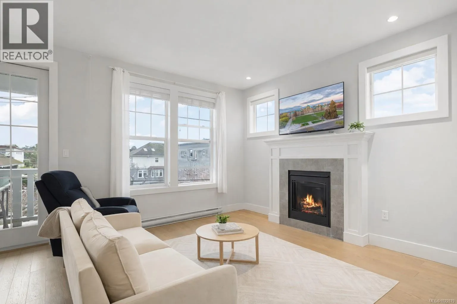 *Open House Sat, Feb 14th 1-3pm* Located in desirable Fairfield, between Dallas Road and Beacon Hill Park, The Shafer on Southgate represents a unique opportunity to acquire a high-end, premium luxury penthouse townhome just steps from Cook St. Village. Built by Dewhurst Developments with design by Zebra Designs, this boutique 3-storey building blends timeless architectural elements with sophisticated modern living. Offering 1,012 sq ft of beautifully finished living space plus a private balcony, this unit delivers an ideal blend of comfort, style, and functionality, with 9â ceilings and a thoughtful layout that creates excellent separation between living areas and bedrooms. The main living space is bright and inviting, anchored by a gas fireplace and enhanced by refined finishes such as hardwood flooring and quartz countertops. The bright kitchen with skylight features new cabinetry and premium Bosch appliances, including a gas range, creating a sleek and elevated cooking space that feels both timeless and contemporary. Attention to detail is evident throughout, with modern, clean interiors by award-winning Sandy Nygaard Design. The spacious primary bedroom includes a walk-in closet and 3-piece ensuite, complemented by a second bedroom ideal for guests, a home office, or flex space. A full main bathroom and in-suite laundry add everyday practicality. One of the standout features of this home is this unitâs top-floor patio, where you can enjoy stunning views and the perfect setting for morning coffee, evening downtime, or entertaining. Additional highlights include secure bike storage, plus a dedicated parking stall and spacious storage locker off Harling Lane for easy access and added security. A rare Fairfield offering in an unbeatable lifestyle locationâsteps to the ocean, parks, and the best of Victoria. (id:27476)
