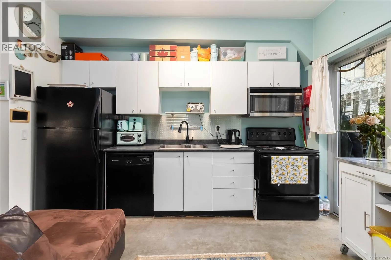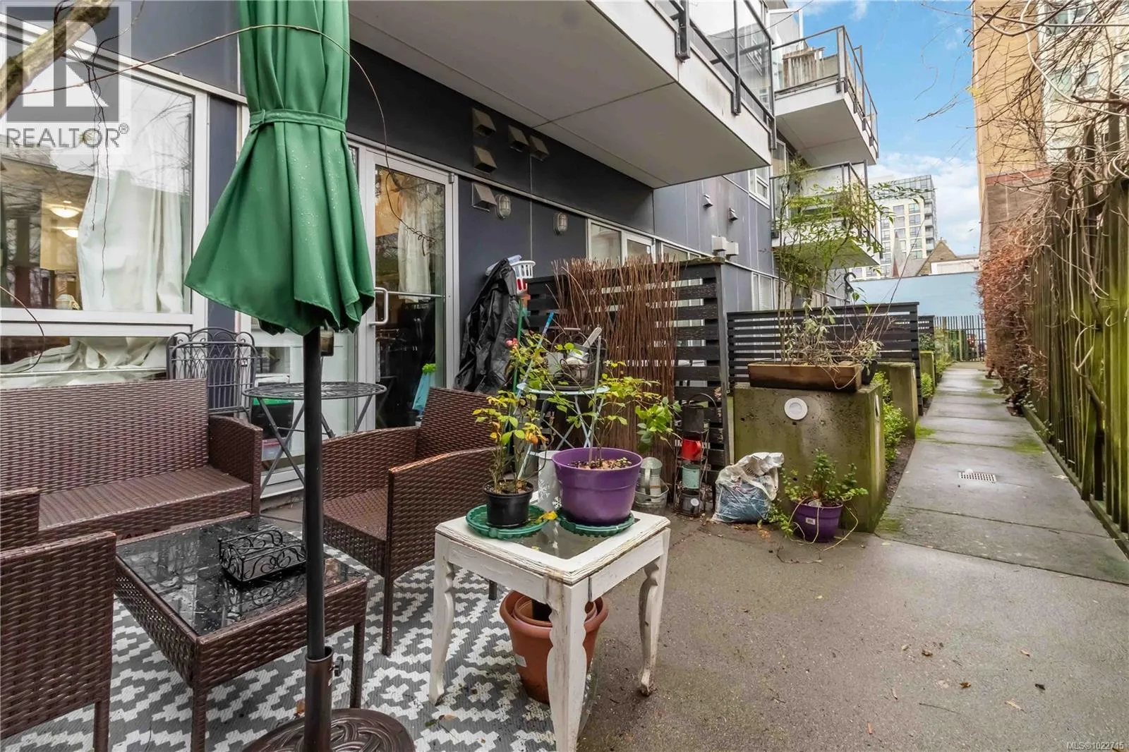 Welcome to your oasis in the heart of downtown Victoria! With it's own exterior access, this pet-friendly (no size restriction) bachelor suite offers open-concept living with a gas fireplace, high ceilings, good storage, in-suite laundry, and common rooftop patio. With no rental restrictions, it's perfect for investors and renters. Enjoy your morning coffee on your private patio or breakfast right next door at the cafe. All amenities are just a short stroll away, including great shopping, dining, and entertainment. Additional features include storage and bicycle parking. Whether your are looking for your first home or seeking a pied-Ã -terre in vibrant Victoria, here is the perfect balance of convenience and comfort. (id:27476)
