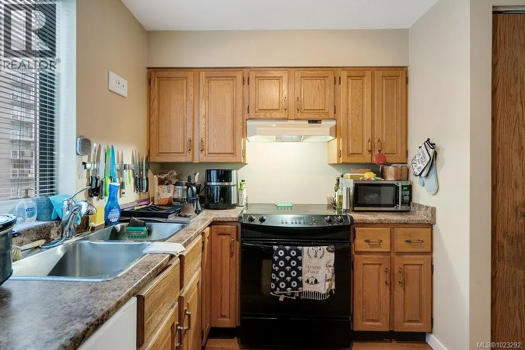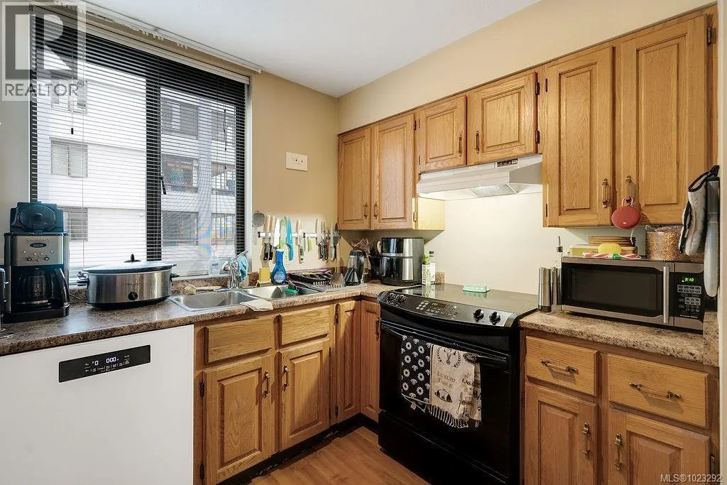 Discover the perfect blend of durability and style in this almost 1000 sq. ft. corner suite. Located in a premier concrete and steel building, this bright 2-bed, 2-bath residence is well maintained, bright and cheery. Enjoy the convenience of in-suite laundry, a generous balcony, and secured underground parking,it is the Ultimate Lifestyle Location. Walk to everything you need! From the boutiques of Cook St. Village and the vibrant energy of downtown Victoria to the scenic Dallas Rd. waterfront and Beacon Hill Park, the best of the city is at your doorstep. A Savvy Investment Positioned in a neighborhood seeing dramatic growth with several new developments nearby, this is a prime opportunity for investors or homeowners alike. The unit is currently occupied by wonderful, long-term tenants. (id:27476)
