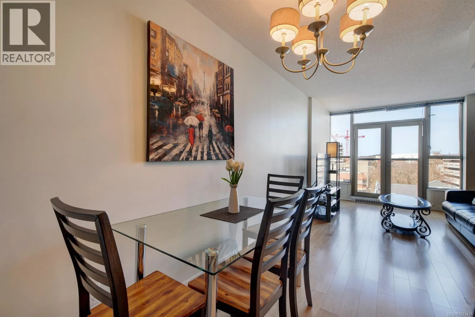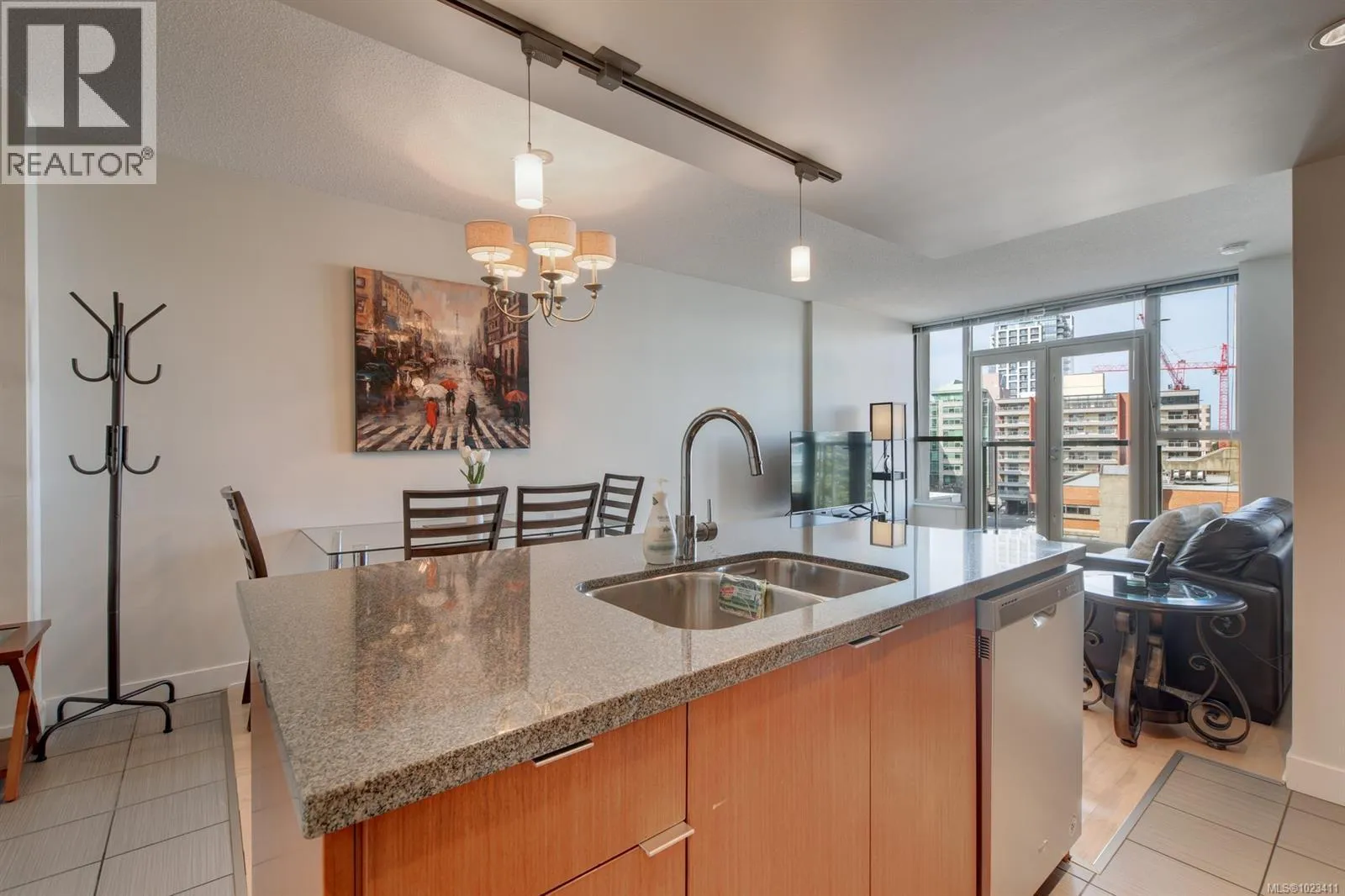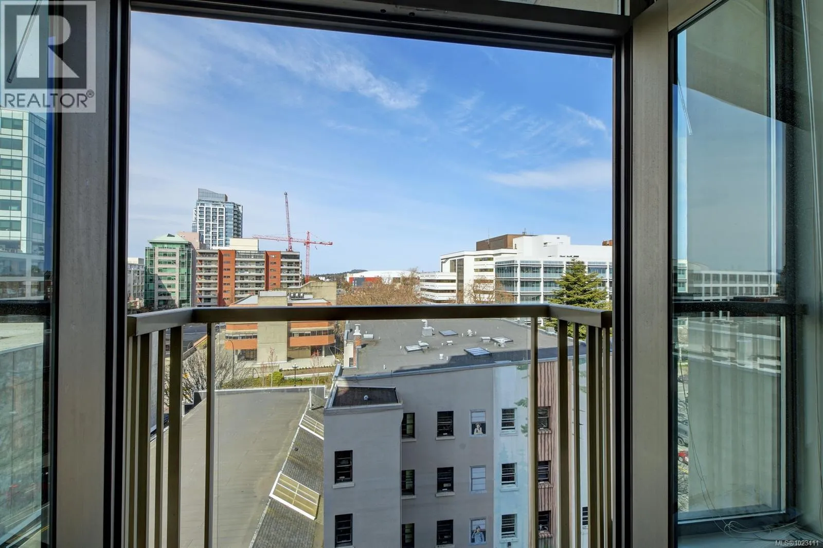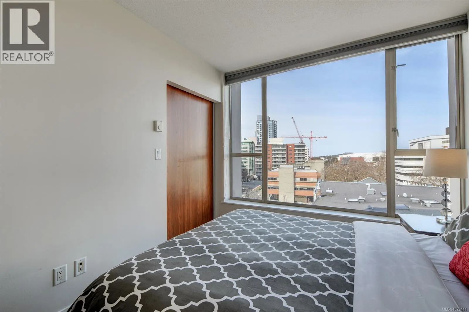 GORGEOUS & INVITING URBAN RETREAT! Ideal for those seeking a stylish haven in the heart of downtown Victoria or an investor. This well maintained condo boasts floor-to-ceiling windows and exquisite hardwood and tile flooring. The kitchen features wood veneer cabinetry, granite countertops, a tiled backsplash, and a granite island. There's a charming Juliet Balcony overlooking Blanchard and Pandora streets, offering captivating city and mountain vistas. The bedroom is adorned with expansive windows, a sliding door to the living area, and an opulent dual-entry ensuite bathroom with a vessel sink and a luxurious soaking tub surrounded by tile, complete with a rain shower. Additional amenities include in-suite laundry, a storage locker, and bicycle storage. Revel in the breathtaking panoramic views of the city, mountains, and ocean from the stunning communal rooftop patio, equipped with BBQs and furnished seating. (id:27476)
